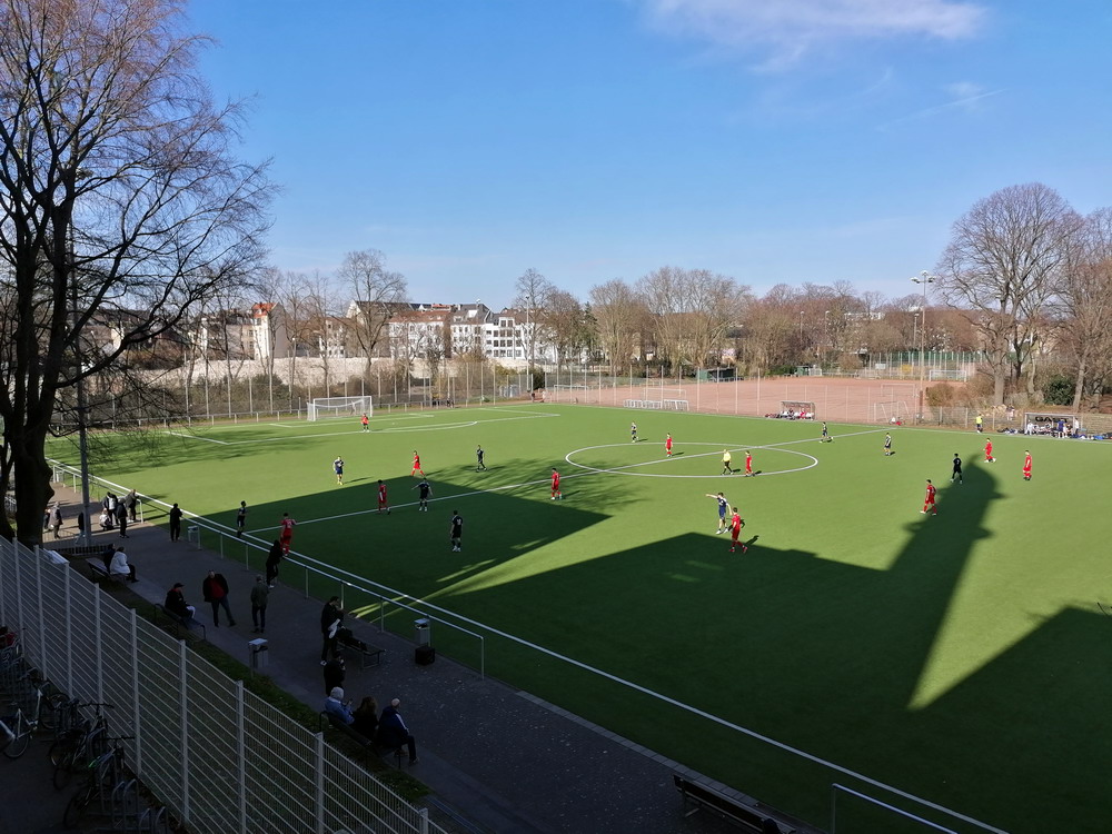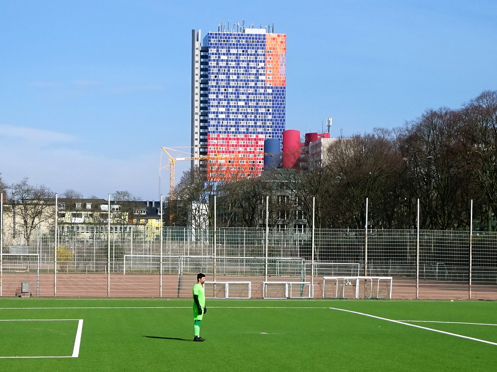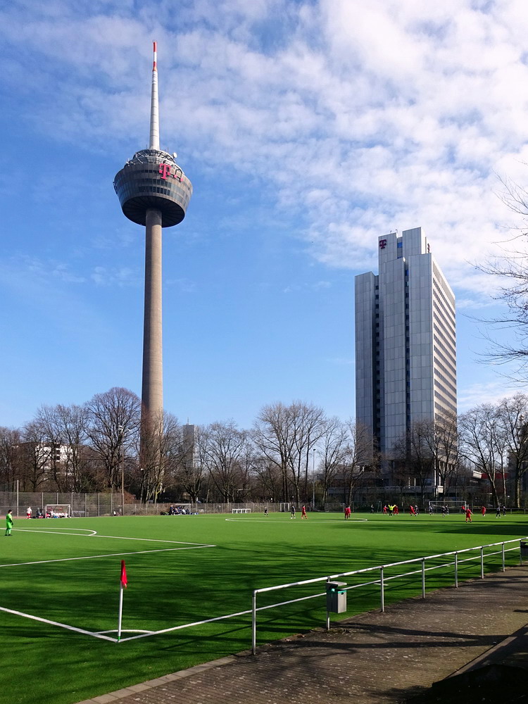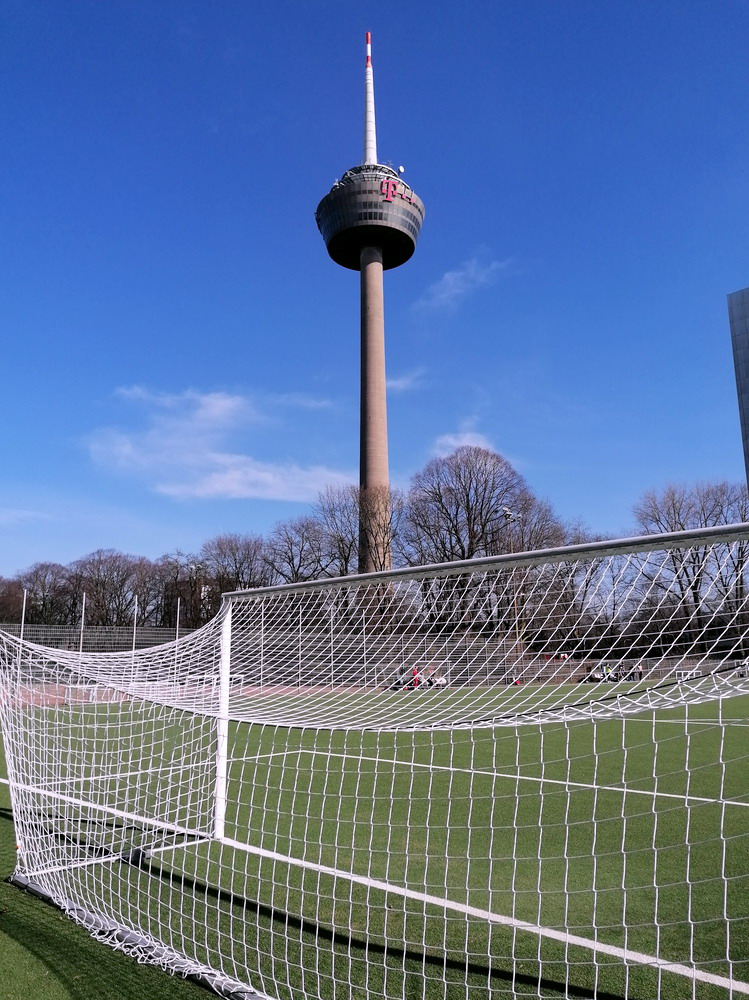 Spiele im unterklassigen Amateurbereich besuche ich nur noch selten und wenn, dann muss es sich entweder um ein besonderes Spiel oder um eine außergewöhnliche Sportanlage handeln, die sich von der Norm abhebt. Allerdings hatte nicht die Platzanlage selbst besondere Merkmale zu vermelden, sondern die unmittelbare Umgebung, denn der Pitch liegt zwischen dem 266 Meter hohen ‚Colonius‘ und der großen Zentralmoschee der DITIB. Neben dem dürftig ausgebauten Kunstrasen bietet die Platzanlage noch zwei verschrumpelte Hartplätze, die offensichtlich länger nicht genutzt wurden. Die gute alte Asche stirbt aus. Die Telekommunikationsler genossen im Schatten des Funkturms absurderweise kein Heimrecht. Die Kölner Eintracht fristet ein wenig fröhliches Dasein am Ende der Tabelle. Warum das so ist, erschloss sich erst auf den zweiten Blick, denn das Spiel war über weite Strecken ausgeglichen und sogar halbwegs gut anzuschauen. Erst der zweite Treffer für die Gäste offenbarte das Problem, denn die Gastgeber ließen die Köpfe hängen, ergaben sich in ihr Schicksal und verloren unnötig hoch. Zumindest gelang in der Schlussphase noch der mehr als verdiente Ehrentreffer. Damit bleibt die Eintracht auf dem einzigen Abstiegsplatz. Ja, richtig gelesen, im Kreis Köln ist in der C-Klasse der Bodensatz noch nicht erreicht, es gibt tatsächlich noch eine Kreisliga D.