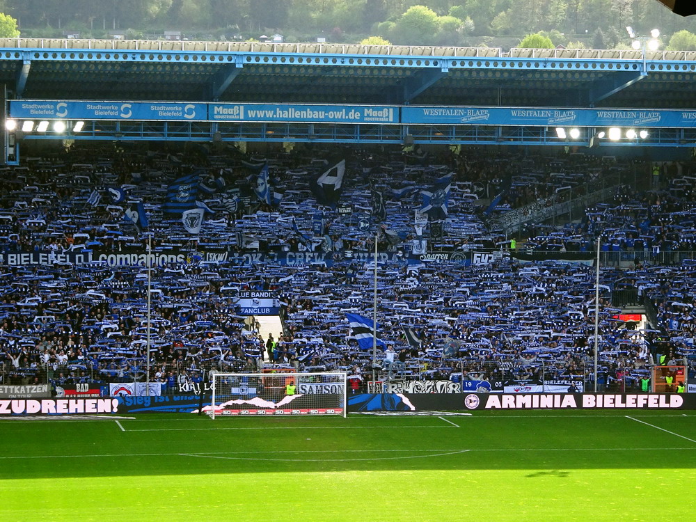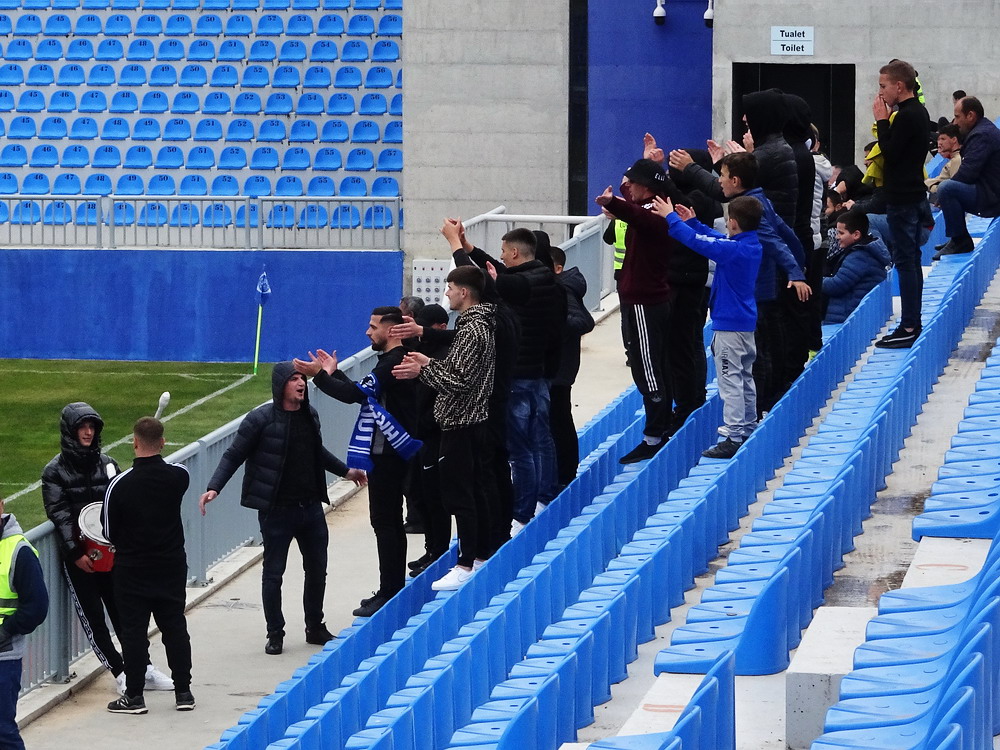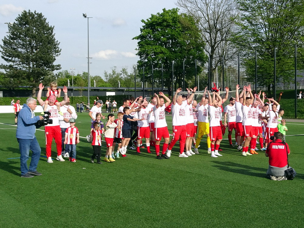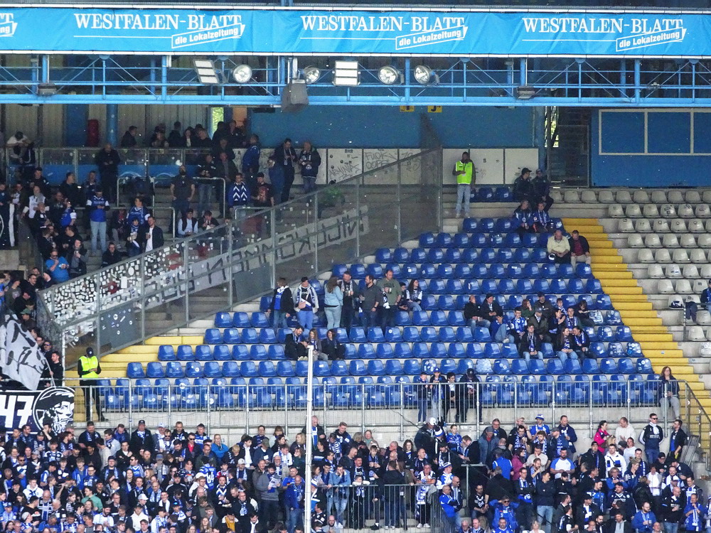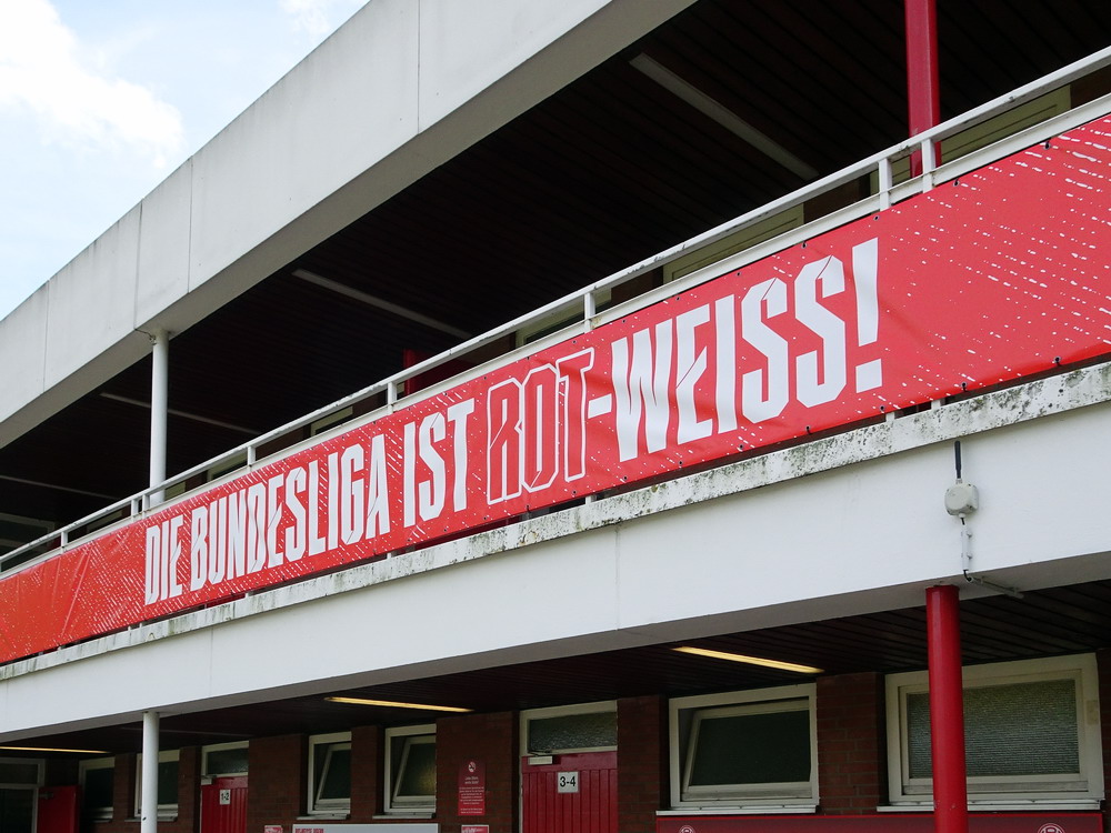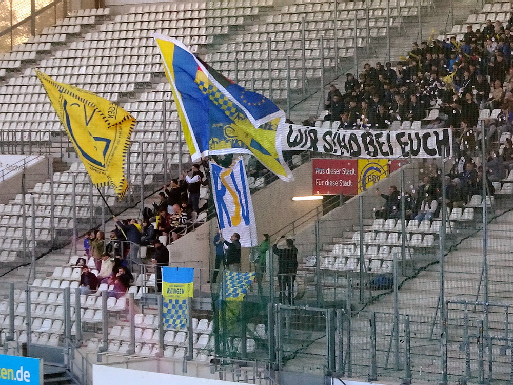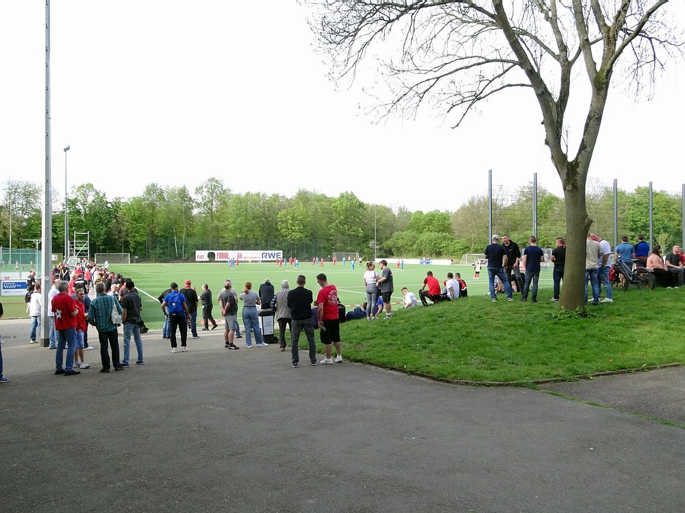 Doch der SVW hatte direkt die Gelegenheit zum Ausgleich, aber Wintereinkauf Terrence Boyd, der den für Golz schwer zu haltenden Ball im Nachschuss über die Linie brachte, stand bei der Schussabgabe seines Kollegen im Abseits, so dass der Treffer nicht zählte. Das ging aber im tosenden Jubel erst einmal unter, was natürlich die Stimmung bei den Umsitzenden anfeuerte. Mein Vordermann beharrte darauf, dass es niemals Abseits gewesen sein könne, weil der Ball ja „vom Tormann kam“…. nun ja, was will man da noch sagen?! Nach dem Seitenwechsel wurde es schnell ein Spiel mit offenem Visier und der Waldhof drückte. Zwar wurden die Roten nicht gerade eingeschnürt und kombinierten sich selber immer wieder clever in Richtung Angriffszone, aber die besseren Möglichkeiten hatten die Gastgeber. Aber irgendein Abwehrbein, der wieder bärenstarke Golz, und Unvermögen der Mannheimer konnten den Ausgleich mehrfach verhindern. In der Schlussminute wurde der Ball dann nach einem schlecht ausgeführten Waldhof-Freistoß am Barackler-Sechzehner gewonnen werden und der nur 17 Sekunden vorher eingewechselte Leo Vonic traf zur Entscheidung. Nahe der Waldhof-Kurve eine Jubeltraube zu bilden, erwies sich als schlechte Idee, denn Voelcke bekam irgendeinen Gegenstand vor die Runkel und ging zu Boden, konnte aber nach kurzer Behandlung weiter machen. Mit dem Auswärtssieg besteht weiter die Option nochmal in den Kampf um Platz drei einzugreifen. Man fühlt, dass der RWE-Anhang mit der Saison zufrieden ist, Mannschaft und Fans bilden eine echte Symbiose. Alles was jetzt noch kommt ist Bonusmaterial, vielleicht ist die Unbefangenheit ein Trumpf, mit dieser kann aber auch mindestens der Mitbewerber aus Münster aufwarten. Coach Dabro bleibt für mich ein Rätsel. Irgendwie scheint der aktuell alles richtig zu machen, dabei gibt es in Sachen personeller Aufstellung und Auswechselungen immer noch Luft nach oben. Taktik und im Laufe eines Spiels erforderliche Systemumstellungen scheinen aber aktuell perfekt gewählt, in diesem Bereich hat er massiv an Erfahrung gewonnen. Ich bleibe weiterhin entspannt gespannt.
