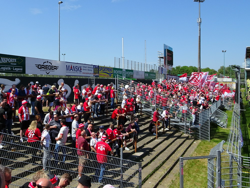 Vermutlich war es leichter, den Sprung in diesem Jahr zu schaffen, als es in den nächsten Jahren der Fall sein kein. Dazu muss auch offen zugegeben werden, dass das Team gemessen am Spielermaterial zeitweise völlig über-performed hat, da machte der Faktor ‚Mannschaft‘ den Unterschied aus. Hinzu kamen abartige sechs Siege, die erst in den Schlussminuten oder der Nachspielzeit erreicht wurden, mit dem unbändigen Willen und Glauben an sich selbst. Es war auch genug Glück dabei und am Ende steht ein vermutlich ziemlich realistischer siebter Platz, der eine wirklichkeitsnahe Einordnung erlaubt. Für meine Dauer-Kritik an Chef-Coach Dabrowksi habe ich aktuell schlechte Argumente und doch gibt es diese, denn Aufstellung, Auswechslungen, sowie Defensiv-Ausrichtung waren für mich nicht immer nachvollziehbar. Auch Dabrowski profitierte von glücklichen Umständen und er wird sich in der Zukunft am heuer Erreichten messen lassen müssen. Meine Zweifel bleiben jedenfalls bestehen. Am Ende überwiegt der Dank an die Mannschaft für eine Saison, die richtig Bock gemacht hat. 29 von 38 Spielen habe ich live im Stadion gesehen, auf sechs Heimspiele und auswärts nur auf die Spiele in Dortmund, Münster und Saarbrücken wurde wegen Urlaub, Fußballreisen oder triftigem Grunde verzichtet. Die Zielsetzung des Vereins für die kommende Saison lautet, die Mannschaft weiterzuentwickeln und besser abzuschneiden als in dieser Saison. Ich bin bei weiterhin engen finanziellen Voraussetzungen skeptisch und vorsichtig und wäre mit einer erneuten sorgenfreien Spielzeit und einem sicheren Mittelfeldplatz hochzufrieden.