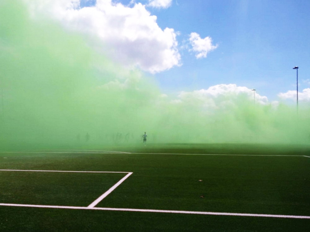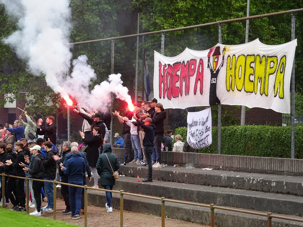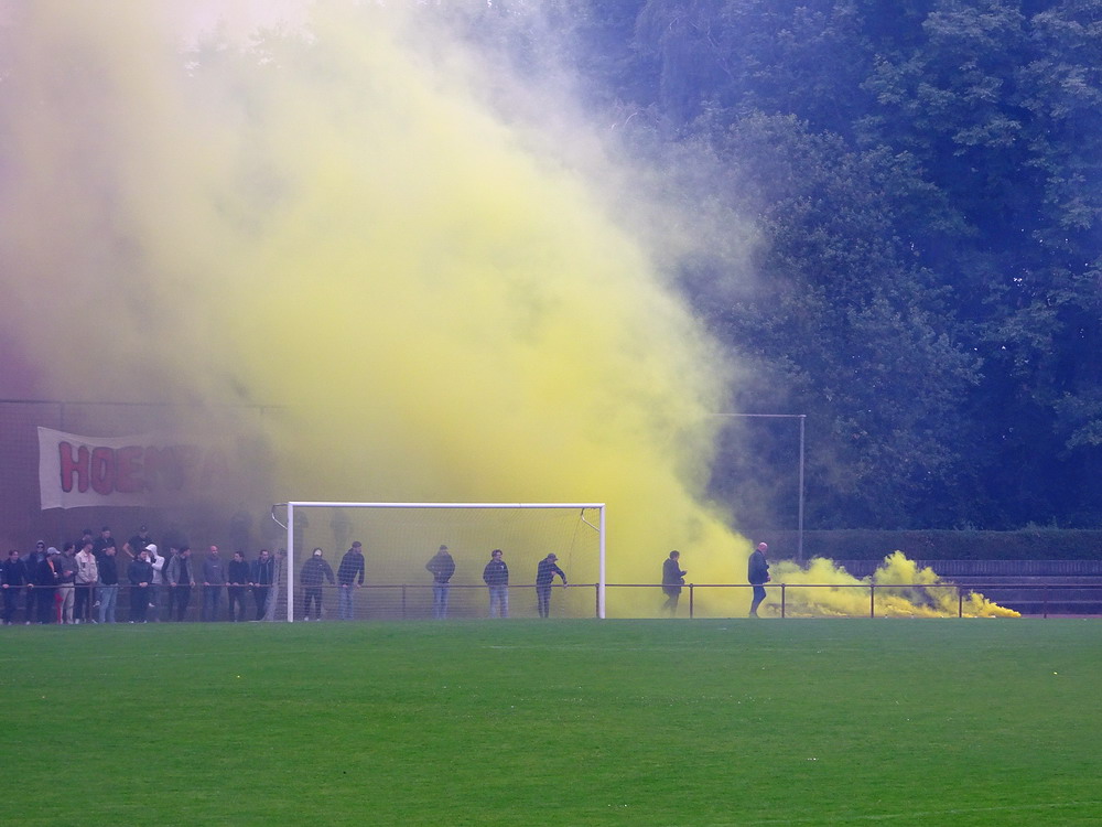 Ein weiteres Relegationsspiel fand im limburgischen Weert, nahe der Grenze zu Belgien, um einen Platz in der Zweiten Klasse auf regionaler Ebene, landesweit siebtklassig, statt. Auf neutralem Terrain duellierten sich die Teams aus dem benachbarten Budel und aus Escharen in der Nähe von Nijmegen. Diese Ansetzung bewies mal wieder, dass man sich nur gedulden muss, wenn man ein ordentliches Spiel auf einer bestimmten Anlage sehen will, denn der ganz nette Sportpark Drakesteyn gehört zu den besseren im niederländischen Amateurfußball. Eigentlich ist es ja auch egal, denn die Sportanlage sieht ja nicht anders aus, als wenn ein graues Liga-Spiel vor 100 Kibitzen über die Bühne geht, aber der Spielbesuch macht ja doch deutlich mehr Spaß, wenn ein bisschen was los ist. Auch heut war Pyro wieder Trumpf und das kleine Stadion wurde von beiden Seiten ordentlich eingenebelt. Die Jungs und Mädels von EGS hatten im Pyro-Duell die Nase vorn, zündeten neben den obligatorischen Rauchtöpfen einige Fackeln und hatten ein Banner gemalt. Die Budel-Jünger jagten dafür neben den Rauschwaden auch noch einige Raketen-Batterien in den dunstigen Himmel. Der Feuerwerks-Nebel hatte sich noch nicht verzogen, da stand es schon 1:0 für Budel, aber nur zwei Minuten später war diese frühe Führung schon wieder egalisiert. Budel ging nach einer halben Stunde erneut in Führung und EGS sollte sich davon nicht mehr erholen. In der Schlussviertelstunde wurde das Ergebnis dann unnötig deutlich.