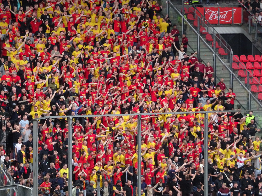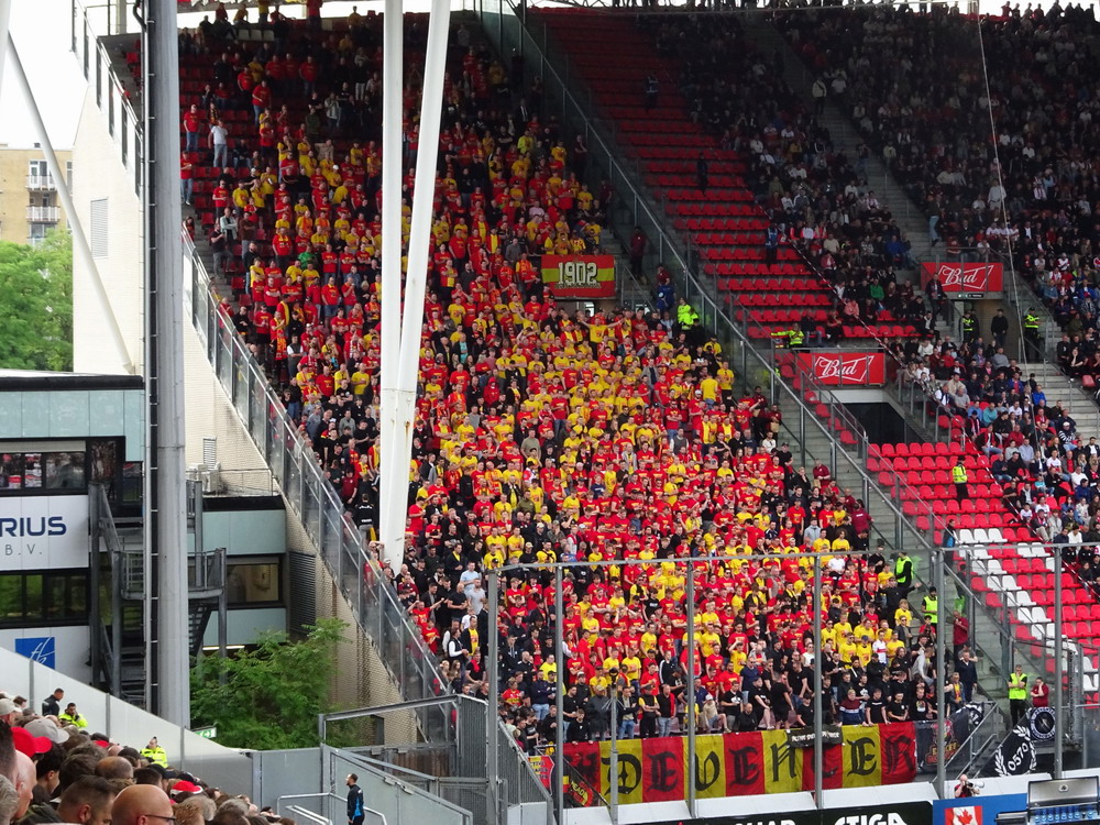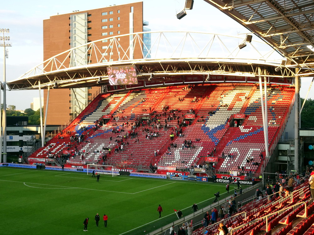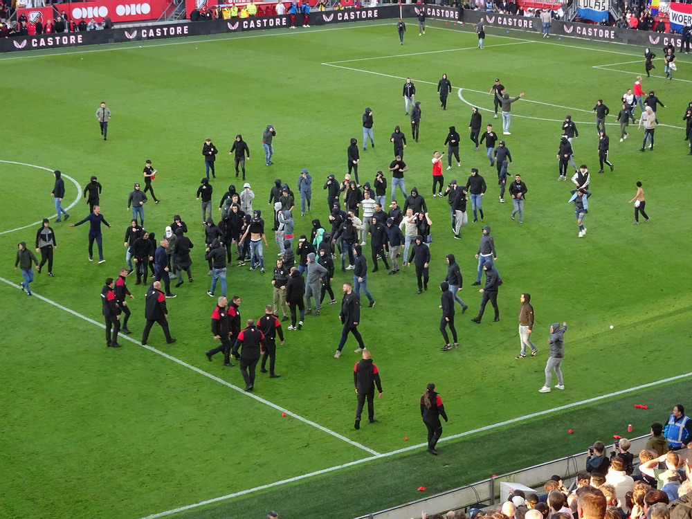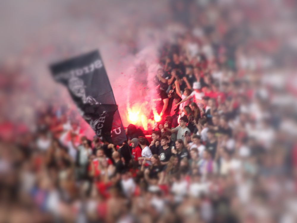 Kurz nach dem Anpfiff wurde die Kurve eingenebelt. Sportlich war es kein Leckerbissen, hatte ich aber auch nicht erwartet. Die Gastgeber waren feldüberlegen und bestimmten die Partie, waren aber unfassbar einfallslos und konnten keine Torgefahr heraufbeschwören. Dem nachgemachten CSKA reichten ein paar schnelle und gut gespielte Konter um das richtige CSKA in Verlegenheit zu bringen. Nach einer halben Stunde war es dann soweit und die Murmel lag zum ersten Mal in den Maschen. Wer nach dem Seitenwechsel eine bissigere, wütendere Vorstellung der Heimmannschaft erwartet hatte, irrte sich. Eigentlich lief der Kick genauso weiter wie in Hälfte eins und mitten in die Bengal-Aktion der CSKA-Kurve fiel Treffer Nummer zwei für den Gastverein. Und weiter änderte sich nichts, ohne jeden Hauch von Torgefahr hatte CSKA die Spielkontrolle. Nicht ganz unerwartete brannten einigen Ultras dann die Sicherungen durch. Plötzlich standen einige Fans mit Fahnenstangen und herausgerissenen Sitzschalen zwischen den Spielern auf dem Feld und nahmen Kurs auf die Ersatzbank. Mannschaften und Schiedsrichter-Team flüchteten in die Kabinen. Es dauerte etwas, bis sich die Lage beruhigt hatte und die Partie zu Ende gespielt werden konnte. Eine endlos lange Nachspielzeit blieb ereignislos und ein Verein, den kein Schwein interessiert spielt nun in der kommenden Saison international.