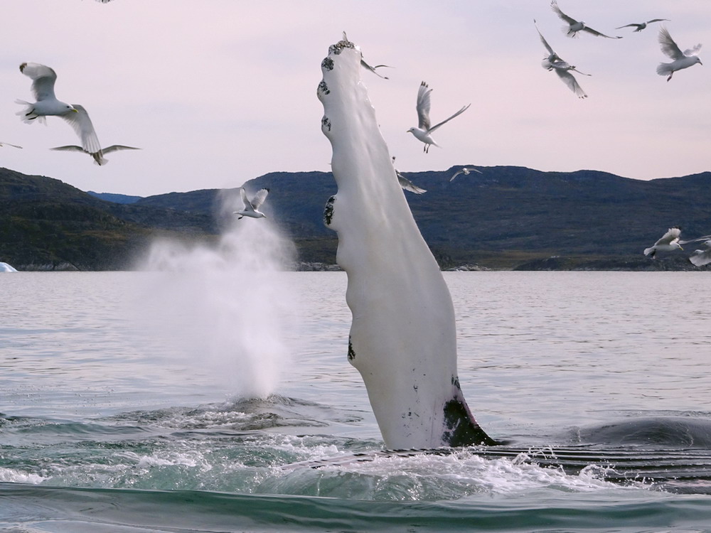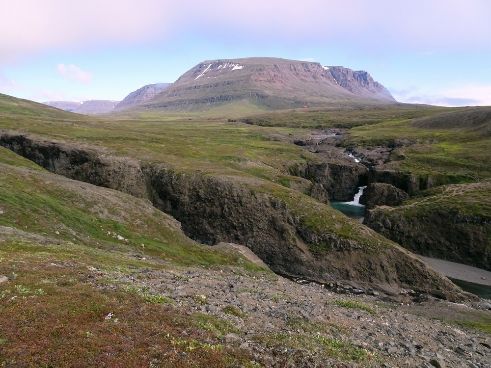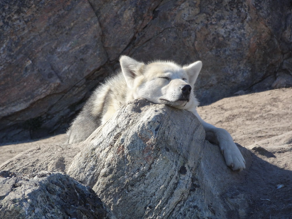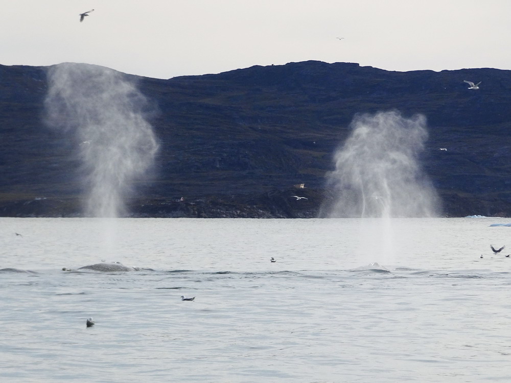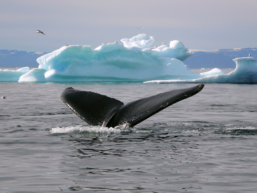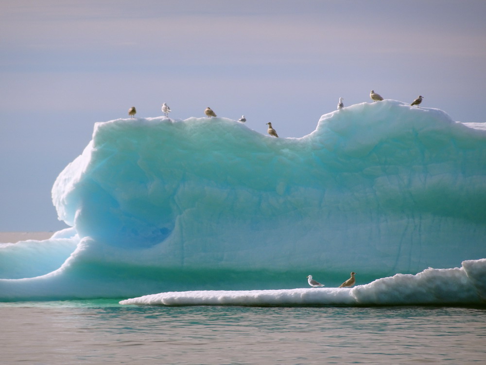 Den kommenden Tag verbrachten wir noch in Qeqertarsuaq, machten eine kurze Wanderung in Richtung eines Wasserfalls und eine etwas längere über Stock und Stein – mehr Stein – zu einer kleinen Bucht, in die sich strömungsbedingt immer ein paar Eisberge verirren. Offenbar war aber Ferienzeit im Eisbergkalender, denn der erhoffte Anblick war eher dürftig. Am folgenden Morgen brachte uns die 9:00 Uhr-Fähre zurück nach Ilulissat. Auf das teuerste Fish ’n‘ Chips meines Lebens folgte das teuerste Bier meines Lebens. Umgerechnet 14 Euro für den gezapften halben Liter verliehen diesem einfachen Rezept aus Hopfen, Malz und Wasser eine würdevolle Exklusivität. Davon beflügelt machten wir uns auf zum ‚Isfjord‘, einem UNESCO-Welterbe, was eine Wanderung von etwa einer Stunde bedeutete. Der ‚Isfjord‘ ist die Mündung des äußerst produktiven Gletschers ‚Sermeq Kujalleq‘. Etwa 10% des jährlich in Grönland kalbenden Festlandeises werden durch diesen Gletscher in den Atlantik abgeleitet. Der Fjord ist ca 50 Kilometer lang und an der Mündung vier Kilometer breit, was ein beeindruckendes Bild bietet. An der Gletscherkante ist die Eisdecke noch 700 Meter dick – im Inland ist der Eisschild bis zu drei Kilometer stark – und nur etwa 100 Meter liegen oberhalb des Meeresspiegels. Mit einer Fließgeschwindigkeit von 19 Meter am Tag ist der Gletscher einer der aktivsten der Erde.