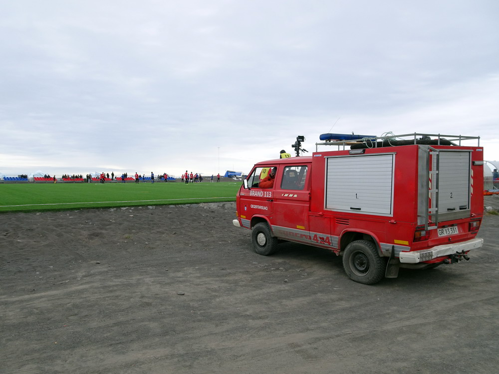 Da von der Airline bis auf vertröstende Emails nix kam, nahmen wir am folgenden Morgen unser Schicksal selber in die Hand und latschten zum Icelandair-Headquarter am alten innerstädtischen Flughafen. Eine freundliche Mitarbeiterin buchte uns dann auf den nächsten verfügbaren Flug um, was wie von uns recherchiert und befürchtet, erst am Freitag-Abend der Fall war, was auch die letzte Patrone bedeutete, wenn wir die angestrebten Vorhaben noch umsetzen wollten. Da aber weiter die Option bestand, dass wir kurzfristig früher wegkommen könnten, hielten wir uns weiter in Reykjavik auf, um im Fall der Fälle schnell abreisebereit zu sein. Von der Airline kam aber den ganzen Tag über nichts, so dass wir uns gegen halb sieben am Abend entschieden, ein weiteres Fußballspiel zu besuchen. Wir saßen gerade im Taxi dorthin, als eine Email einschlug, dass wir auf den Flug an diesem Abend um halb zehn gebucht wurden. Sportlich, wenn man bedenkt, dass die Fahrzeit von Reykjavik bis zum Airport eine Dreiviertelstunde beträgt. Also den Taxi-Wikinger zurück zum Hotel beordert, das Gepäck gerafft und 130 Euro später (welche der Airline noch schön aufs Brot geschmiert werden) schlugen wir eineinhalb Stunden vor Abflug am Check in-Schalter auf. Dort hieß man uns herzlich willkommen und teilte uns mit, dass die Information auf einem Fehler basierte und die Maschine ausgebucht sei. Jetzt war Polen offen und auch wenn es letztlich ja nichts bringt, außer hohem Blutdruck und der Befriedigung irgendeinem armen Gunnar, der ja auch nix dafürkonnte, ordentlich die Meinung gegeigt zu haben, platzte mir entsprechend der Kittel.