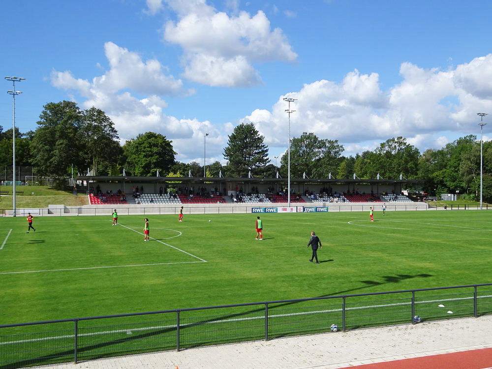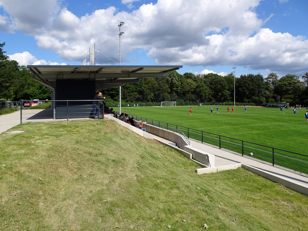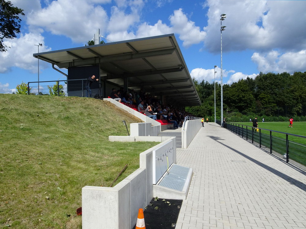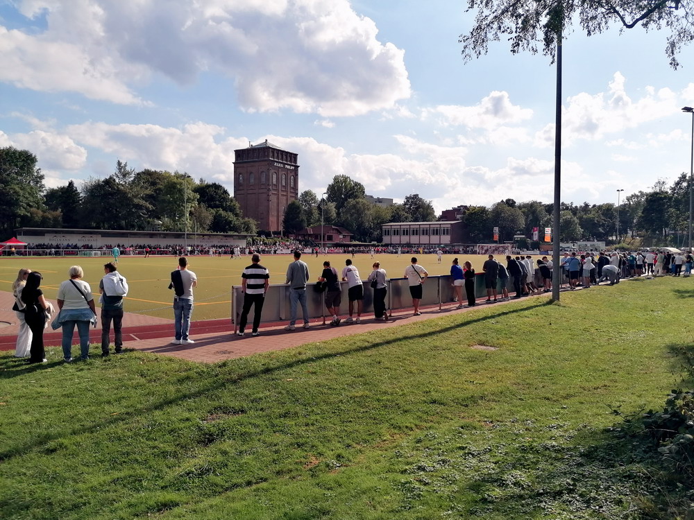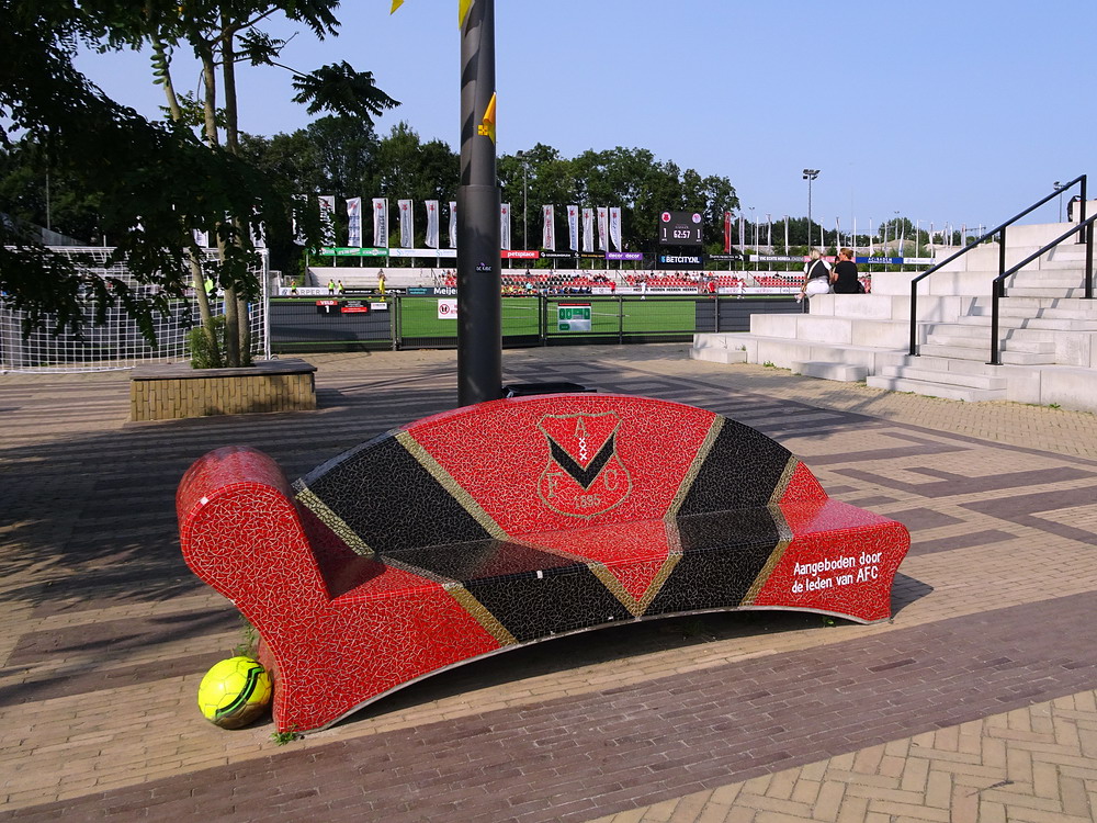 Da die Herzdame nach der Reise ins Eis noch ein wenig Entspannung reklamierte, war die holländische Küste nahe Amsterdam das Ziel. Das ermöglichte mir den Besuch beim AFC in der Amsterdamer Peripherie. ‚Schöne‘ neue Fußballwelt – während das Eintrittsgeld ausschließlich per Kartenzahlung möglich war, bekam man im Gegenzug kein Ticket. Das kleine Stadion unterscheidet sich von den anderen Amateur-Spielstätten des Landes nicht signifikant, wenn da nicht die Architektur drum herum wäre. Während sich hinter dem einen Tor eine Businesskulisse gerade macht, bringt sich hinter dem anderen Gebälk ein wilder, ungeordnet erscheinender Mischkomplex in Stellung. ‚Valley‘ heißt dieses Ensemble, welches ein echter Eyecatcher ist und einen zerklüfteten Canyon imitieren soll. Ein aus drei Türmen mit unterschiedlicher Höhe bestehender Gebäudekomplex birgt Büros, Geschäfte, Restaurants und Apartments. Die Mischung aus verspiegelten, glatten und unruhigen Fassaden vereinen irgendwie eine harmonische Disharmonie. Nicht ganz so harmonisch ging es auf dem Kunstgras-Spielfeld unterhalb des Gebäudes zu. Während beinahe zeitgleich der glorreiche RWE im DFB-Pokal gegen die Leipziger Filiale des Energydrink-Herstellers aus dem österreichischen Fuschl am See antreten musste – ein Pokal-Los, das mich nullkommanull abholte – kämpften am ersten Spieltag der dritten Spielklasse die Kontrahenten um jeden Plastikhalm. Die Führung der Gäste aus dem Norden des Landes konnte der AFC noch vor der Pause ausgleichen. Die zweite Spielhälfte war ebenso ausgeglichen wie die erste, einen Treffer gab es nicht mehr zu bestaunen.