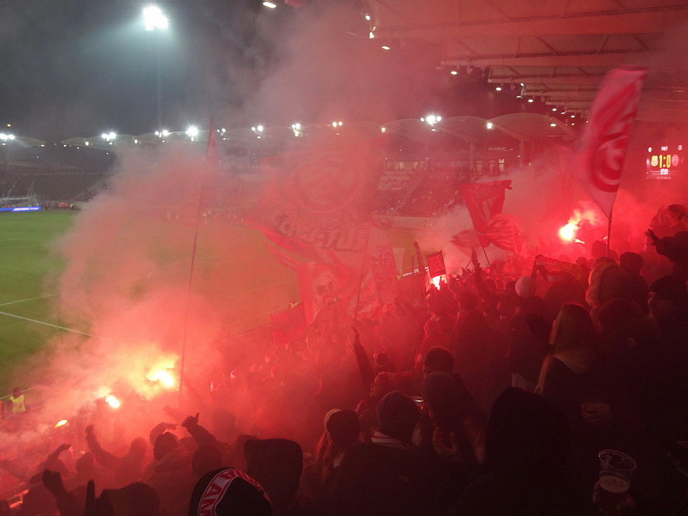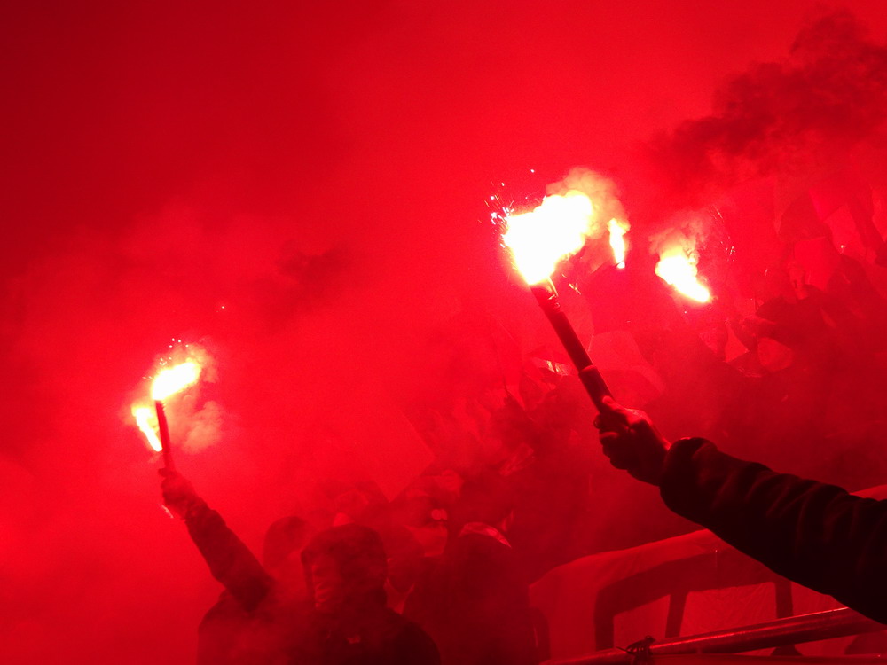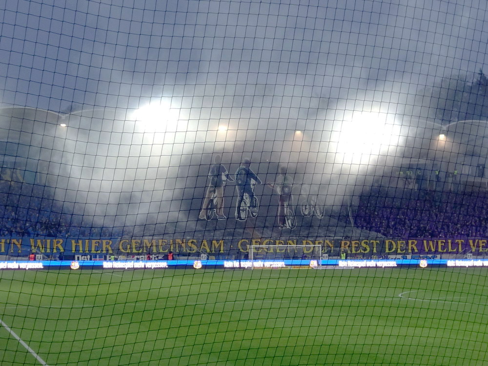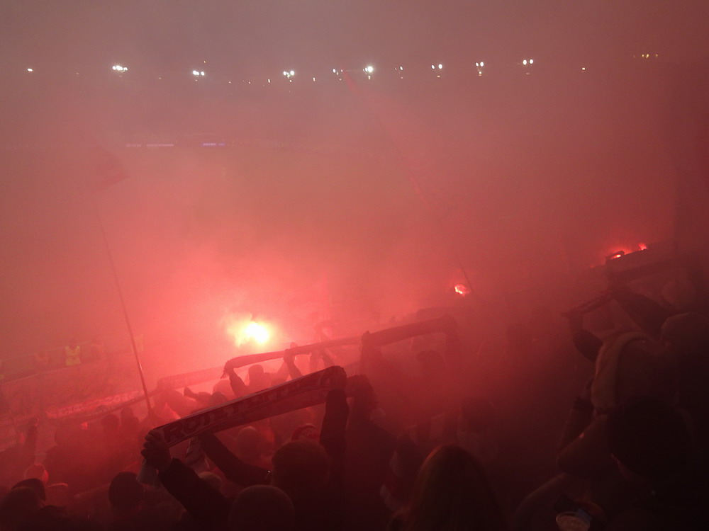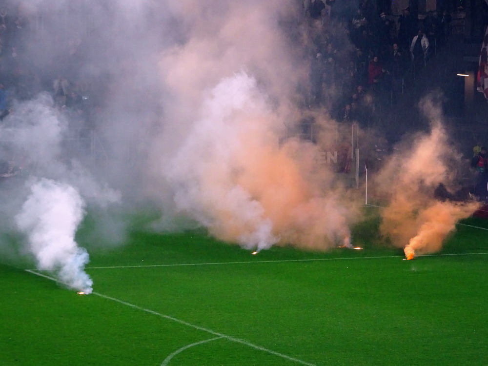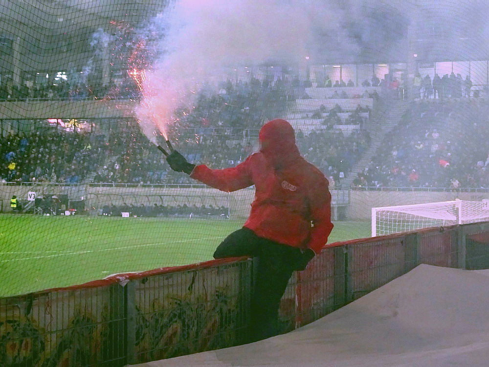 Mein erster Besuch in Heerenveen vor längerer Zeit ist mir nicht nachhaltig in Erinnerung geblieben, daher war eine erneute Anreise durchaus berechtigt und das Spiel gegen den Tabellenführer und amtierenden Meister aus der Philips-Stadt schien dafür angemessen. Der PSV hatte aus den bisherigen 15 Saisonspielen 14 Siege davongetragen, lediglich das Prestige-Duell gegen Ajax endete mit einer Niederlage. Einen entsprechend dominant auftretenden Gast hatte ich erwartet, aber davon war überhaupt nichts zu sehen. Die Friesen, die in ihrer Club-Vita einem Pokalerfolg vorweisen können, waren von Beginn an die spielbestimmende und galligere Mannschaft, während der mit zahlreichen Meisterschaften und Pokalsiegen und auch zwei Europapokal-Erfolgen ausgestattete PSV, offenbar im trügerischen Glauben an die eigene Stärke, pomadig vor sich hin kickte. Allerdings ließ der SC Heerenveen Chance um Chance genutzt, dass man schon befürchten musste, dass es dann so läuft, wie es halt für die besser platzierte und prinzipiell besser besetzte Truppe oft läuft. Tat es aber nicht und dem Moldawier Nicolaescu war es vorbehalten, eine Viertelstunde vor Schluss den Treffer das Tages zu setzen. Das Abe Lenstra Stadion gehört mit seinen knapp 27.000 Plätzen schon zu den größeren des Landes und ist auch immer gut besucht. Im krassen Gegensatz dazu ist es um die Stimmung aber nicht sonderlich gut bestellt. Der Riesen-Roar herrscht in den Niederlanden ja nur selten, aber so tote Hose habe ich selbst dort nicht oft erlebt. Dabei sah die Nordkurve gar nicht so übel aus. Die (vermeintlich) aktive Szene war komplett in schwarz angetreten und stand kompakt zusammen. Ihnen gegenüber platziert, hörte ich sie aber maximal ein halbes Dutzend Male. Und das lag auch nicht am mit 15 Bussen angereisten PSV Anhang, dessen Ultras im unteren Bereich des im Eck liegenden Gästeblocks Dauergesang lieferten. So wird mir vermutlich auch der zweite Besuch in Heerenveen nicht in der Hirnrinde kleben bleiben.