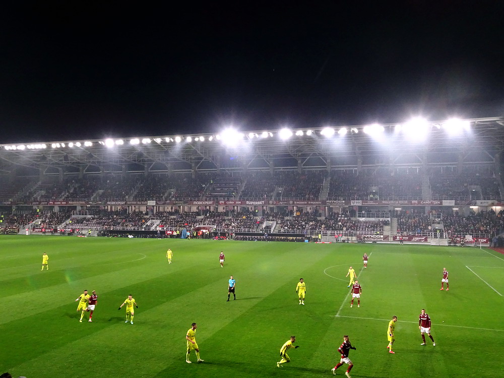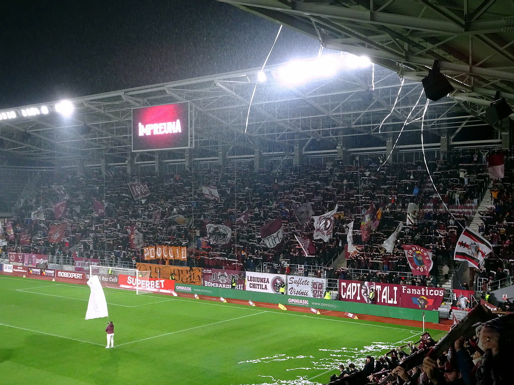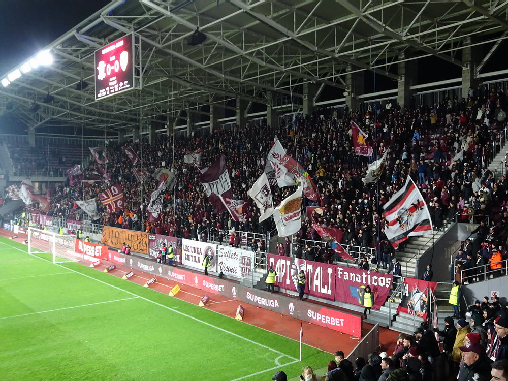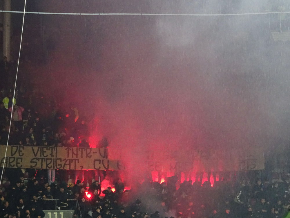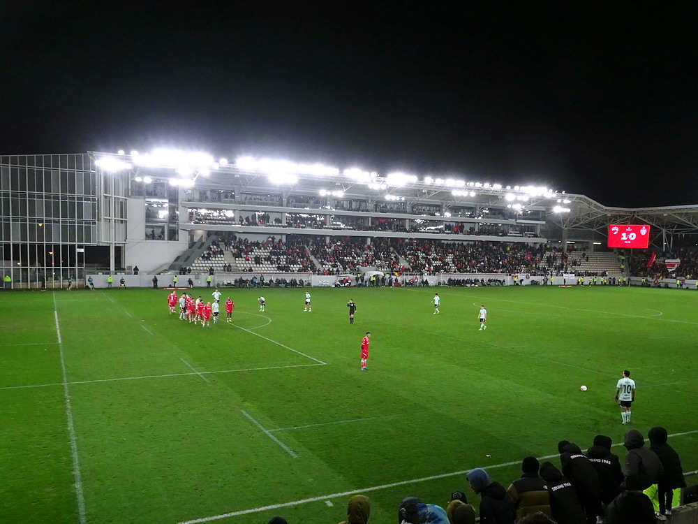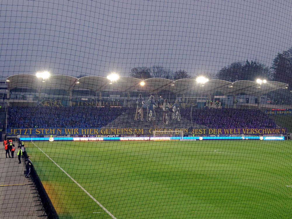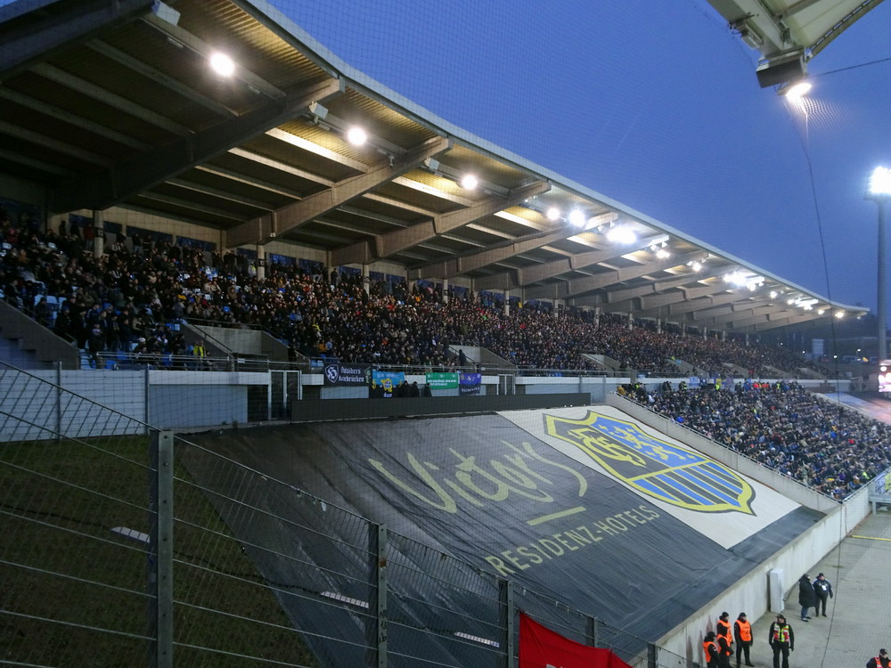 Mein erster Besuch in Heerenveen vor längerer Zeit ist mir nicht nachhaltig in Erinnerung geblieben, daher war eine erneute Anreise durchaus berechtigt und das Spiel gegen den Tabellenführer und amtierenden Meister aus der Philips-Stadt schien dafür angemessen. Der PSV hatte aus den bisherigen 15 Saisonspielen 14 Siege davongetragen, lediglich das Prestige-Duell gegen Ajax endete mit einer Niederlage. Einen entsprechend dominant auftretenden Gast hatte ich erwartet, aber davon war überhaupt nichts zu sehen. Die Friesen, die in ihrer Club-Vita einem Pokalerfolg vorweisen können, waren von Beginn an die spielbestimmende und galligere Mannschaft, während der mit zahlreichen Meisterschaften und Pokalsiegen und auch zwei Europapokal-Erfolgen ausgestattete PSV, offenbar im trügerischen Glauben an die eigene Stärke, pomadig vor sich hin kickte. Allerdings ließ der SC Heerenveen Chance um Chance genutzt, dass man schon befürchten musste, dass es dann so läuft, wie es halt für die besser platzierte und prinzipiell besser besetzte Truppe oft läuft. Tat es aber nicht und dem Moldawier Nicolaescu war es vorbehalten, eine Viertelstunde vor Schluss den Treffer das Tages zu setzen. Das Abe Lenstra Stadion gehört mit seinen knapp 27.000 Plätzen schon zu den größeren des Landes und ist auch immer gut besucht. Im krassen Gegensatz dazu ist es um die Stimmung aber nicht sonderlich gut bestellt. Der Riesen-Roar herrscht in den Niederlanden ja nur selten, aber so tote Hose habe ich selbst dort nicht oft erlebt. Dabei sah die Nordkurve gar nicht so übel aus. Die (vermeintlich) aktive Szene war komplett in schwarz angetreten und stand kompakt zusammen. Ihnen gegenüber platziert, hörte ich sie aber maximal ein halbes Dutzend Male. Und das lag auch nicht am mit 15 Bussen angereisten PSV Anhang, dessen Ultras im unteren Bereich des im Eck liegenden Gästeblocks Dauergesang lieferten. So wird mir vermutlich auch der zweite Besuch in Heerenveen nicht in der Hirnrinde kleben bleiben.