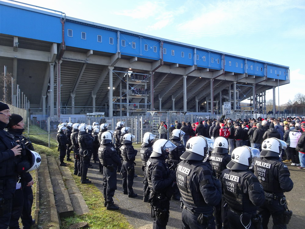 Der FC Audi übernahm dann die Spielkontrolle und erarbeitete sich einige gute Möglichkeiten, aber Jakob Golz war unbezwingbar und wenn für ihn doch mal ein Ball unerreichbar war, hielten Pfosten und Latte den Fuß rein. In der Schlussphase ergaben sich nach Kontern noch zwei gute Chancen, aber insbesondere Martinovic blieb sein erstes Erfolgserlebnis weiterhin verwehrt. Ich seh ihn trotzdem gern im rot-weissen Hemd, er ackert unermüdlich, ist ja auch mehrfacher Vorbereiter und vermittelt absolut das Gefühl, dass er sich wohlfühlt und sich für den RWE den Arsch aufreißen möchte. Guter Typ. Die Gäste konnten froh sein, das Feld überhaupt mit elf Spielern zu verlassen, nicht nur ein Mal hätte der insgesamt ordentlich regierende Spielleiter den roten Pappkarton aus der Tasche nesteln können. Unter dem Strich steht ein etwas glücklicher Sieg, der aber aufgrund der kämpferischen Leistung alles andere als unverdient ist. Die Formkurve zeigt also weiter nach oben und das ist auch bitter nötig, da auch die Konkurrenten im unteren Tabellendrittel regelmäßig Punkten und die Entfernung von den Abstiegsplätzen daher nur schleppend und Punkt für Punkt von Statten geht. Als Berufs-Pessimist bleibe ich aber optimistisch, denn die Körpersprache und das Auftreten der Mannen in den schönsten Farben der Welt hält aktuell keinem Vergleich mit den teils blutleeren Angsthasennummern der Hinrunde stand.