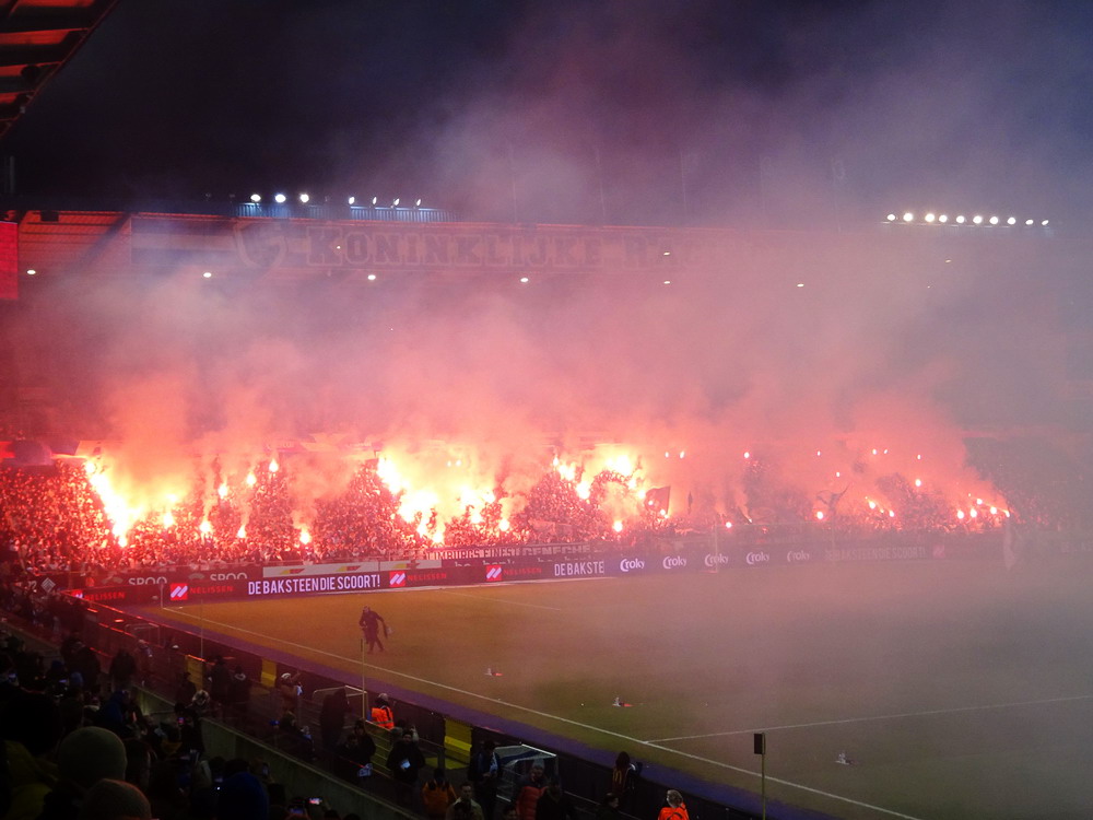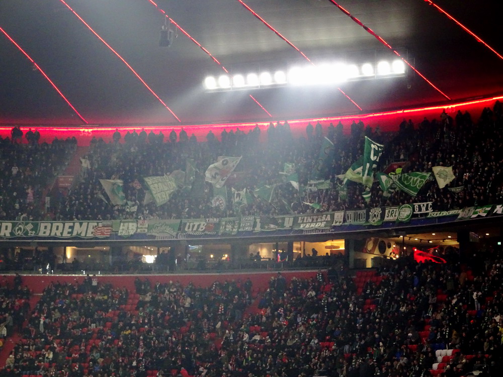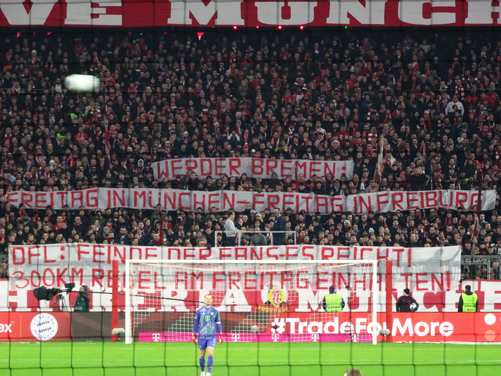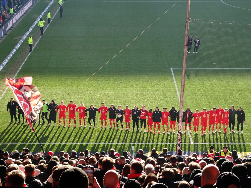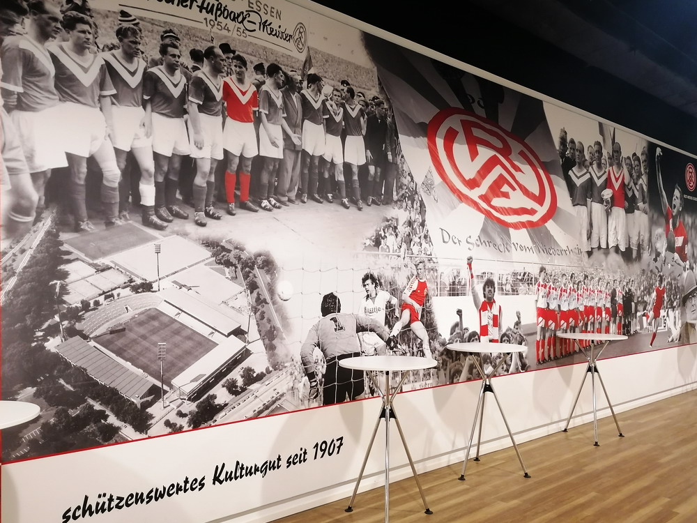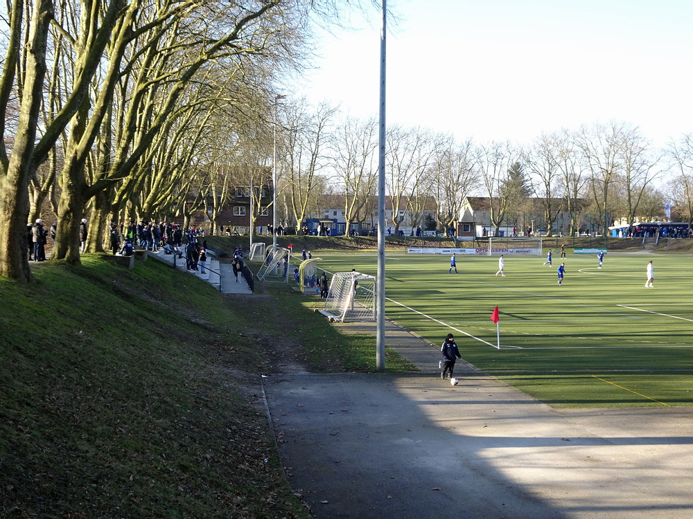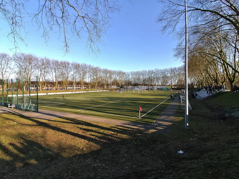 Mit der Audi-Betriebssportmannschaft stellte sich dem glorreichen RWE eine knifflige Aufgabe, denn der Gegner hatte in den letzten 18 Spielen nur einmal(!) den Platz als Verlierer verlassen müssen. Auch wenn die Roten aktuell recht gut unterwegs sind, hätte ich mich deshalb auch schon mit einem Punkt angefreundet. Auf der anderen Seite bedeutet eine lange Serie ohne oder mit wenig Niederlagen ja auch, dass die Wahrscheinlichkeit einer baldigen Schlappe steigt. Warum sollte das nicht hier und heute in Essen der Fall sein, bei einer Mannschaft, die sich nun weitestgehend gefunden zu haben scheint, auch wenn es noch genug Luft nach oben gibt. In der Westkurve gab es eine kleine Choreographie zu sehen. Im mittleren Bereich wurden viele rot-weisse Fahnen geschwenkt, rechts und links davon rotes und weißes Konfetti geworfen. Das alles untermalte ein den Zusammenhalt beschwörendes Banner am Zaun. Auf der Gegenseite versuchten sich knapp 100 ‚Schanzer‘ Gehör zu verschaffen – weitestgehend erfolglos. In der ersten Halbzeit sah ich ein ausgeglichenes Spiel. Die Oberbayern hatten die erste Torgelegenheit, danach kam auch der RWE zu Torraum-Szenen. Als Safi dann in den Sechzehner eindrang und von Malone umgegrätscht wurde, zeigte der Referee sofort auf den Punkt. Im Nachhinein sorgte die Entscheidung für Diskussion, weil Safi die riskante Aktion des Verteidigers dankend annahm, dennoch ging der Strafstoß in Ordnung. Arslan verwandelte souverän. In der Folge kamen die Gäste noch zu Möglichkeiten, das Aluminium und Golz retteten aber. Der Sohnemann des langjährigen HSV-Schnappers Richie Golz wurde im zweiten Durchgang wieder zum entscheidenden Faktor. Zunächst erhöhte Eitschberger kurz nach dem Seitenwechsel, womit nun die ganze ‚Turban-Fraktion‘ vom letzten Wochenende erneut getroffen hatte.