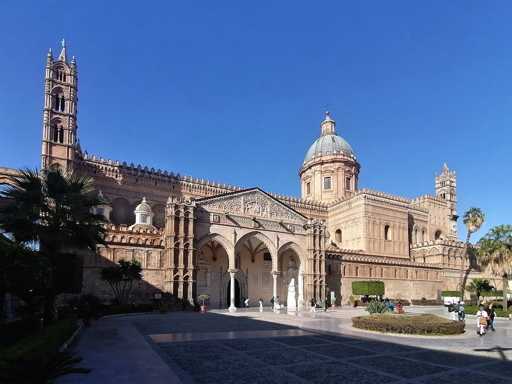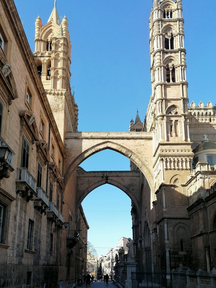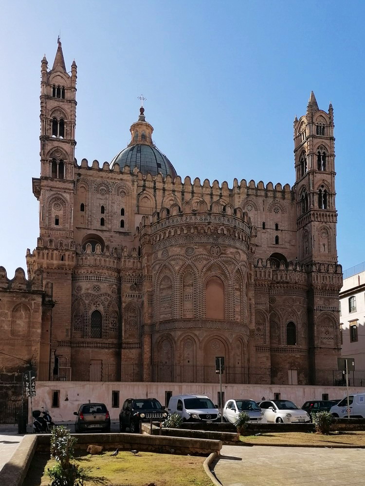 Sizilien war gemeinsam mit einem meiner rot-weissen Gefährten die auserkorene Destination für das Wochenende. Das größte Eiland des Mittelmeeres hatte ich noch nie betreten, für eine ausgiebige Erkundung reichen zwei Tage natürlich nicht aus, daher beschränkte sich die Stippvisite auf den westlichen Ausläufer der Insel. Früh in Palermo gelandet, nahmen wir uns zunächst die Zeit für einen Besuch des abendlichen Spielortes. Danach blieb immer noch ausreichend Zeit für einen ausgiebigen Rundgang durch das ‚Centro Storico‘. Strahlpunkt der Altstadt ist die im 12. Jahrhundert erbaute Kathedrale ‚Santa Vergine Maria Assunta‘ mit einer Länge von circa 130 Metern. Nachdem wir den beeindruckenden Sakralbau besichtigt hatten, verirrten wir uns zunächst fast in den verwinkelten Gassen der Altstadt, bevor wir noch einen Abstecher ans Meeresufer machten und uns mit ner Hopfenhülse von den Strapazen des Rundgangs erholten.