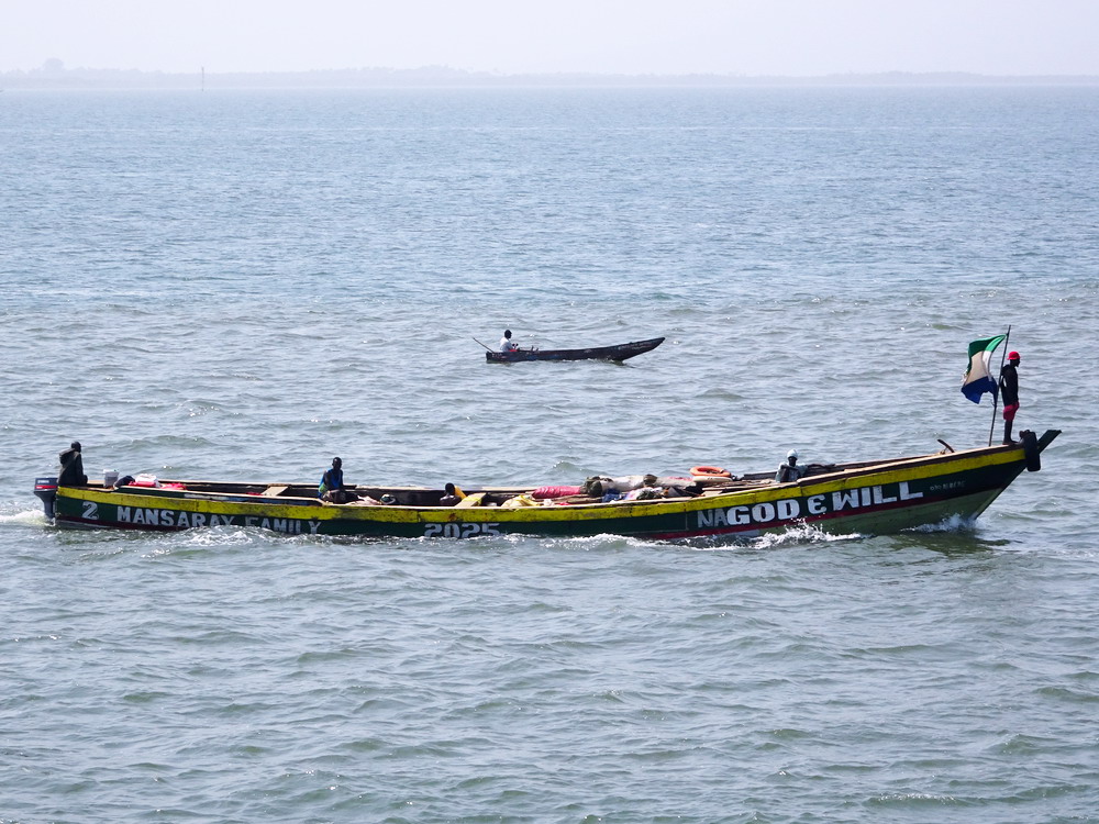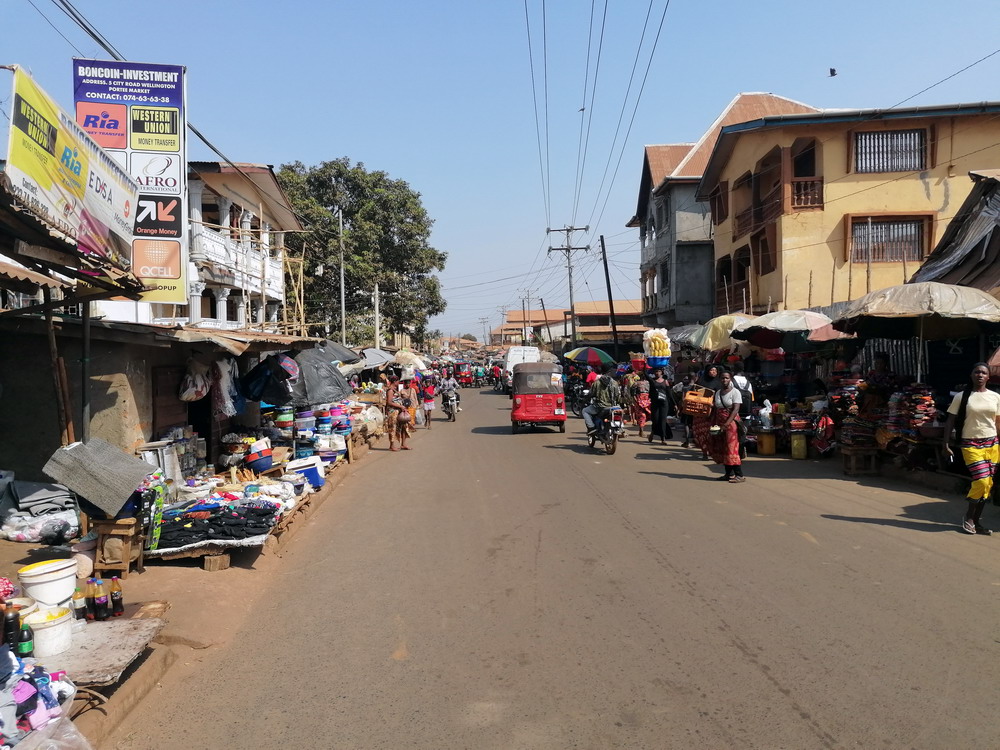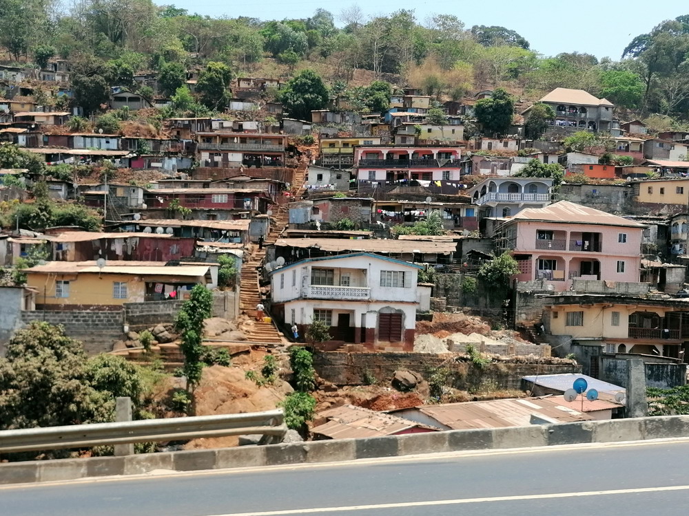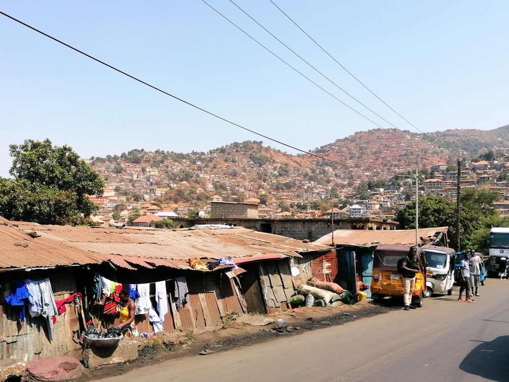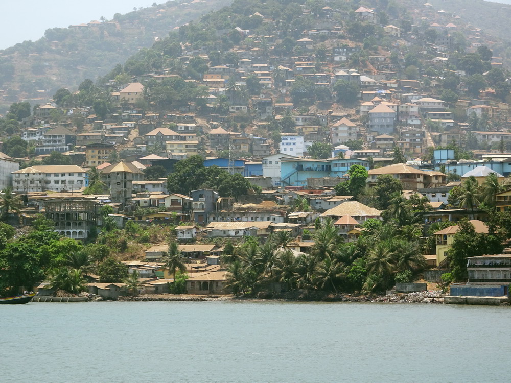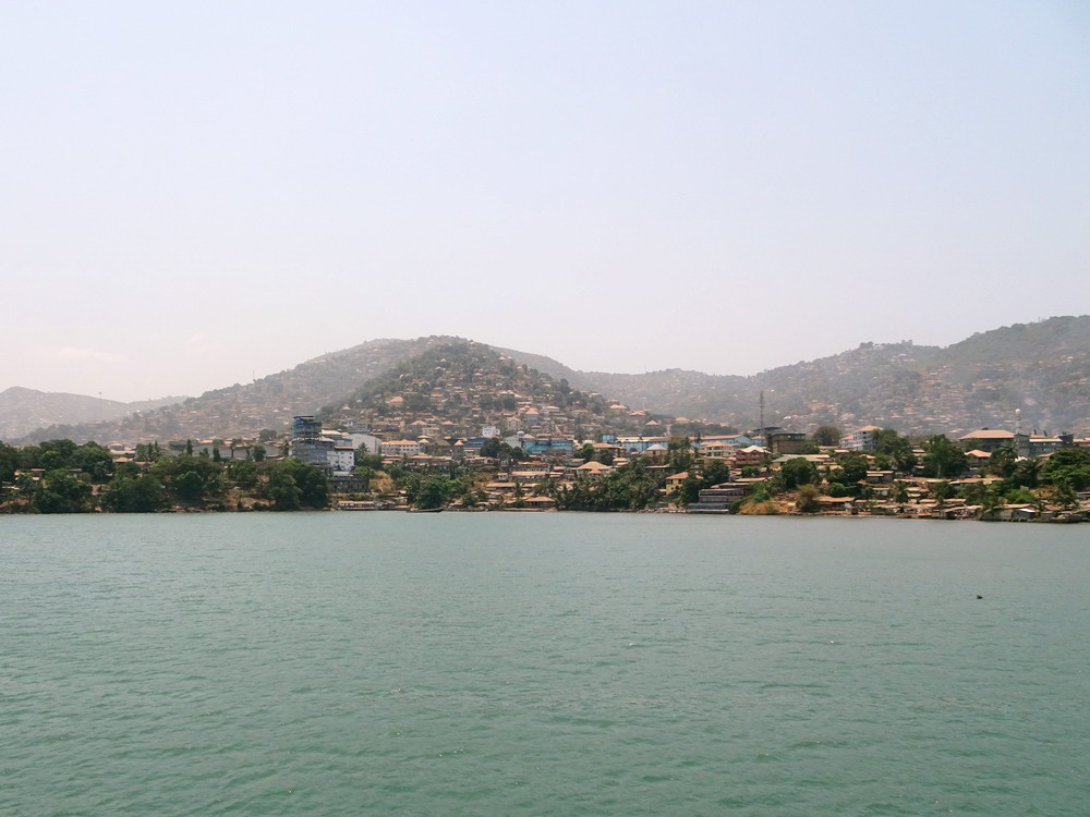 Über Nacht stieß dann auch Pascal, über Marokko eingeflogen, endlich dazu und die Reisegruppe für die nächsten drei Tage war komplett. Nachdem uns Alisa ein Frühstück zubereitet hatte – Omelette mit Ei, Zwiebeln, Tomate und Kochbanane – fuhren wir mit dem Taxi die knapp 15 Kilometer zum ‚Tagrin Ferry Terminal‘. Offizielle Abfahrtszeit des rostigen Seelenverkäufers war 11:00 Uhr, bis alles verladen und verstaut war, wurde es Viertel vor zwölf, was uns der Übernachtungs-Yogi aus indischer Produktion aber schon prophezeit hatte. Die Fahrt avancierte dann wenig überraschend zur Verkaufsveranstaltung, denn natürlich hatten fliegende Händler allen möglichen Scheiß zu verkaufen. Vom Damenschlüpper über die natürlich echte Rolex, Gewürze und die ultimative Lösung gegen Malaria war alles dabei, nur kaltes Bier fehlte ärgerlicherweise im feilgebotenen Sortiment. Aber so läuft es auf diesem Kontinent hält – jeder versucht sich irgendwie über Wasser zu halten, jeder verkauft irgendwas. Dass sich der korrodierte Pott über Wasser hielt und nach 45 Minuten am Kissy Terminal in Freetown anlegte, war erfreulich. Auf der anderen Seite der Bucht waren wir dann auch im ‚richtigen‘ Afrika angekommen, denn weniger erfreulich war der Kampf mit den Taxista, aber wir kamen recht schnell mit einem jungen Typen überein, der uns mit seinem abgerockten Skoda Fabia zum ‚New Brookfields Hotel‘ beförderte. Was einiges an Geduld erforderte, denn der Straßenverkehr kam teilweise zum Erliegen. Anderen Verkehrsteilnehmern mal Vorrang einzuräumen ist nicht die Stärke der Afrikaner und liegengebliebene Fahrzeuge – gar nicht mal so wenige – förderten den Verkehrsfluss auch nicht unbedingt. Eine gesperrte Straße nötigte unseren Chauffeur dann zu einem größeren Umweg und spätestens ab da war seine Laune endgültig im Keller. Das ‚New Brookfields‘ zählt wohl schon zu den besseren Häusern der Stadt, war von diesen auch noch am erschwinglichsten und natürlich gab es ein paar wenige Mängel. Das machte aber das sehr freundliche und hilfsbereite Rezeptionsmädel mehr als wett.