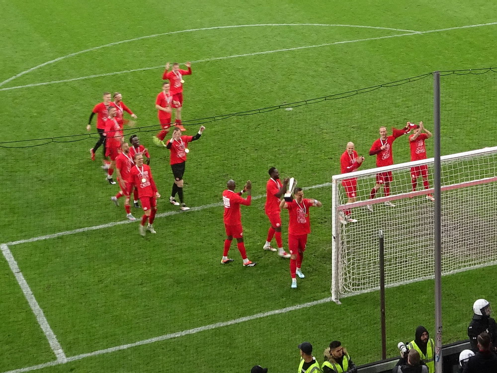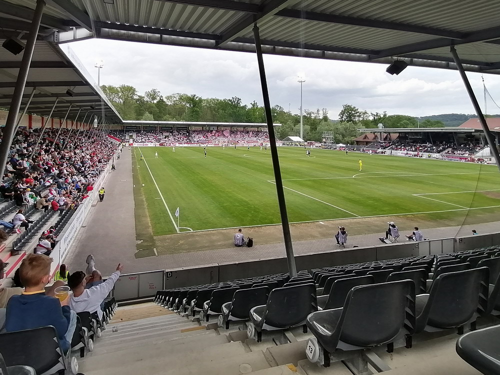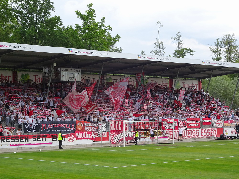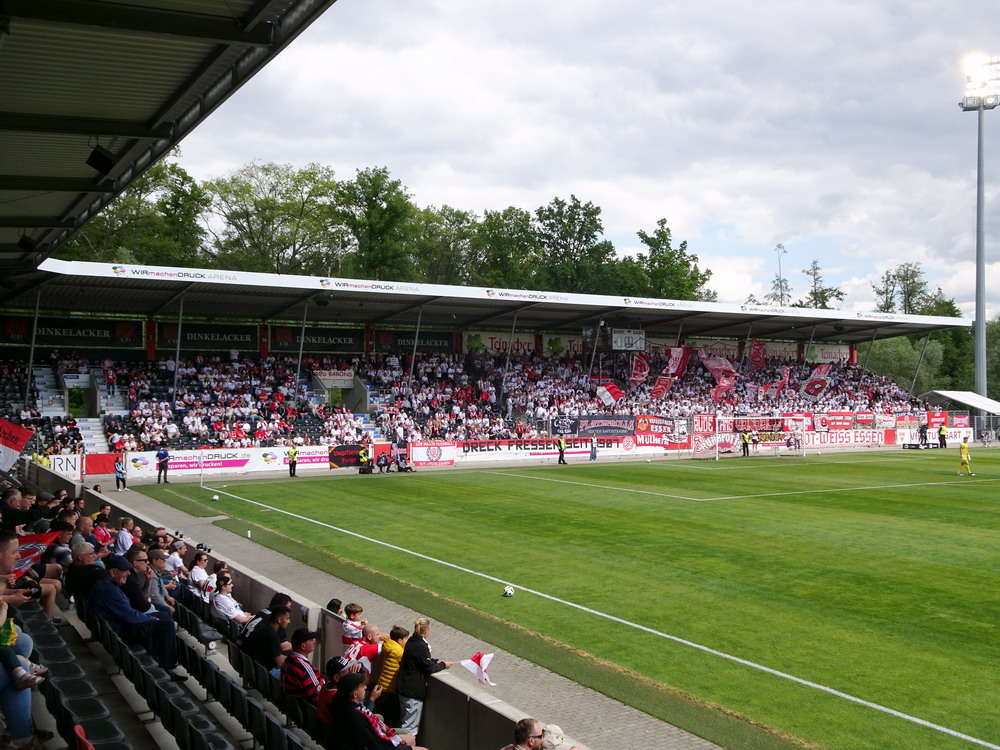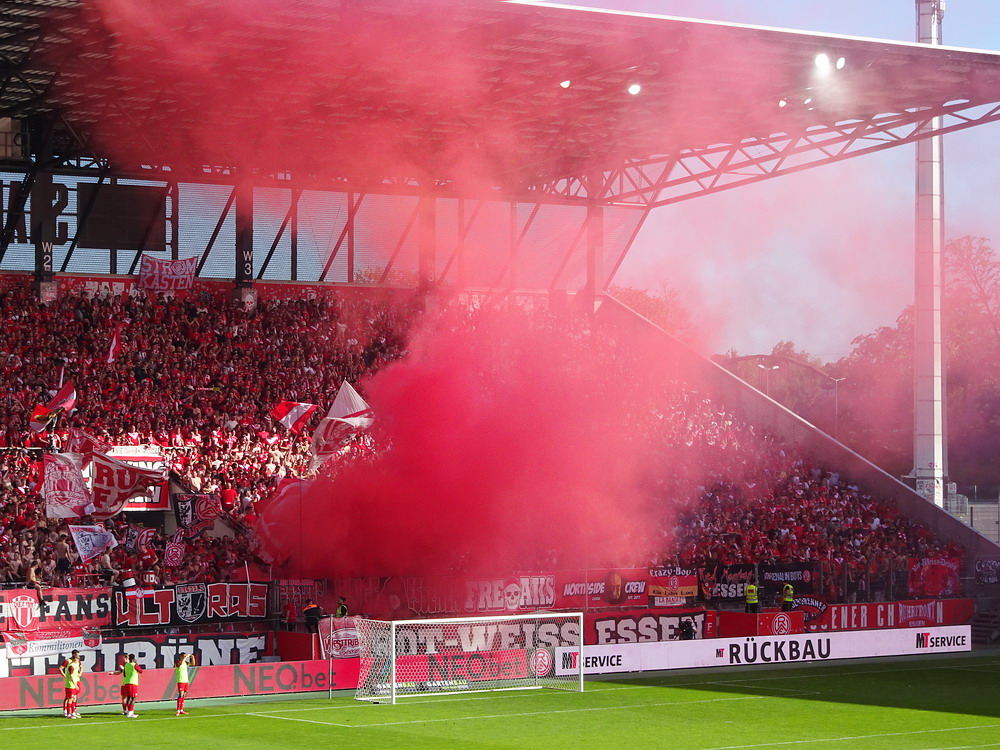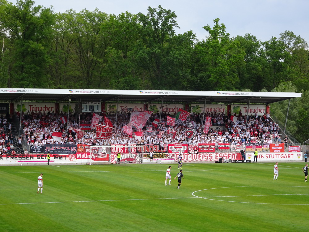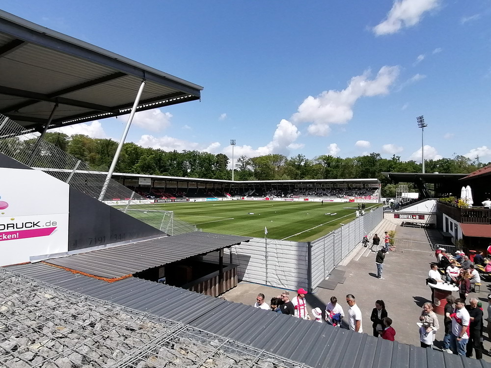 Eine wechselhafte Geschichte hat der Ballspielverein 04 aus der Landeshauptstadt Nordrhein-Westfalens. Lange Zeit spielte der Verein meist auf Landesliga-Niveau mit wenigen Ausreißern nach unten und oben. Mitte der vergangenen Dekade begaben sich die Schwarz-Roten dann in eine Abwärtsspirale die letztlich gar in der Kreisliga C endete. Seit in paar Saisons wird wieder auf B-Klassen-Ebene gekickt, bisher allerdings ohne ernsthaft ins Aufstiegsgeschehen eingreifen zu können. Überregional bekannt ist der BV 04 für die jährlich zu Ostern ausgerichtete und schon seit über 60 Jahren stattfindende ‚U19-Champions-Trophy‘, zu der namhafte Mannschaften aus Europa und auch aus der ganzen Welt anreisen. Die Sportanlage liegt eher untypisch inmitten eines gemischten Wohn- und Geschäftsquartieres und erhält durch die umliegende Bebauung auf irgendeine Art eine interessante Kulisse. Prunkstück der Anlage ist der Naturrasenplatz mit der überdachten Tribüne. Eine gute Note hat auch das durch den Pächter der Vereinsgaststätte geführte Grill-Catering verdient. Die Sucuk im Fladenbrot mit Gurken und geschmorten Zwiebeln waren hervorragend. Während der BV 04 jenseits von Gut und Böse im oberen Mittelfeld des Tableaus steht, ging es für die Gäste um nichts weniger als den Aufstieg. Mit einem passenden Ergebnis des Verfolgers hätte dieser schon heute realisiert werden können. Daraus wurde nichts, aber mit dem heutigen Kantersieg wurde das Tor zur Kreisliga A sperrangelweit aufgestoßen.