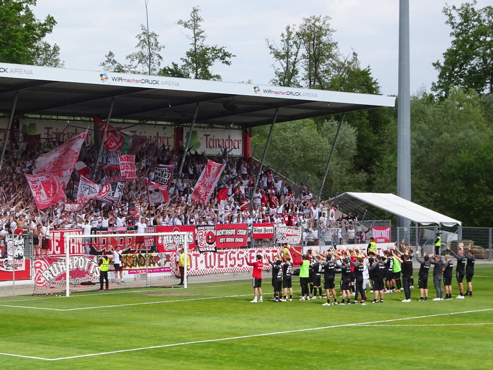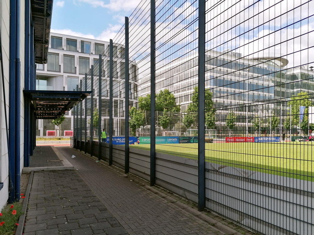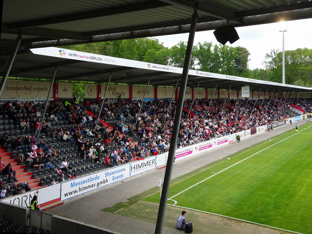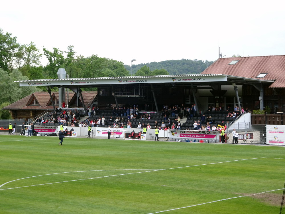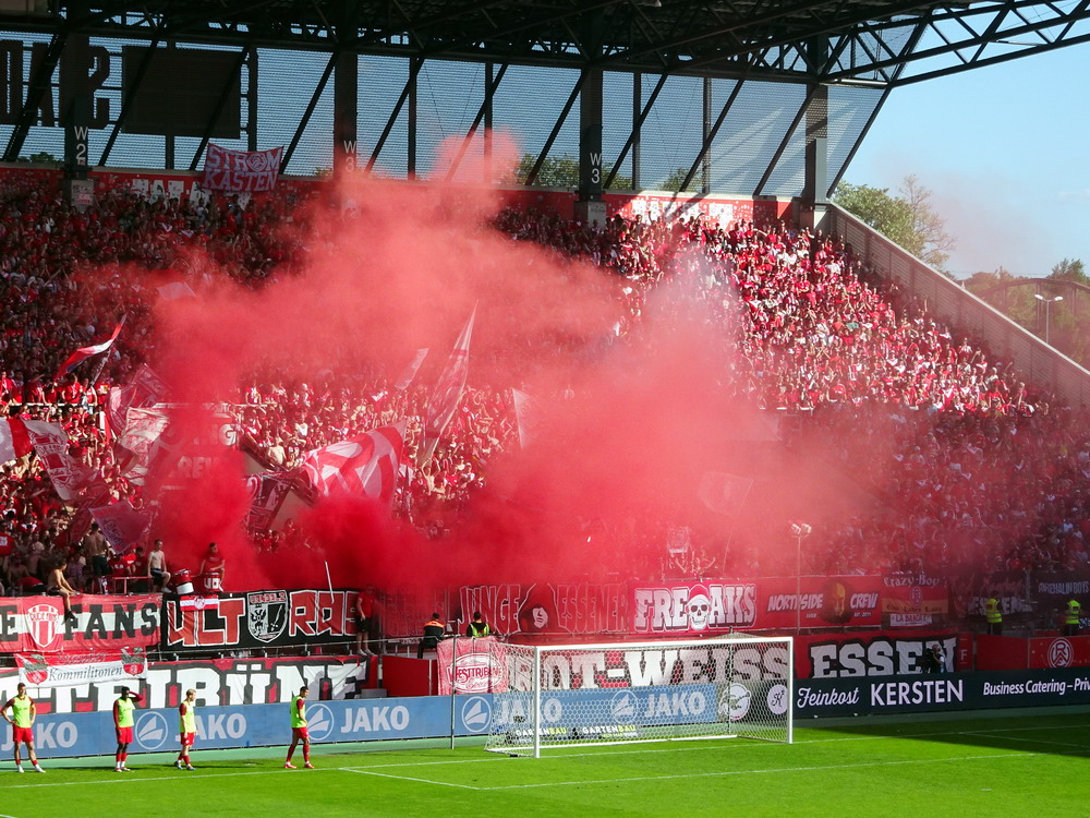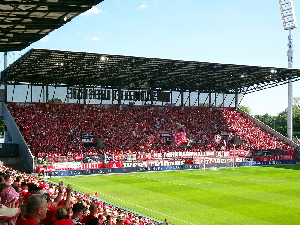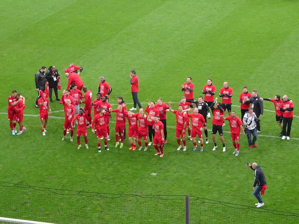 Eine wechselhafte Geschichte hat der Ballspielverein 04 aus der Landeshauptstadt Nordrhein-Westfalens. Lange Zeit spielte der Verein meist auf Landesliga-Niveau mit wenigen Ausreißern nach unten und oben. Mitte der vergangenen Dekade begaben sich die Schwarz-Roten dann in eine Abwärtsspirale die letztlich gar in der Kreisliga C endete. Seit in paar Saisons wird wieder auf B-Klassen-Ebene gekickt, bisher allerdings ohne ernsthaft ins Aufstiegsgeschehen eingreifen zu können. Überregional bekannt ist der BV 04 für die jährlich zu Ostern ausgerichtete und schon seit über 60 Jahren stattfindende ‚U19-Champions-Trophy‘, zu der namhafte Mannschaften aus Europa und auch aus der ganzen Welt anreisen. Die Sportanlage liegt eher untypisch inmitten eines gemischten Wohn- und Geschäftsquartieres und erhält durch die umliegende Bebauung auf irgendeine Art eine interessante Kulisse. Prunkstück der Anlage ist der Naturrasenplatz mit der überdachten Tribüne. Eine gute Note hat auch das durch den Pächter der Vereinsgaststätte geführte Grill-Catering verdient. Die Sucuk im Fladenbrot mit Gurken und geschmorten Zwiebeln waren hervorragend. Während der BV 04 jenseits von Gut und Böse im oberen Mittelfeld des Tableaus steht, ging es für die Gäste um nichts weniger als den Aufstieg. Mit einem passenden Ergebnis des Verfolgers hätte dieser schon heute realisiert werden können. Daraus wurde nichts, aber mit dem heutigen Kantersieg wurde das Tor zur Kreisliga A sperrangelweit aufgestoßen.