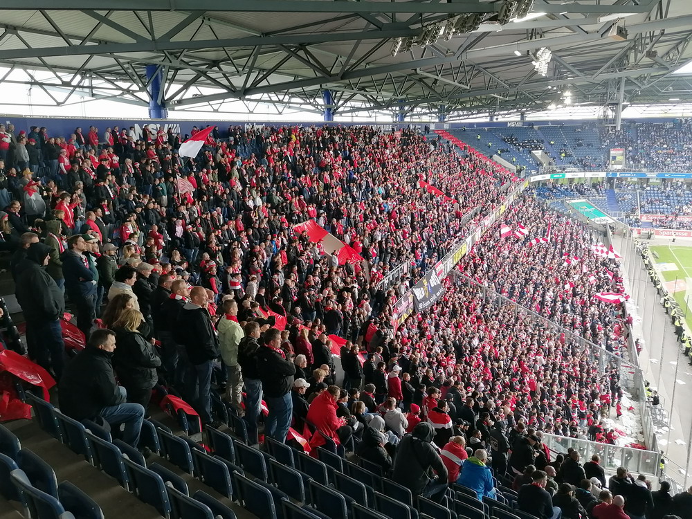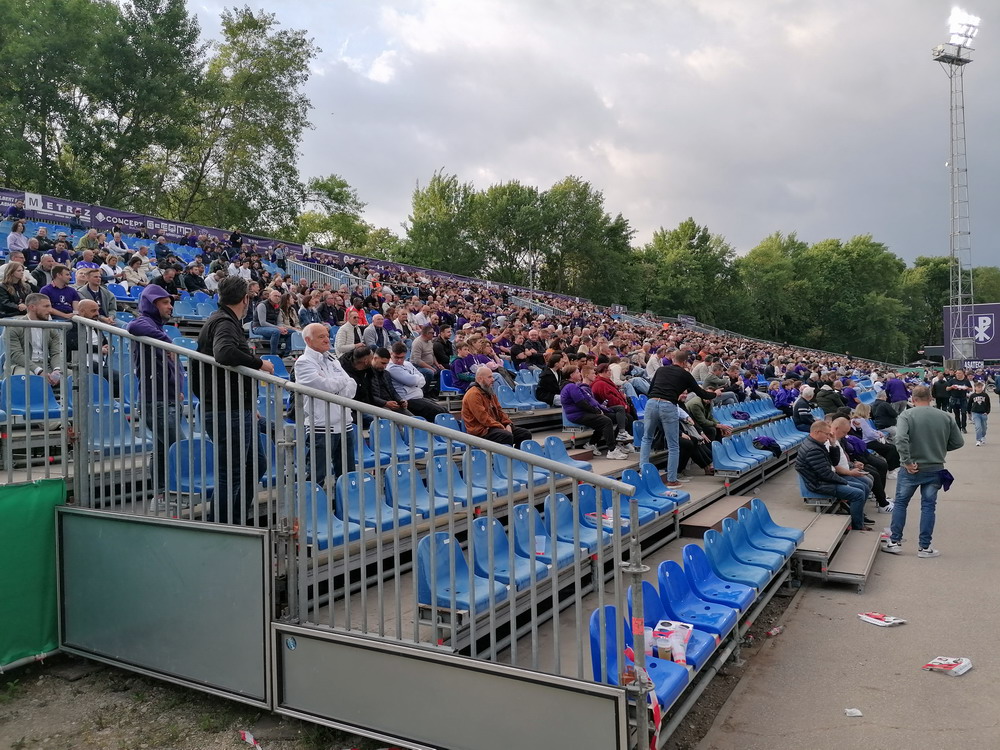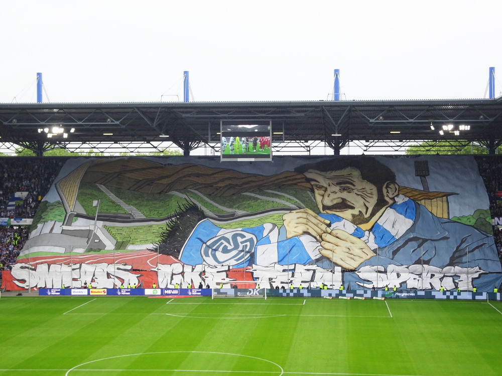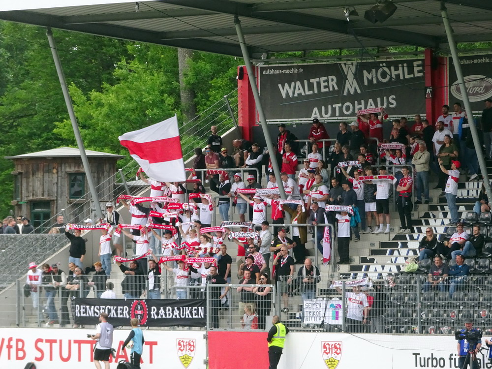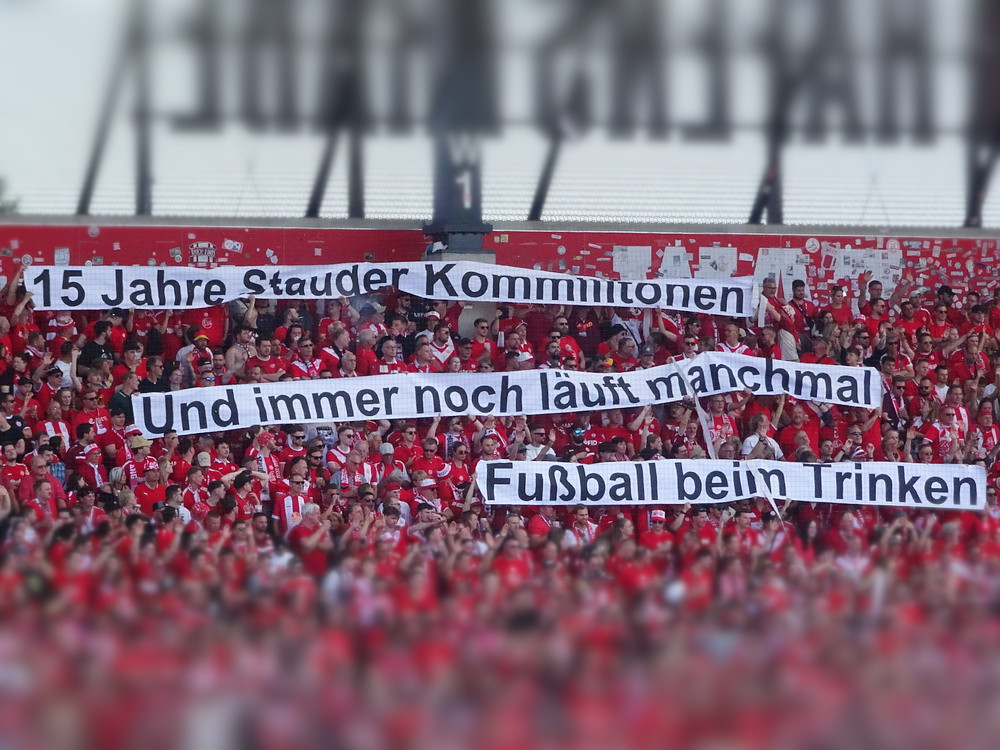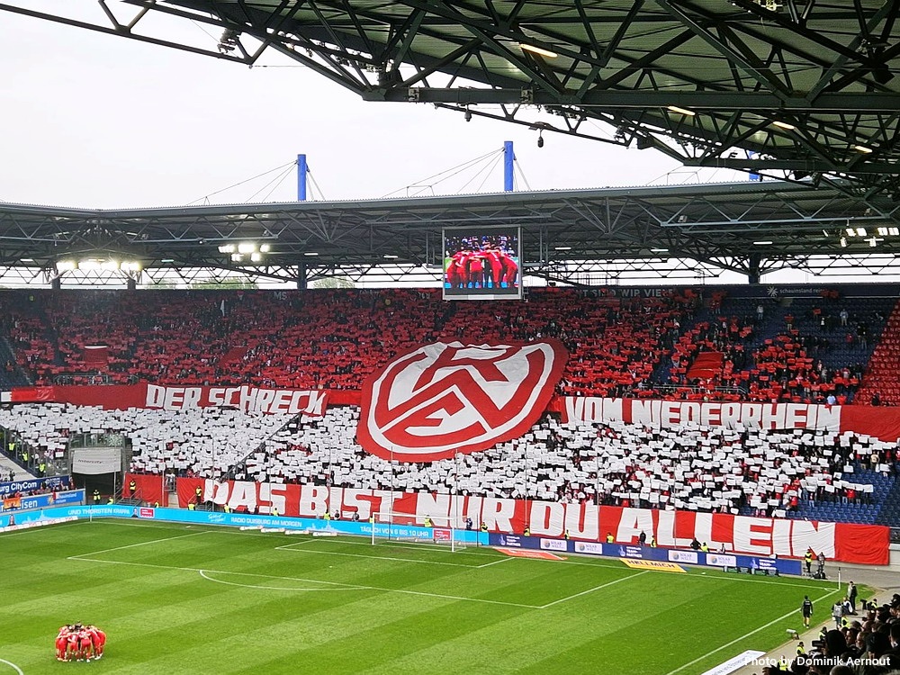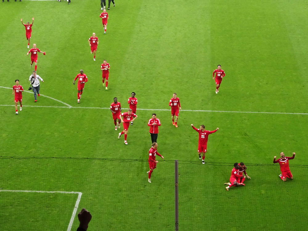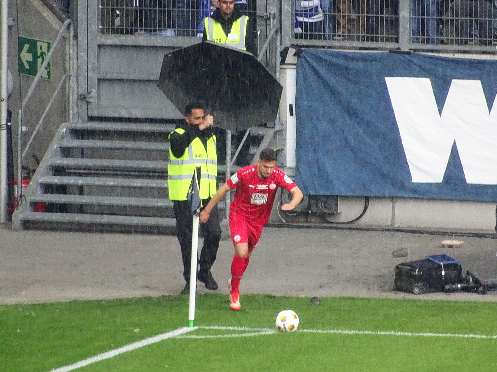 Eine wechselhafte Geschichte hat der Ballspielverein 04 aus der Landeshauptstadt Nordrhein-Westfalens. Lange Zeit spielte der Verein meist auf Landesliga-Niveau mit wenigen Ausreißern nach unten und oben. Mitte der vergangenen Dekade begaben sich die Schwarz-Roten dann in eine Abwärtsspirale die letztlich gar in der Kreisliga C endete. Seit in paar Saisons wird wieder auf B-Klassen-Ebene gekickt, bisher allerdings ohne ernsthaft ins Aufstiegsgeschehen eingreifen zu können. Überregional bekannt ist der BV 04 für die jährlich zu Ostern ausgerichtete und schon seit über 60 Jahren stattfindende ‚U19-Champions-Trophy‘, zu der namhafte Mannschaften aus Europa und auch aus der ganzen Welt anreisen. Die Sportanlage liegt eher untypisch inmitten eines gemischten Wohn- und Geschäftsquartieres und erhält durch die umliegende Bebauung auf irgendeine Art eine interessante Kulisse. Prunkstück der Anlage ist der Naturrasenplatz mit der überdachten Tribüne. Eine gute Note hat auch das durch den Pächter der Vereinsgaststätte geführte Grill-Catering verdient. Die Sucuk im Fladenbrot mit Gurken und geschmorten Zwiebeln waren hervorragend. Während der BV 04 jenseits von Gut und Böse im oberen Mittelfeld des Tableaus steht, ging es für die Gäste um nichts weniger als den Aufstieg. Mit einem passenden Ergebnis des Verfolgers hätte dieser schon heute realisiert werden können. Daraus wurde nichts, aber mit dem heutigen Kantersieg wurde das Tor zur Kreisliga A sperrangelweit aufgestoßen.