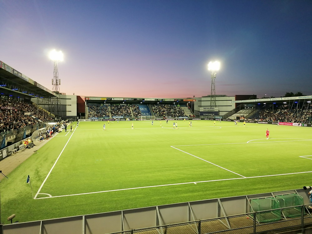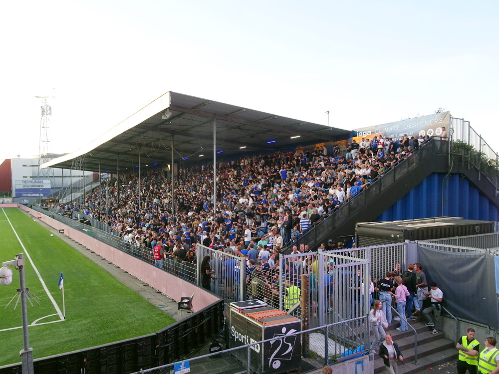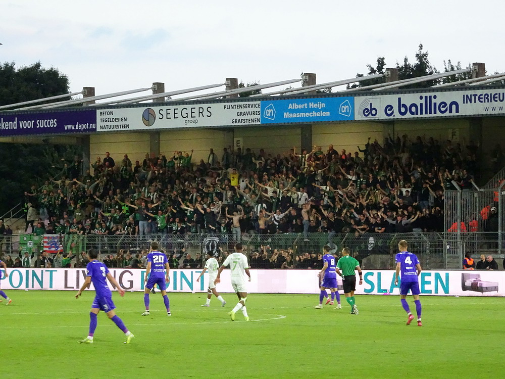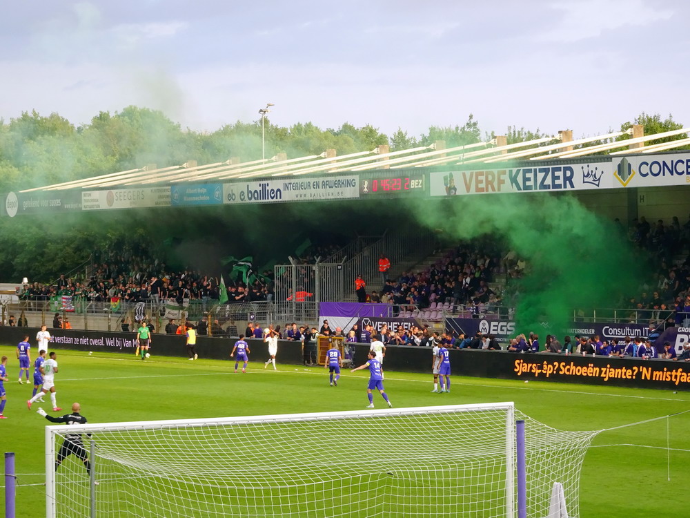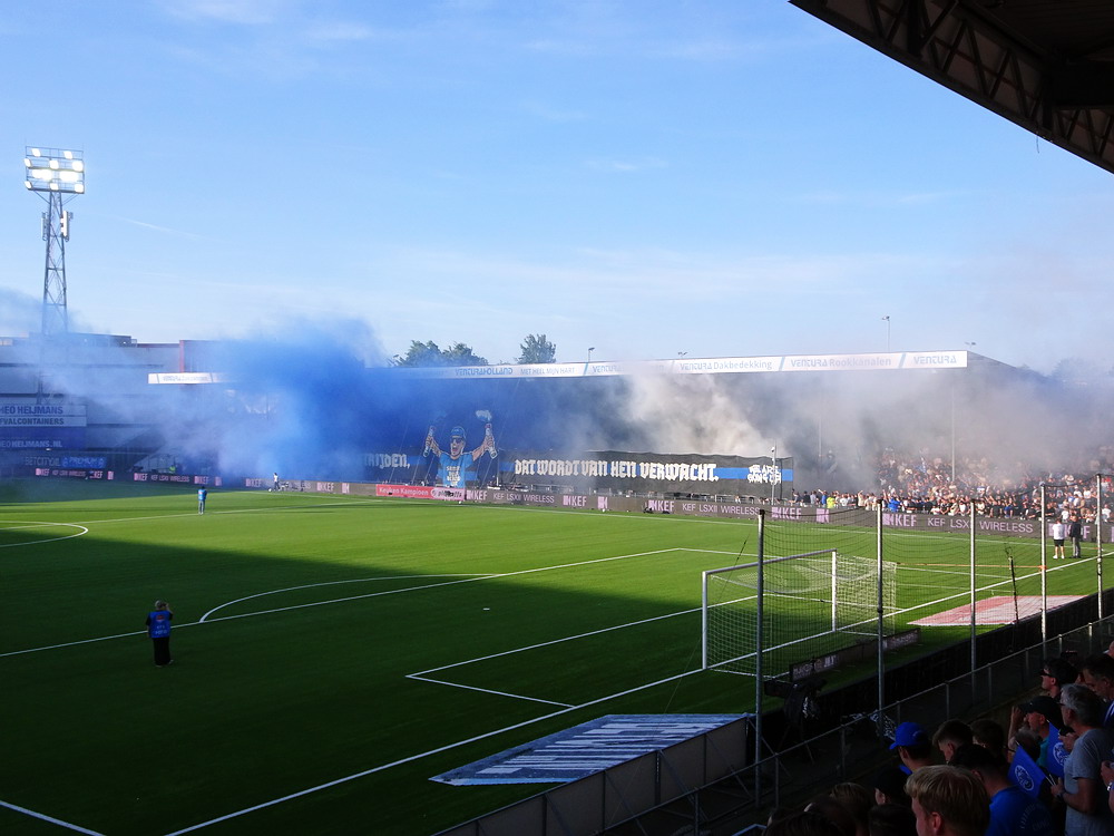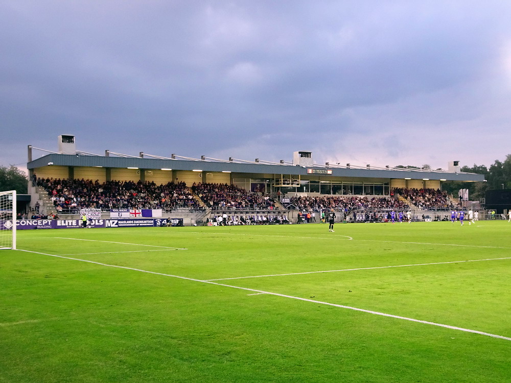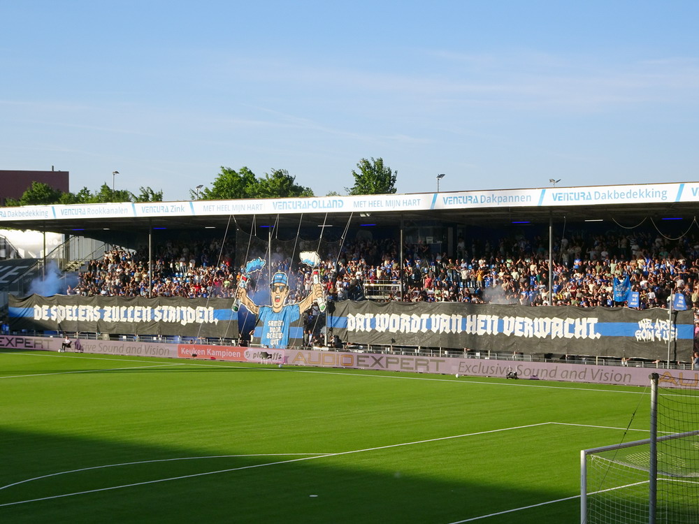 Eine wechselhafte Geschichte hat der Ballspielverein 04 aus der Landeshauptstadt Nordrhein-Westfalens. Lange Zeit spielte der Verein meist auf Landesliga-Niveau mit wenigen Ausreißern nach unten und oben. Mitte der vergangenen Dekade begaben sich die Schwarz-Roten dann in eine Abwärtsspirale die letztlich gar in der Kreisliga C endete. Seit in paar Saisons wird wieder auf B-Klassen-Ebene gekickt, bisher allerdings ohne ernsthaft ins Aufstiegsgeschehen eingreifen zu können. Überregional bekannt ist der BV 04 für die jährlich zu Ostern ausgerichtete und schon seit über 60 Jahren stattfindende ‚U19-Champions-Trophy‘, zu der namhafte Mannschaften aus Europa und auch aus der ganzen Welt anreisen. Die Sportanlage liegt eher untypisch inmitten eines gemischten Wohn- und Geschäftsquartieres und erhält durch die umliegende Bebauung auf irgendeine Art eine interessante Kulisse. Prunkstück der Anlage ist der Naturrasenplatz mit der überdachten Tribüne. Eine gute Note hat auch das durch den Pächter der Vereinsgaststätte geführte Grill-Catering verdient. Die Sucuk im Fladenbrot mit Gurken und geschmorten Zwiebeln waren hervorragend. Während der BV 04 jenseits von Gut und Böse im oberen Mittelfeld des Tableaus steht, ging es für die Gäste um nichts weniger als den Aufstieg. Mit einem passenden Ergebnis des Verfolgers hätte dieser schon heute realisiert werden können. Daraus wurde nichts, aber mit dem heutigen Kantersieg wurde das Tor zur Kreisliga A sperrangelweit aufgestoßen.