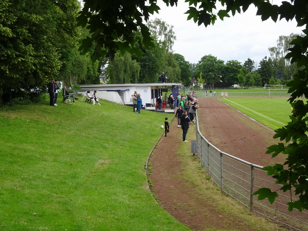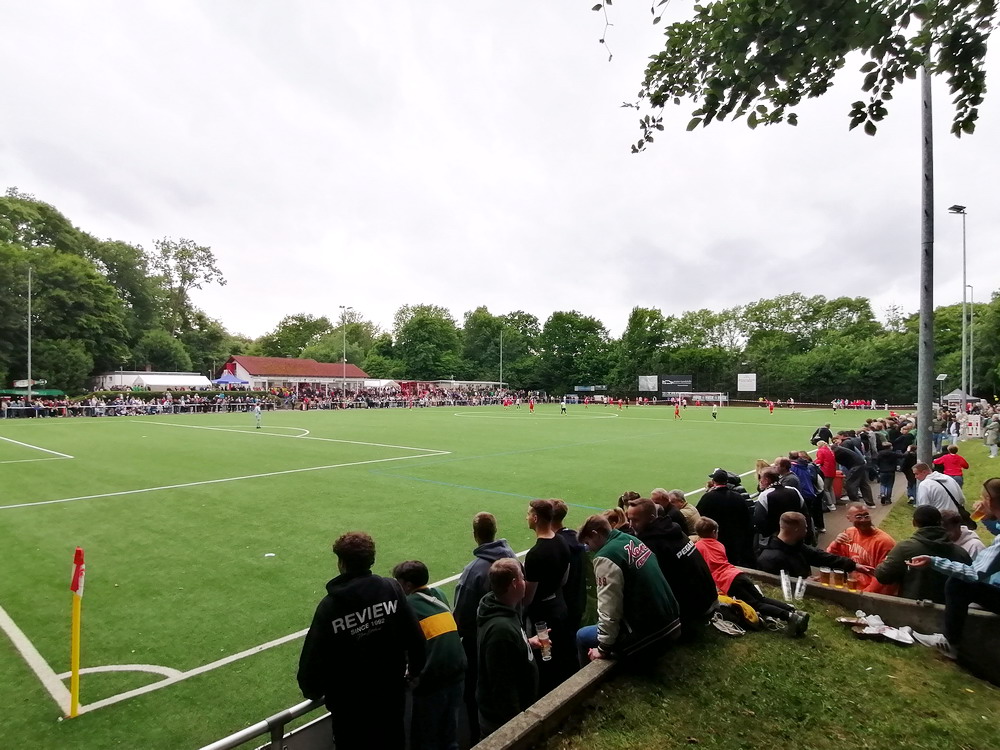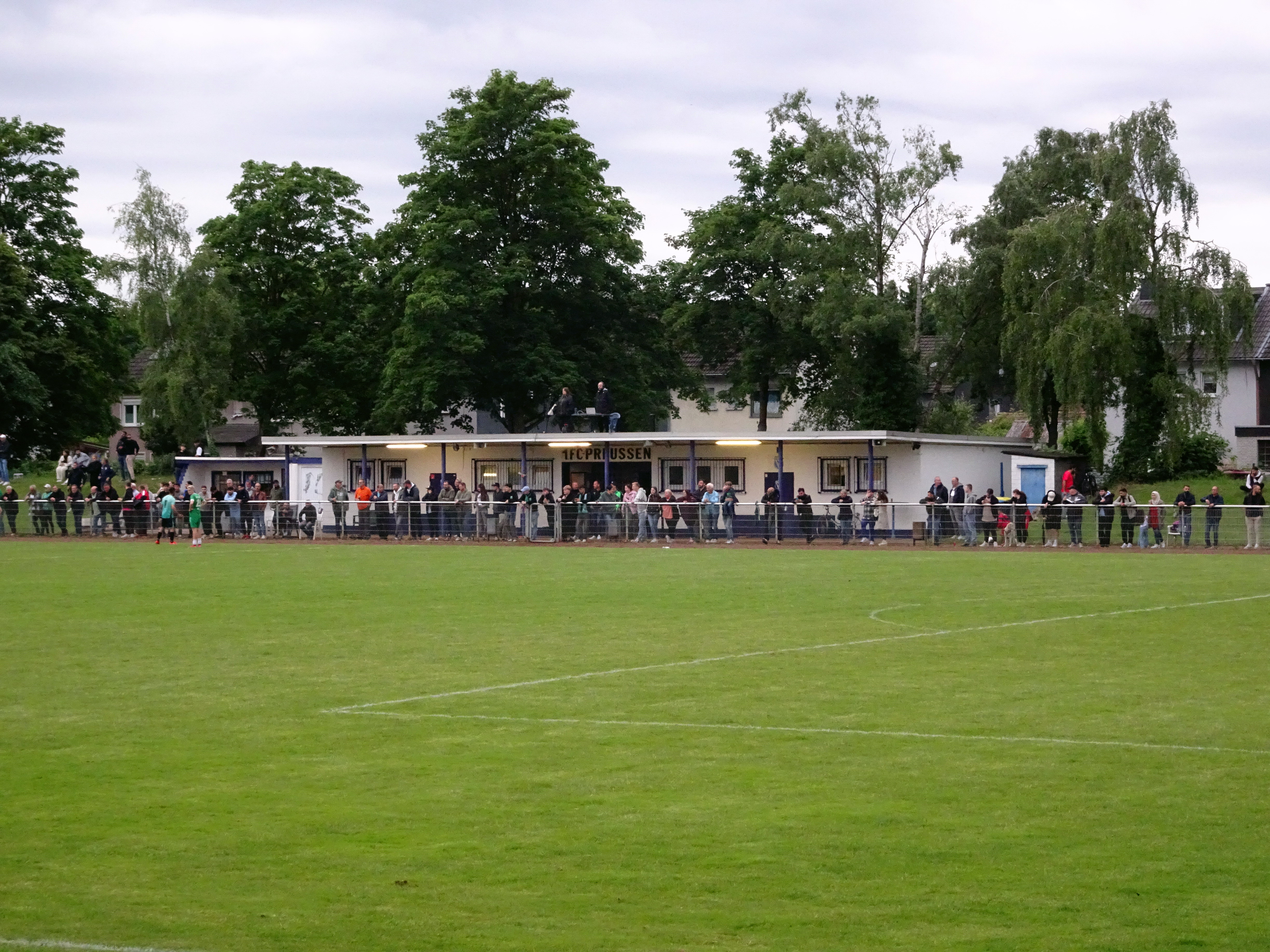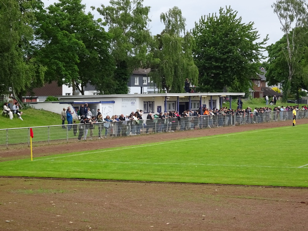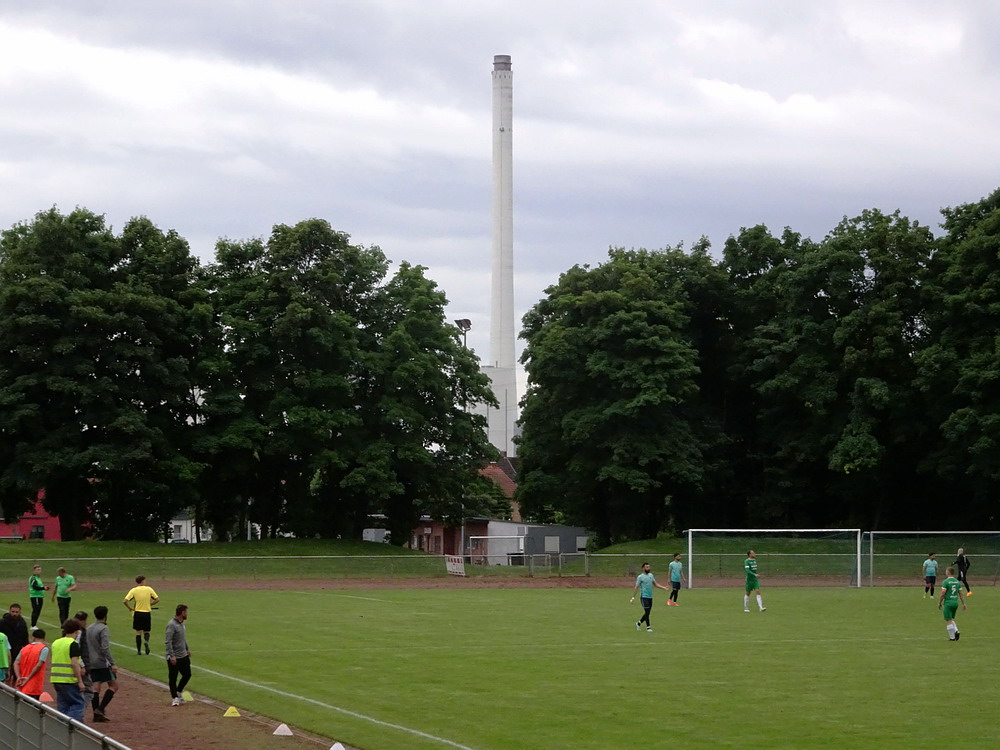 Die Wochen nach dem Abschluss der Liga-Spielrunden sind Relegations-Zeit und ich startete, nun ja … sagen wir mal ‚bodenständig‘ in diese. Im ‚Senghorst-Stadion‘, unweit der Halde ‚Hoheward‘ mit dem sogenannten ‚Horizont-Observatorium‘ liegend, duellierten sich die Zweitvertretungen von Preußen Hochlarmark und Grün-Weiß Erkenschwick, um einen späteren Aufsteiger in die Kreisliga B zu ermitteln. Dass dieses nicht hier und heute der Fall sein würde, erschloss sich mir erst am Ende der Partie als, es mit dem torlosen Remis unaufgeregt in die Kabinen ging und mich die Aktiven damit zunächst ratlos zurückließen. Gespielt wird nämlich im Liga-Modus in einer Vierer-Gruppe und wir schrieben erst Spieltag eins. Klarer Fall von schlechter Vorbereitung aber ich plädiere auf Bewährung, da ich mich erst eine Stunde vor Anstoß für diesen Spielbesuch entschied. Mit ‚besserem‘ Fußball kann man diese Spielstätte aktuell auch nicht besuchen, vielleicht ja in der kommenden Spielzeit, denn auch die Erste der Preußen spielt lediglich in der Kreisliga C und das auch noch erfolgloser. Die zweite Mannschaft ist ein kurdisch geprägtes Team, der Verein betont sein Engagement im Auftrag der Integration. Klug von einem besonnenen Schiedsrichter geleitet, verlief die Partie jederzeit in geordneten Bahnen. Die Teams begegneten sich auf Augenhöhe und zeigten ein gar nicht mal so schlechtes Spiel, welches mit einem für dieses Ligen-Niveau seltenem torlosem Remis endete.