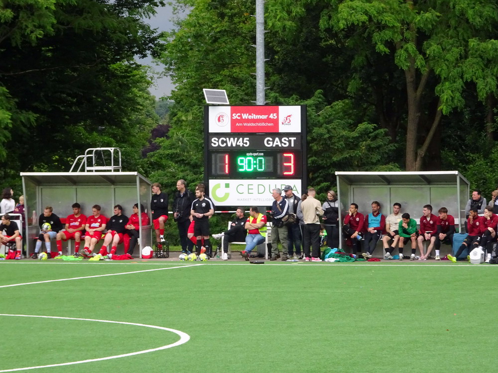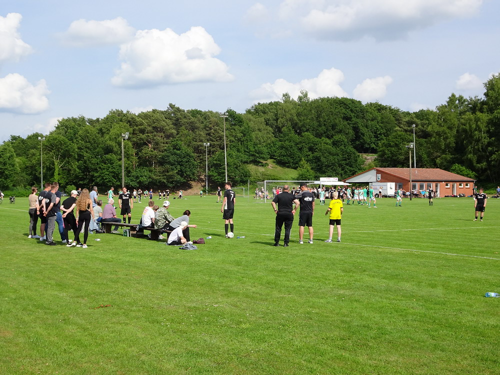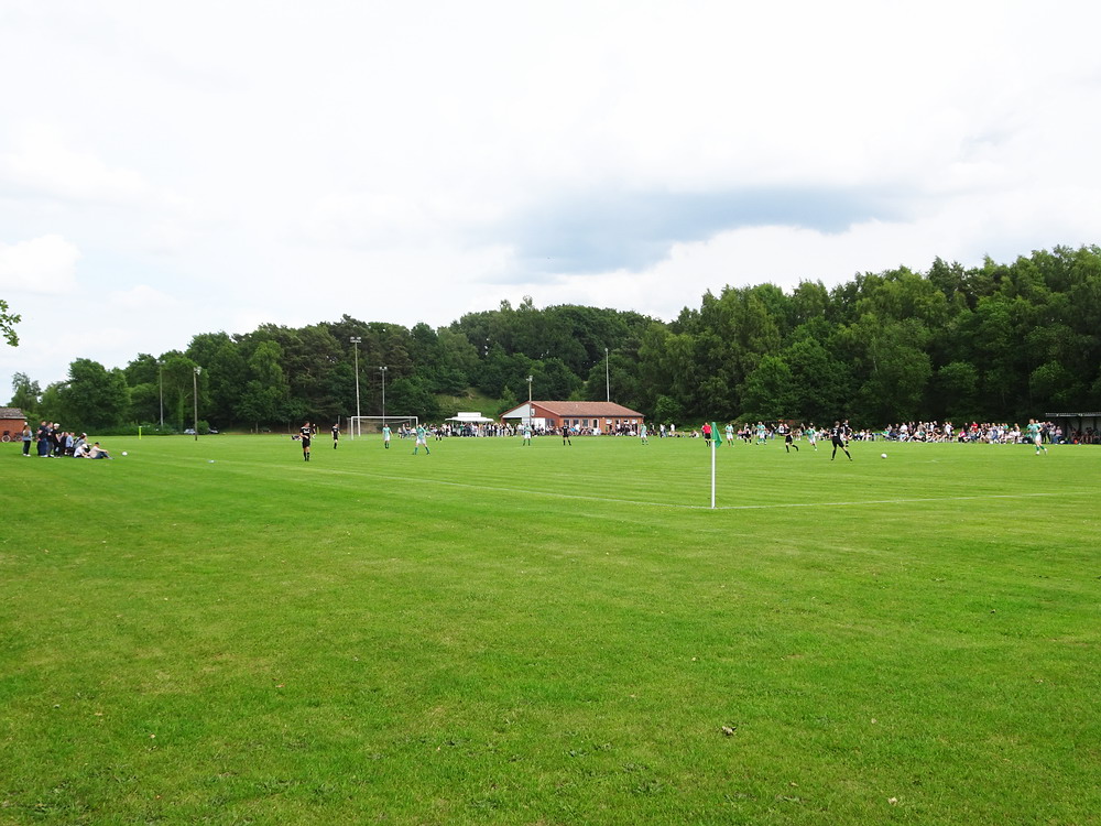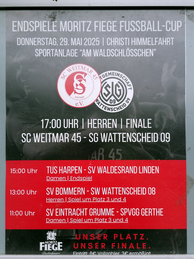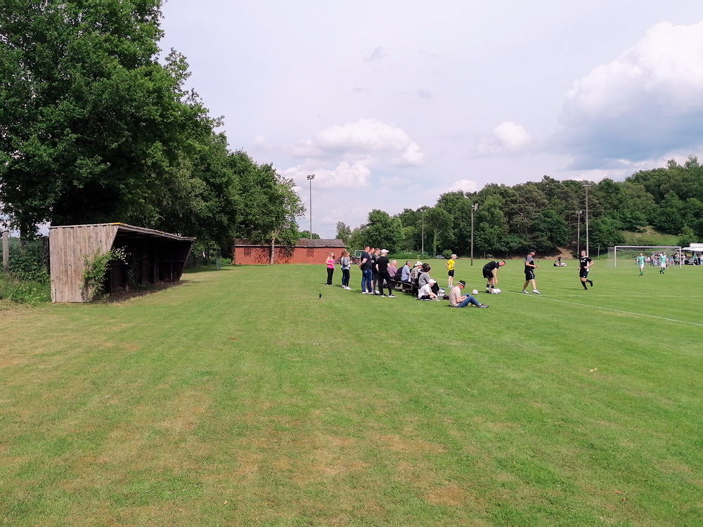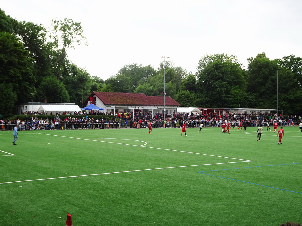 Die Wochen nach dem Abschluss der Liga-Spielrunden sind Relegations-Zeit und ich startete, nun ja … sagen wir mal ‚bodenständig‘ in diese. Im ‚Senghorst-Stadion‘, unweit der Halde ‚Hoheward‘ mit dem sogenannten ‚Horizont-Observatorium‘ liegend, duellierten sich die Zweitvertretungen von Preußen Hochlarmark und Grün-Weiß Erkenschwick, um einen späteren Aufsteiger in die Kreisliga B zu ermitteln. Dass dieses nicht hier und heute der Fall sein würde, erschloss sich mir erst am Ende der Partie als, es mit dem torlosen Remis unaufgeregt in die Kabinen ging und mich die Aktiven damit zunächst ratlos zurückließen. Gespielt wird nämlich im Liga-Modus in einer Vierer-Gruppe und wir schrieben erst Spieltag eins. Klarer Fall von schlechter Vorbereitung aber ich plädiere auf Bewährung, da ich mich erst eine Stunde vor Anstoß für diesen Spielbesuch entschied. Mit ‚besserem‘ Fußball kann man diese Spielstätte aktuell auch nicht besuchen, vielleicht ja in der kommenden Spielzeit, denn auch die Erste der Preußen spielt lediglich in der Kreisliga C und das auch noch erfolgloser. Die zweite Mannschaft ist ein kurdisch geprägtes Team, der Verein betont sein Engagement im Auftrag der Integration. Klug von einem besonnenen Schiedsrichter geleitet, verlief die Partie jederzeit in geordneten Bahnen. Die Teams begegneten sich auf Augenhöhe und zeigten ein gar nicht mal so schlechtes Spiel, welches mit einem für dieses Ligen-Niveau seltenem torlosem Remis endete.