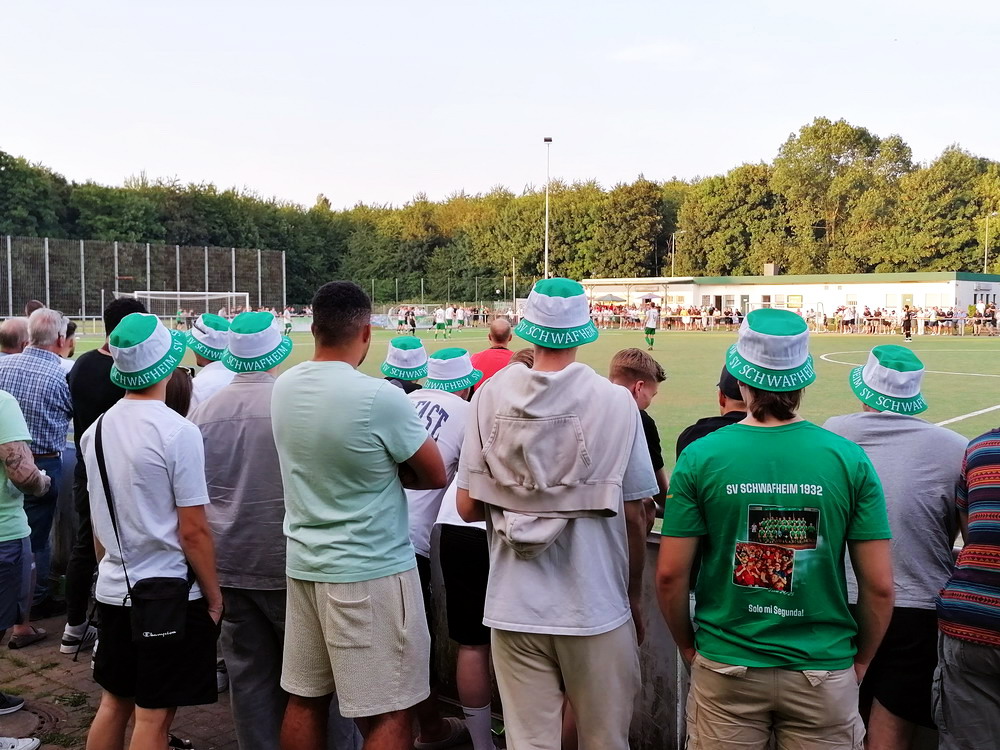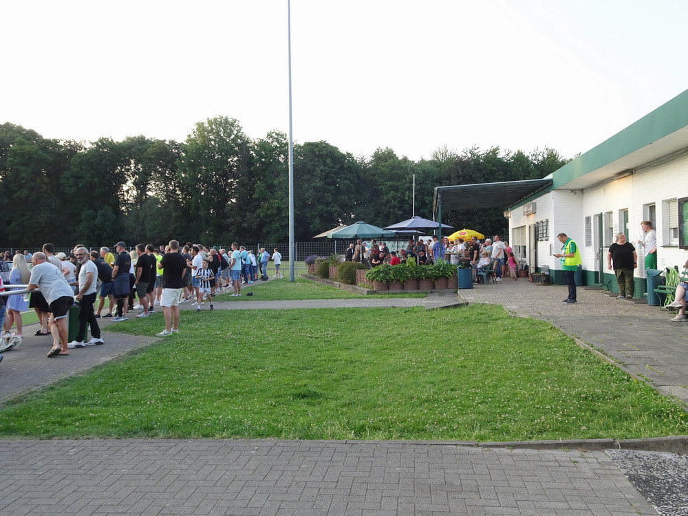 Gut 500 Zuschauer fanden sich ein, um der Veranstaltung zu frönen. Die Sportanlage hat außer ein paar Merkmalen nicht viel anzubieten. Das Spiel kann lediglich ebenerdig am Stankett stehend verfolgt werden, sieht man mal von ein paar betagten wie traurigen Stufen ab, die auf wenigen Metern Länge ihr Dasein fristen und von alten Zeiten träumen. Auf dem künstlichen Geläuf sah es lange so aus, als würden die Akteure irgendein ungeliebtes Testspiel hinter sich bringen, so lustlos wirkte das Gebolze im ersten Durchgang. Vermutlich spielte die Angst mit, den ersten Fehler zu machen, jedenfalls war es nicht allzu tragisch, dass ich am Grillstand viel zu lange auf meinen bestellten Phosphatschlauch warten musste, da auf der Plastikwiese eh nix passierte. Dafür kam dann in Hälfte zwei deutlich mehr Leben in das Geschehen und die Zweite des Grafschafter SV nahm die Zügel in die Hand. Die halbwegs logische Folge war eine Zwei-Tore-Führung nach gut 70 Minuten. Aber die Gastgeber kamen kurz darauf mit dem Anschlusstreffer ins Spiel zurück. Als in der Nachspielzeit alle auf den Abpfiff warteten, erhielt Rumeln noch einen Elfmeter. Der Schütze verwandelte nervenstark und dieser Punkt hätte für die Kreisliga A gereicht. Aber der Kick war noch nicht zu Ende und zwei Minuten später gab es für die Gäste ebenfalls einen Strafstoß. Auch dieser landete sicher im Netz und bescherte dem GSV das Happy End in buchstäblich letzter Minute.