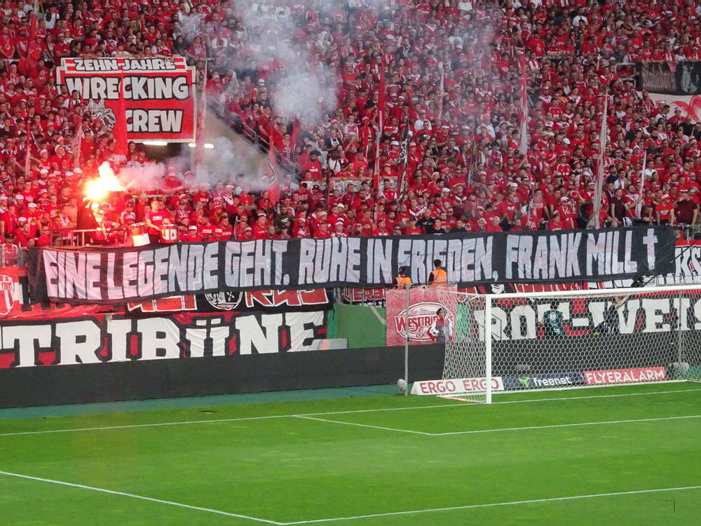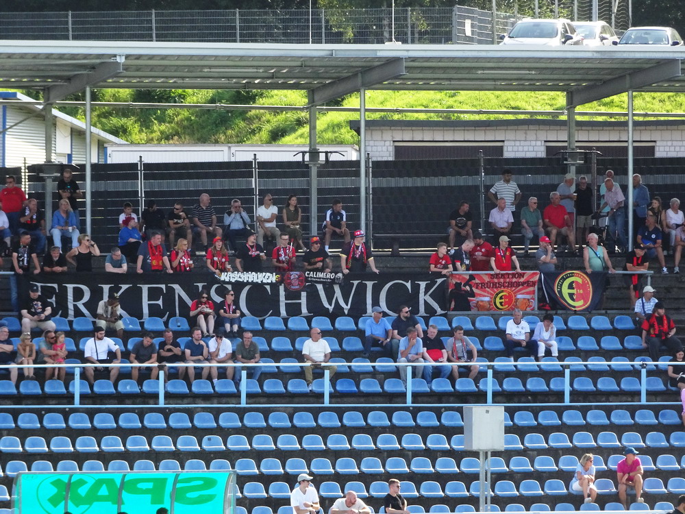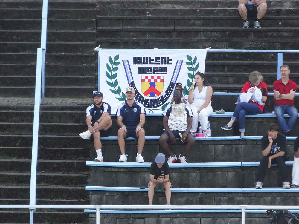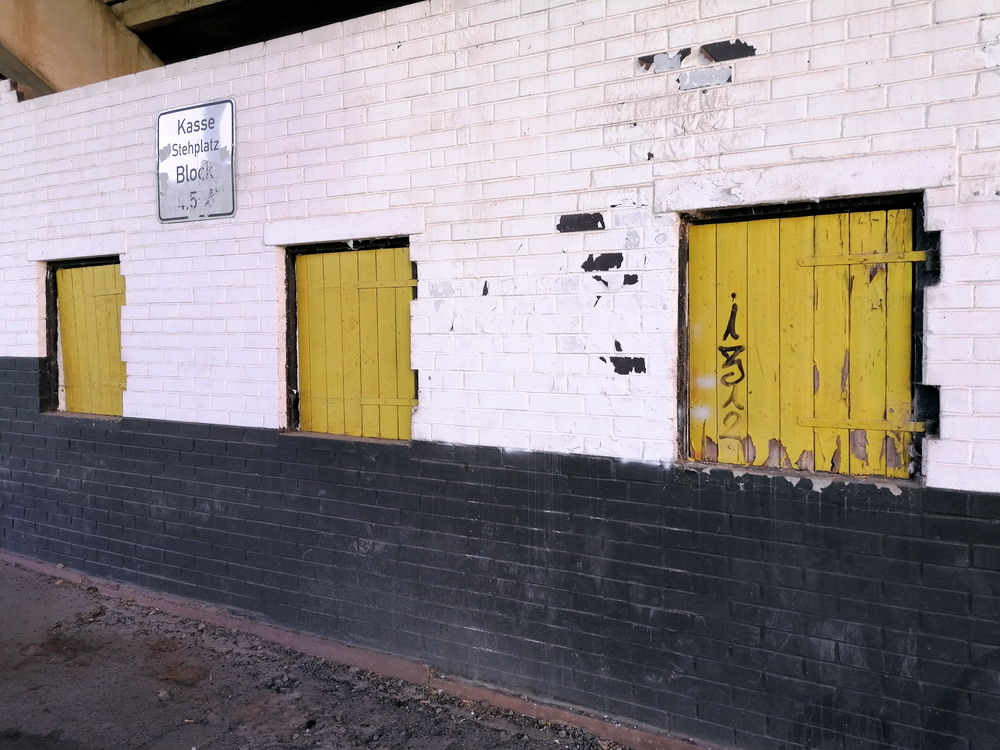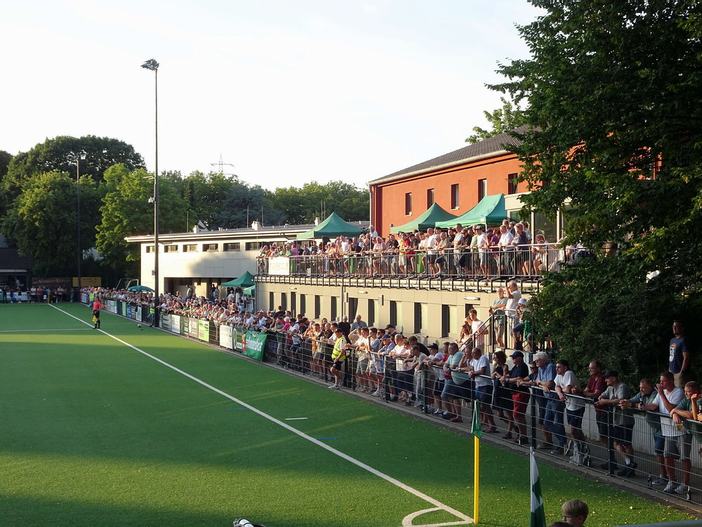 Wenig später schmiss Safi seinen Turbo an, eilte auf dem rechten Flügel allen davon und bediente klug Mizuta, der den Ball zum Ausgleich ins linke untere Eck schob. Schließlich brachte ein Handelfmeter den dritten Treffer durch Arslan. Aufgabe erledigt? Mitnichten, denn nun wurde es immer wilder. Der heute Abend ohne große Fehler trotzdem etwas indisponiert wirkende Golz verursachte nur wenig später einen Foulelfmeter, der Wehen den Anschluss brachte. Drei Minuten vor dem Ende musste sich Obuz anlasten lassen, eine Flanke nicht energisch genug verhindert zu haben. Über Umwege landete der Ball auf dem Kopf eines Wehener Spielers und die Partie war wieder auf Remis gestellt. Das Visier war aber nun bei beiden Teams offen. Mizuta hatte beinahe im Gegenzug wieder die Führung erzielt, was die Gastgeber mit etwas Glück verhinderten. Dennoch fand der Kick noch einen Sieger und zwar den richtigen! Koschinat bewies in der Schussminute ein glückliches Händchen und wechselte Owusu und Müsel ein. Der eine legte ab auf den anderen und schon lag der RWE wieder in Front. Kurz danach war die turbulente Fahrt vorüber und wichtige Punkte gingen nach Essen. Für neutrale Besucher war das sicher eine tolle Veranstaltung, ich bin aber wieder deutlich gealtert. Das Gedächtnis hatte aber wohl eh schon gelitten, denn da ich meine Digi vergessen hatte, kann ich leider nur ein paar lausige Handy-Fotos bieten.