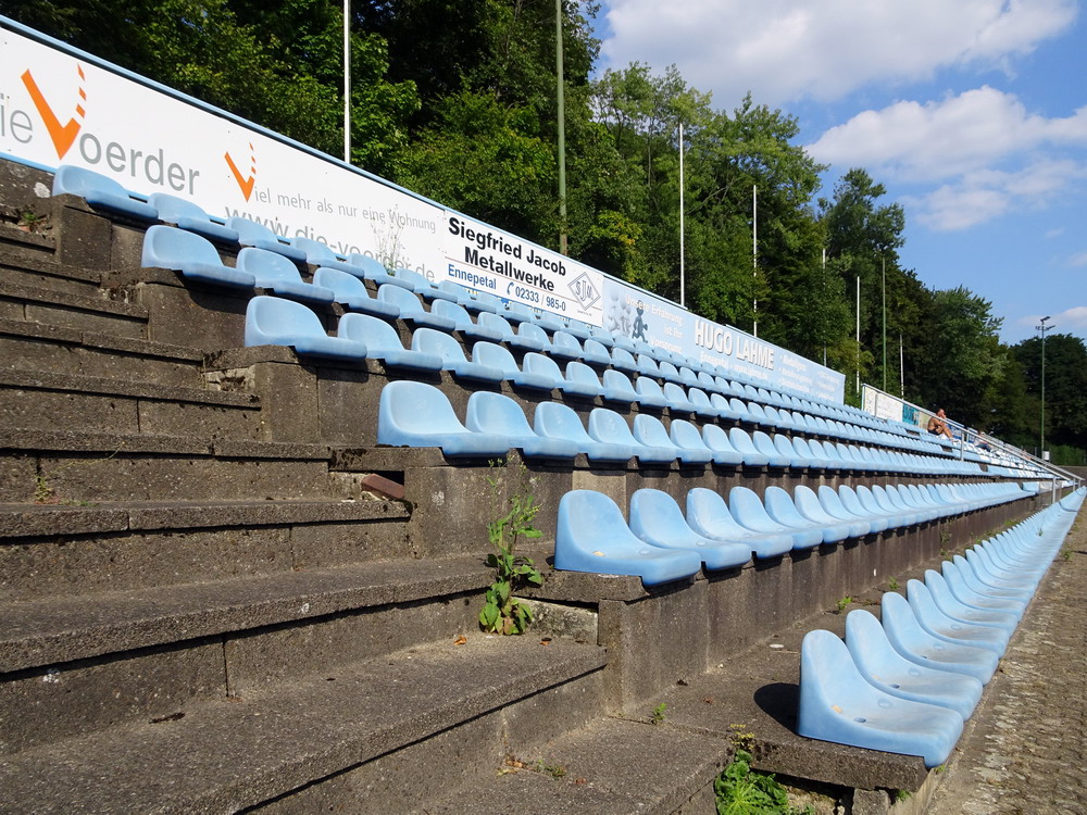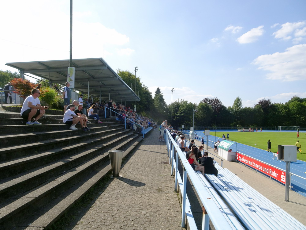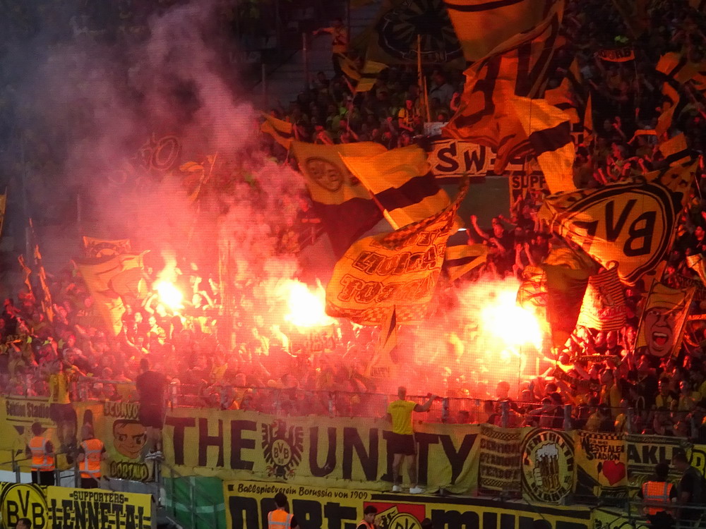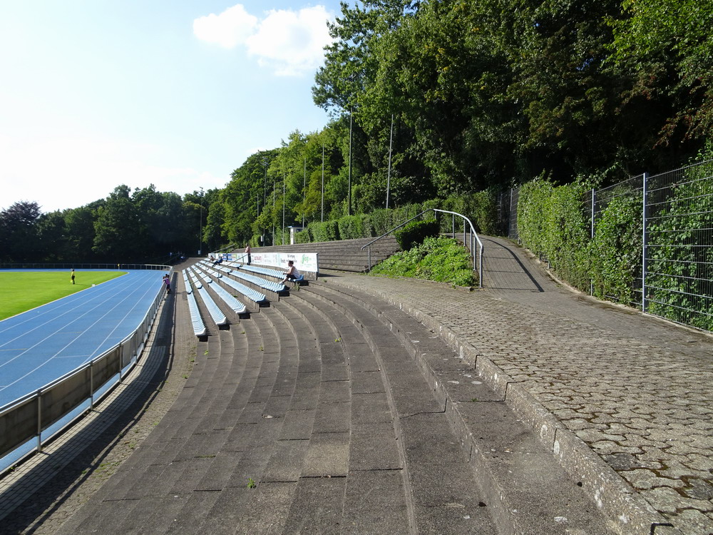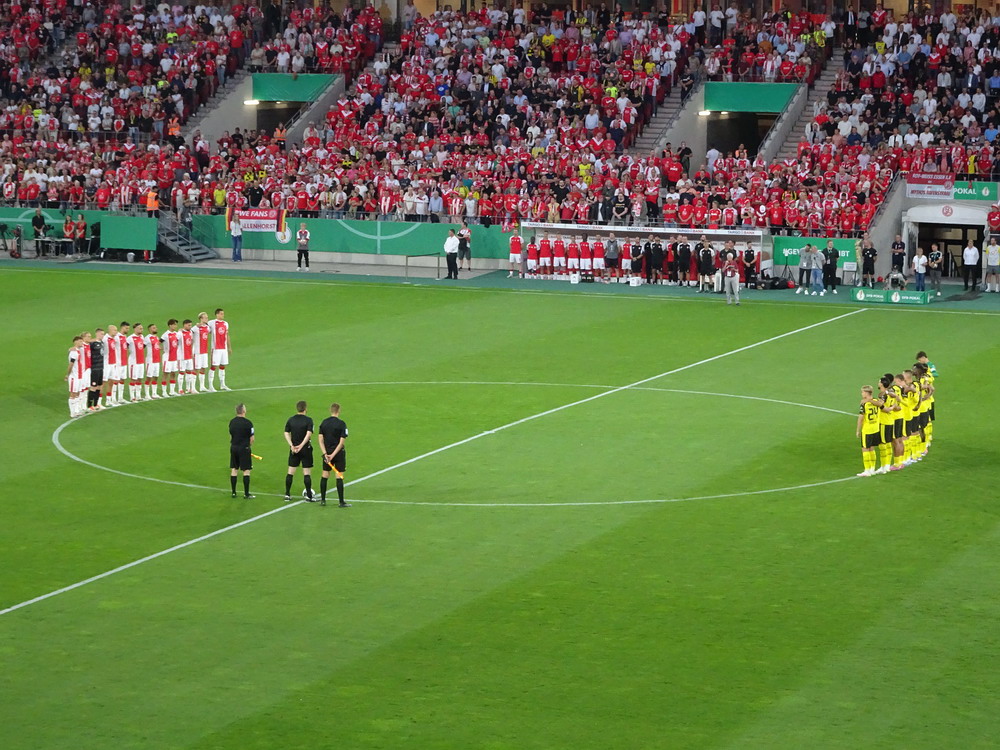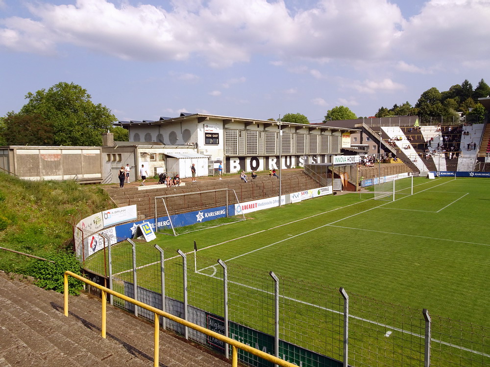 Wenig später schmiss Safi seinen Turbo an, eilte auf dem rechten Flügel allen davon und bediente klug Mizuta, der den Ball zum Ausgleich ins linke untere Eck schob. Schließlich brachte ein Handelfmeter den dritten Treffer durch Arslan. Aufgabe erledigt? Mitnichten, denn nun wurde es immer wilder. Der heute Abend ohne große Fehler trotzdem etwas indisponiert wirkende Golz verursachte nur wenig später einen Foulelfmeter, der Wehen den Anschluss brachte. Drei Minuten vor dem Ende musste sich Obuz anlasten lassen, eine Flanke nicht energisch genug verhindert zu haben. Über Umwege landete der Ball auf dem Kopf eines Wehener Spielers und die Partie war wieder auf Remis gestellt. Das Visier war aber nun bei beiden Teams offen. Mizuta hatte beinahe im Gegenzug wieder die Führung erzielt, was die Gastgeber mit etwas Glück verhinderten. Dennoch fand der Kick noch einen Sieger und zwar den richtigen! Koschinat bewies in der Schussminute ein glückliches Händchen und wechselte Owusu und Müsel ein. Der eine legte ab auf den anderen und schon lag der RWE wieder in Front. Kurz danach war die turbulente Fahrt vorüber und wichtige Punkte gingen nach Essen. Für neutrale Besucher war das sicher eine tolle Veranstaltung, ich bin aber wieder deutlich gealtert. Das Gedächtnis hatte aber wohl eh schon gelitten, denn da ich meine Digi vergessen hatte, kann ich leider nur ein paar lausige Handy-Fotos bieten.