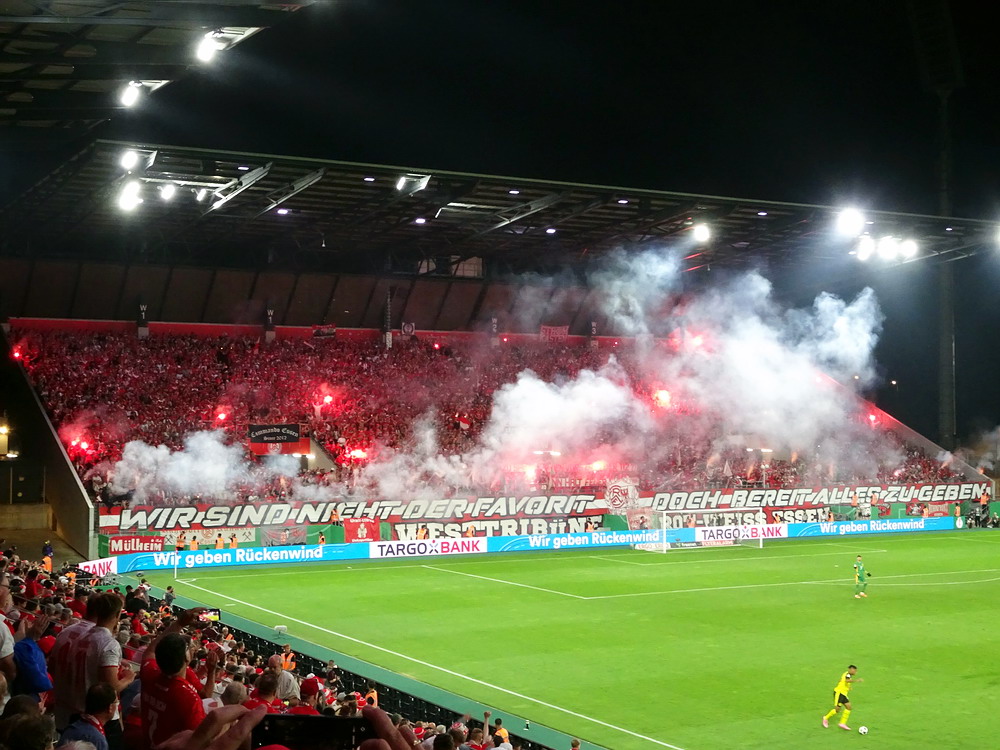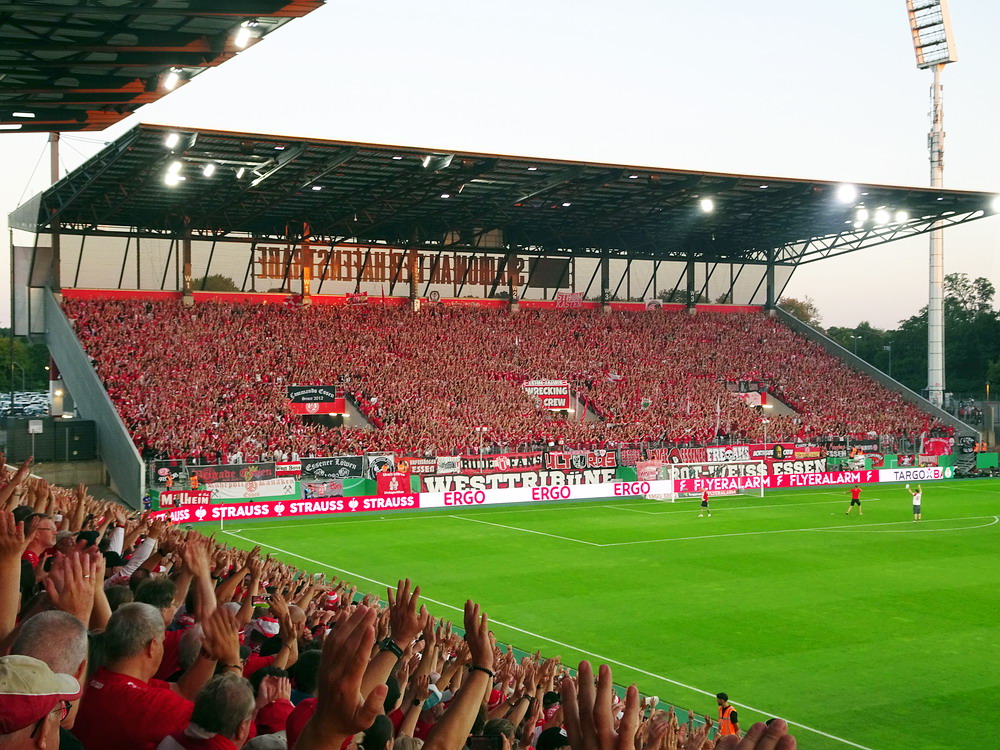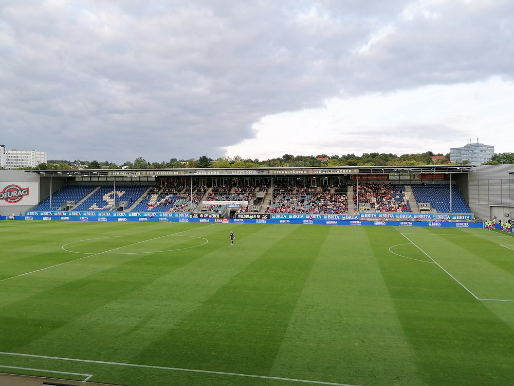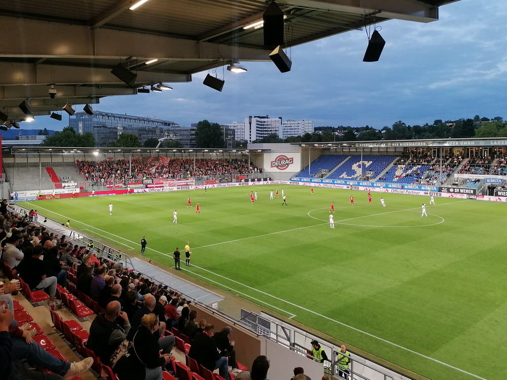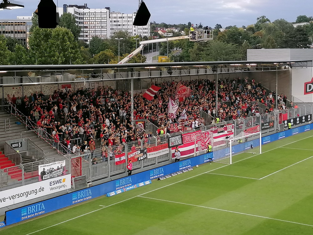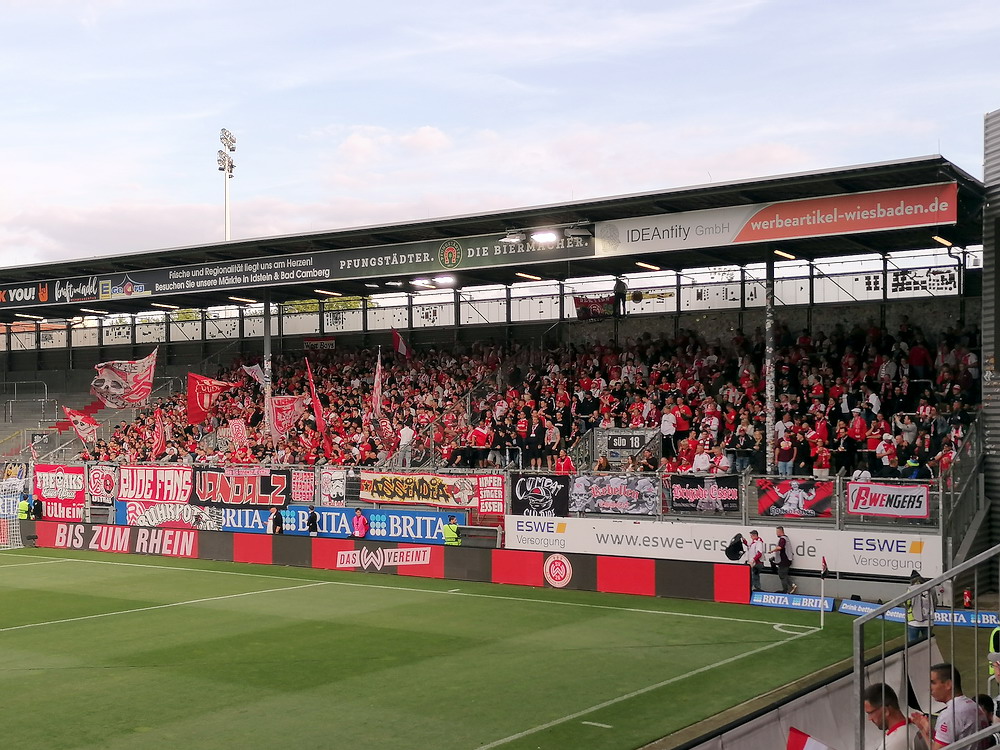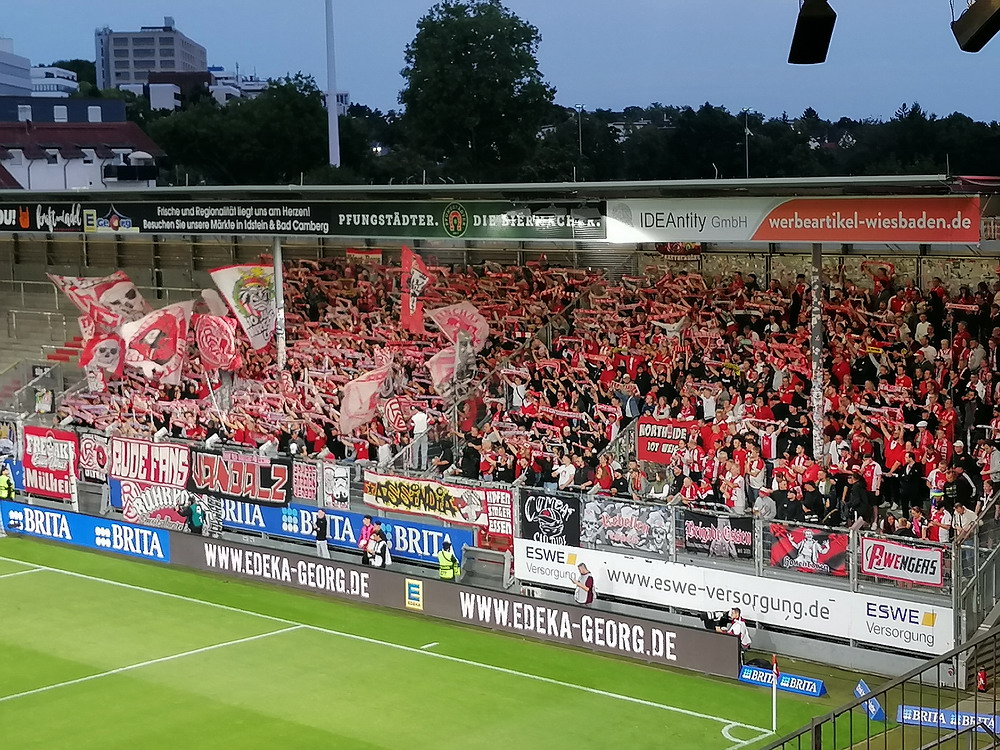 Wo fange ich an, wo höre ich auf? Der glorreiche RWE war mal wieder zu Gast bei diesem zweifelhaften Club in der hessischen Landeshauptstadt. Von Fußball-Traditionalisten wird der Verein ja ungeachtet seiner relativen Erfolge zurecht nicht ernst genommen. Vor nicht ganz 20 Jahren wurde der SV Wehen Taunusstein nach Wiesbaden verpflanzt und heißt seitdem SV Wehen Wiesbaden – keine allzu rührende Story, um der hessischen Landeshauptstadt einen Profi-Fußballverein zu verschaffen. Mangels geeigneter Spielstätte wurde auch gleich ein gesichtsloses Durchschnittsstadion zusammengeklöppelt, welches nie einen eigenen Namen trug, sondern seit jeher auf den Unternehmensnamen des Vereinspräsidenten hört. Mit der Fassade in Wellblech-Optik ist die Schachtel auch eher zweckmäßig und nur begrenzt schön anzusehen. Ändert alles nix, man muss ja hin, um dieser Zangengeburt die Punkte abzuknöpfen. Ist in der Realität natürlich weniger einfach, als es flapsig hingeschmirgelt ist, denn der SVWW gehört schon zu den stärker einzuschätzenden Teams der Liga. Dazu war der RWE so ein wenig dazu verdammt, auf jeden Fall was Zählbares mitzunehmen, die Ausgangslage also insgesamt eher unangenehm. Die Roten starteten mit viel Spielkontrolle in die Partie, waren aber im vorderen Drittel zu unpräzise und verpassten die Möglichkeit, das rot-weisse Schiff direkt auf Kurs zu bringen