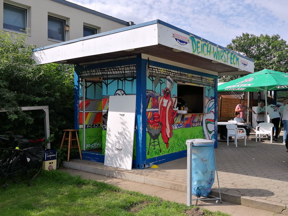 Weiter ging es in die Vierlande in den Stadtteil Curslack, was schon gar nicht mehr so richtig Hamburg ist, sondern elbaufwärts im Marschland Richtung Geesthacht liegt. Prunkstück der schönen Anlage ist eine stattliche überdachte Tribüne, die im erhöhten Bereich überdachte Sitzplätze und unterhalb eine ungedeckte Stehstufenanlage bietet. Der HEBC war zunächst das bessere Team und verpasste mehrere gute Einschussmöglichkeiten. Ziemlich aus dem Nichts gingen die Gastgeber dann nach 20 Minuten in Führung und legten kurz darauf per Elfmeter nach. Sollten die Gäste mit frischem Mut aus der Kabine gekommen sein, erhielt dieser mit dem dritten Treffer für die Hausherren einen herben Dämpfer. Auch wenn der HEBC weiter alles versuchte, war die Messe gelesen und je ein Treffer hüben wie drüben in der Schlussphase waren nur noch Kosmetik.