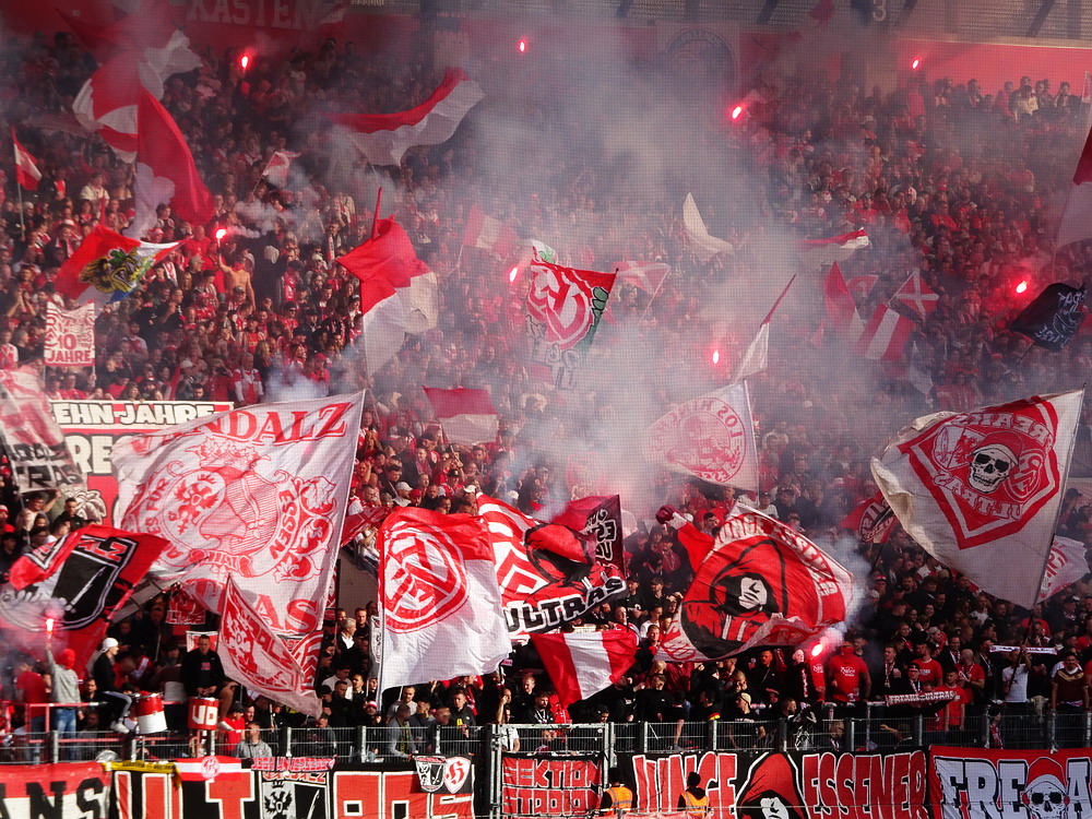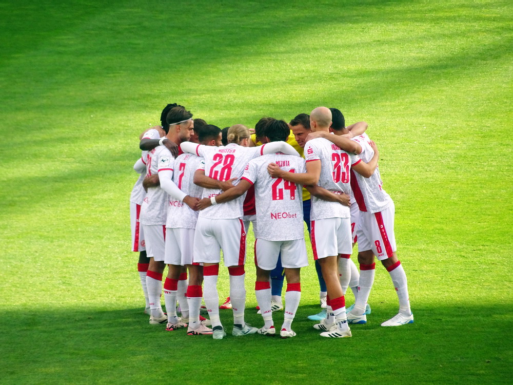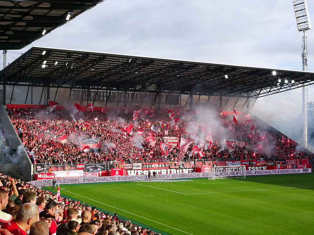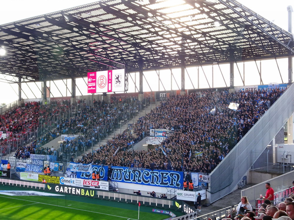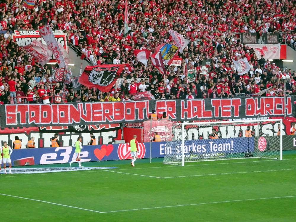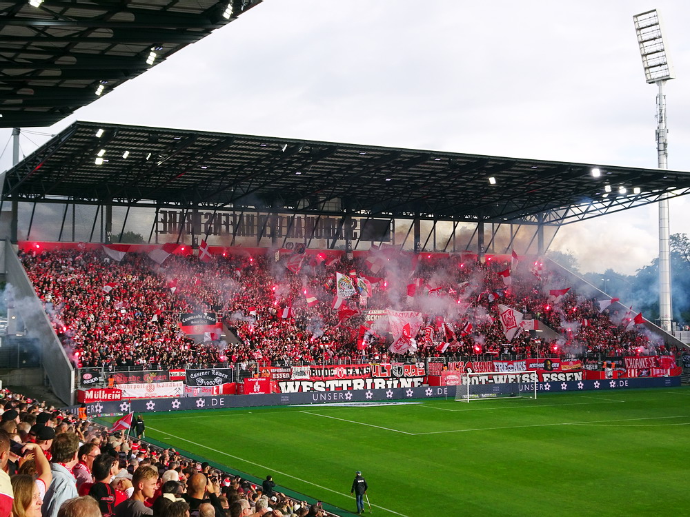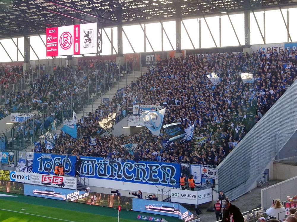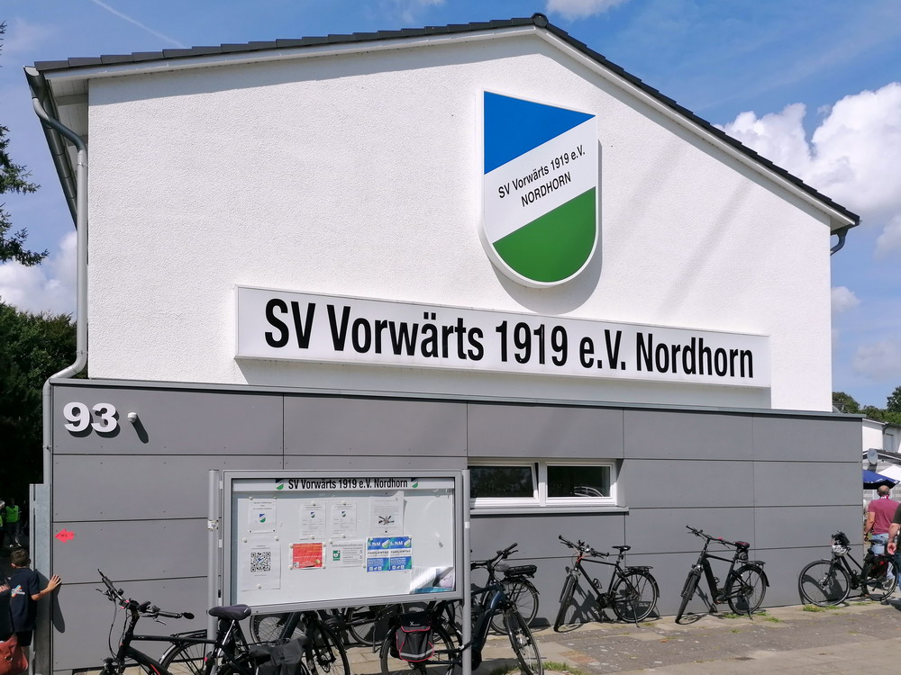 Nach dem eher unglücklichen Auftritt des glorreichen RWE biederte sich zwei Kilometer Luftlinie entfernt noch ein besonderes Stadion an. Das Rudolf-Kalweit-Stadion beherbergt die traditionsgeschwängerte Arminia, ein Verein mit bewegter Geschichte, bis auf kurze Phasen auf Augenhöhe eigentlich immer im Schatten der 96er stehend. Dennoch ist der Club in Hannover beliebt und kann sich über eine kleine Fan-Base freuen. Bemerkbar machte sich diese zwar nur selten, aber dafür hingen beinahe mehr Fahnen am Zaun hinterm Tor, als sich aktive Supporter zu erkennen gaben. Mit breitem Getränke- und Grillangebot konnte das Catering maximal überzeugen. Unbestrittener Star der Veranstaltung war aber natürlich diese wunderbare aus der Zeit gefallene Spielstätte, in der ich Mitte der 10er Jahre schon einmal ein Spiel gesehen hatte. Die überdachte Haupttribüne, in deren Bauch sich eine kultige Stadiongastronomie befindet – da werden Erinnerungen an das Georg-Melches-Stadion wach – wird flankiert von stark bewachsenen Stufen, die eigentlich nicht mehr für die Zuschauer freigegeben sind. Die Hintertortribüne und die Gegengerade mit ihren begrünten Stufen vereinigen sich im Eck und luden am heutigen Tage zum Sonnenbaden ein. Leider verpatzten die Arminen als Oberliga-Absteiger mit einer Heimniederlage den Saisonstart. Abschließend gilt es die Aufmerksamkeit noch auf zwei besondere Akteure im Vereinsgefüge zu lenken. Anstelle eines Rasenmähers weiden außerhalb der Spieltage zwei Schafe auf den Rängen, um den Graswuchs im Rahmen zu kontrollieren. Diese haben ihr Refugium hinter dem tribünenfreien Tor und von dort einen guten Blick auf das Spielgeschehen.