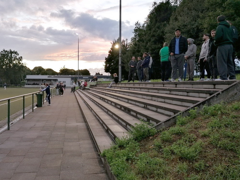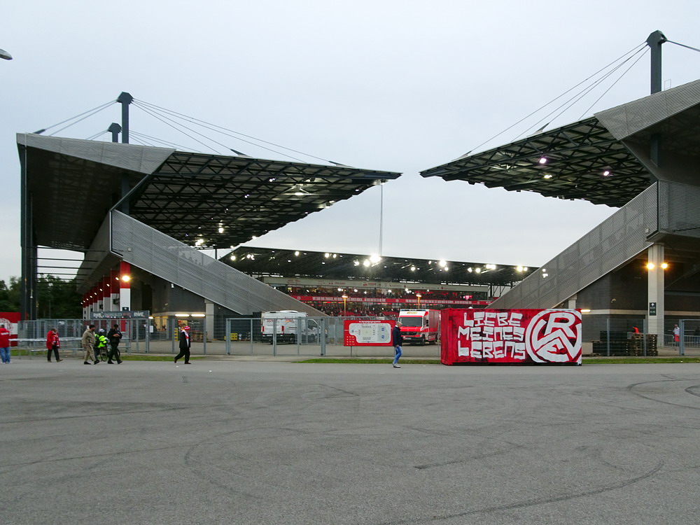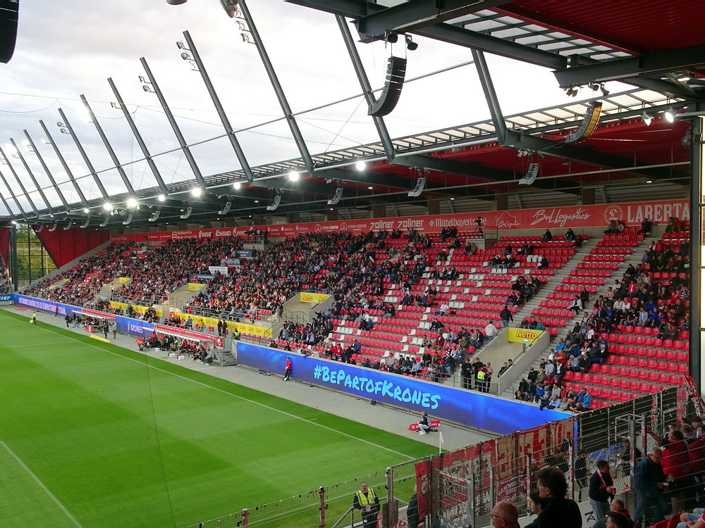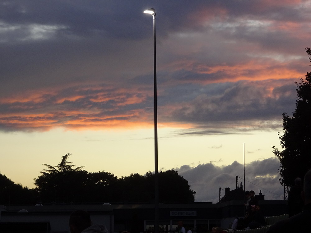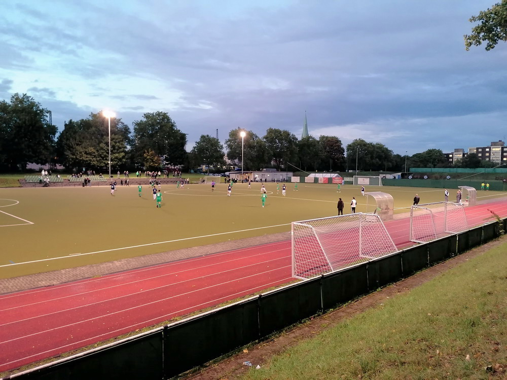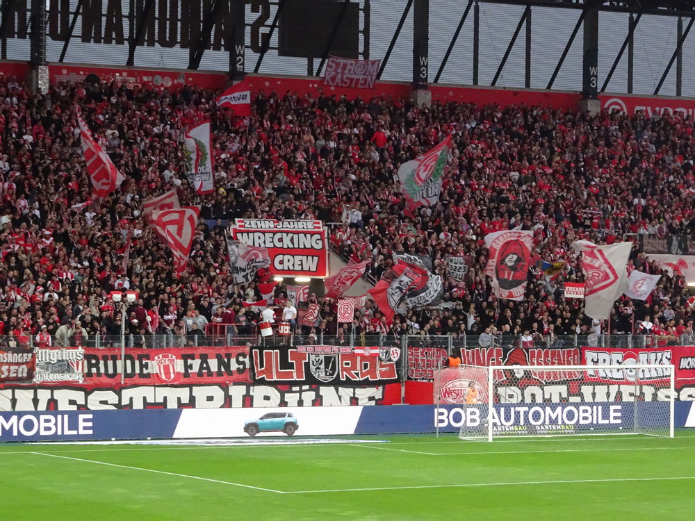 Flutlicht-Heimspiel an der Hafenstraße und zwar schon das dritte im dritten Heimspiel dieser Saison. Es gab Zeiten – da war es allerdings auch noch das Georg-Melches-Stadion – da war die Hafenstraße bei Abendspielen beinahe uneinnehmbar. Wenn die legendären riesigen Masten das gleißende Licht auf das Grün warfen, passierte irgendetwas mit Spielern und Anhängern und mit dem Messer zwischen den Zähnen wurde beinahe jeder Gegner bezwungen. Lang ist es her. Dass an der Hafenstraße heute eine Festung steht, kann man leider nicht behaupten. Das sollte sich auch gegen die Niedersachsen wieder zeigen. Mit identischer Start-Elf wie beim Spiel in Regensburg ging es los. Irgendwie hatten die Roten im ersten Durchgang auch das Zepter in der Hand, aber auf bescheidenem Niveau und die defensiv-starken Lila-Weißen ließen kaum mal etwas zu. Die Roten begünstigten dieses mit ihrer zu lahmen Spielweise ohne jeden Überraschungsmoment. Das berühmte Spielglück war heute auch nicht in Rot und Weiss gekleidet. Die zweiten Bälle landeten einfach vermehrt beim Gegner als in den eigenen Reihen. Die Standards, die es auf beiden Seiten einem recht zerfahrenen Spiel genügend gab, waren alle komplett ungefährlich. Je eineinhalb brauchbare Torchancen hüben wie drüben, mehr war in der ersten Hälfte nicht.