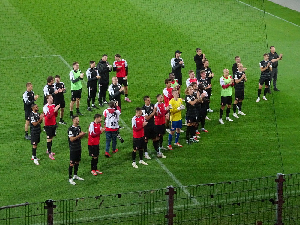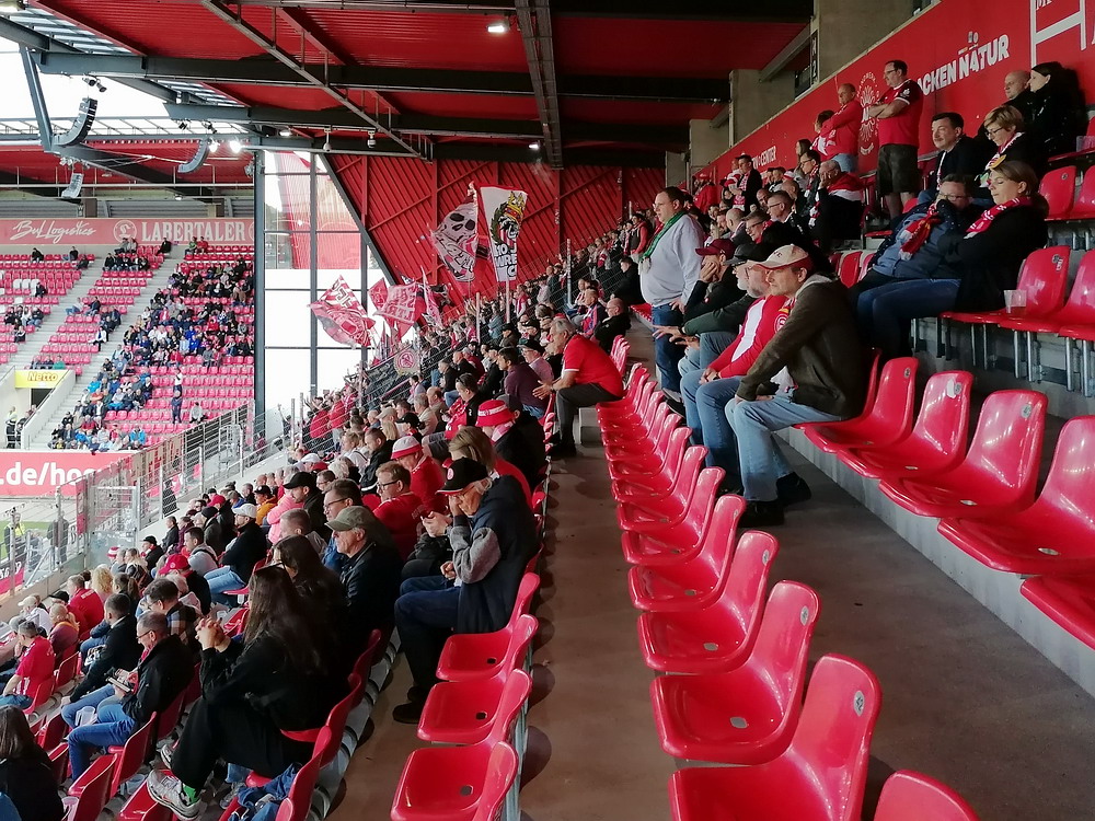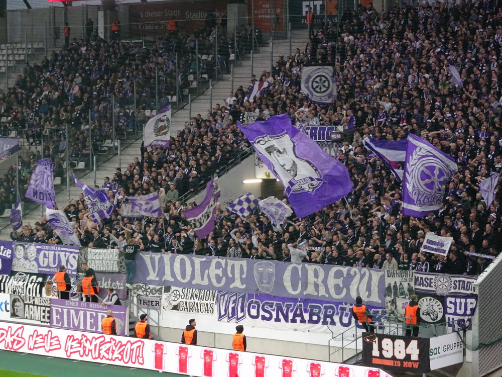 Die leise Hoffnung auf eine Schlussoffensive machte sich breit, es war aber schnell klar, dass diese sich nicht erfüllen würde. Die aus einer Fünfer-Kette agierenden Gäste machten hinten dicht. Vor allem das rot-weisse Passspiel war heute unter aller Kanone, ohne jede Präzision und ohne jede Kraft. Da fehlte komplett das Zeichen zum Aufbruch. Dass der zehn Minuten vor dem Ende eingewechselte Owusu sich eigentlich als erster einen harten Flachpass diagonal durch das Mittelfeld zutraute, sagt eigentlich alles aus. In den letzten Minuten übernahmen dann die Osnabrücker das Kommando und versuchten zart noch auf den Siegtreffer zu gehen. Das aber auch völlig ungefährlich und ohne Konzept und dennoch verharrten die Roten wie ein Kaninchen vor der Schlange. Mehr noch, Panik machte sich breit und es wurden Bälle nur noch planlos aus dem Sechzehner gelöscht, völlig unverständlich. Zudem war es in der Schlussphase im Stadion mucksmäuschenstill, da beide Kurven wegen eines medizinischen Notfalls aus Respekt den Support einstellten. Man fühlte sich an Corona-Zeiten erinnert als nur wenige hundert Leute ins Stadion durften. Der VfL-Anhang war bis dahin lautstark unterwegs, während die ‚Westtribüne‘ nicht so richtig in Schwung geraten war. Aus dem nichts bekam Müsel in der letzten Minute der Nachspielzeit noch die Kopfball-Chance zum unverdienten Sieg, aber die Murmel lief am langen Pfosten vorbei und aus war es. Das war mal so ziemlich gar nix und sicherlich das schlechteste Spiel, seit Koschinat an der Linie steht. Auswärts ungeschlagen und daheim sieglos. Da offenbart sich deutlich wo angesetzt werden muss. Next Level Hansa Rostock zu Hause – mal schauen ob dann der Knoten platzt.
