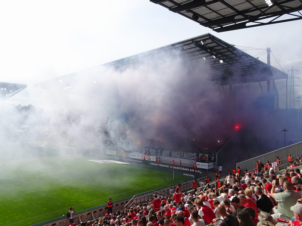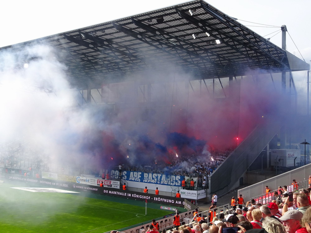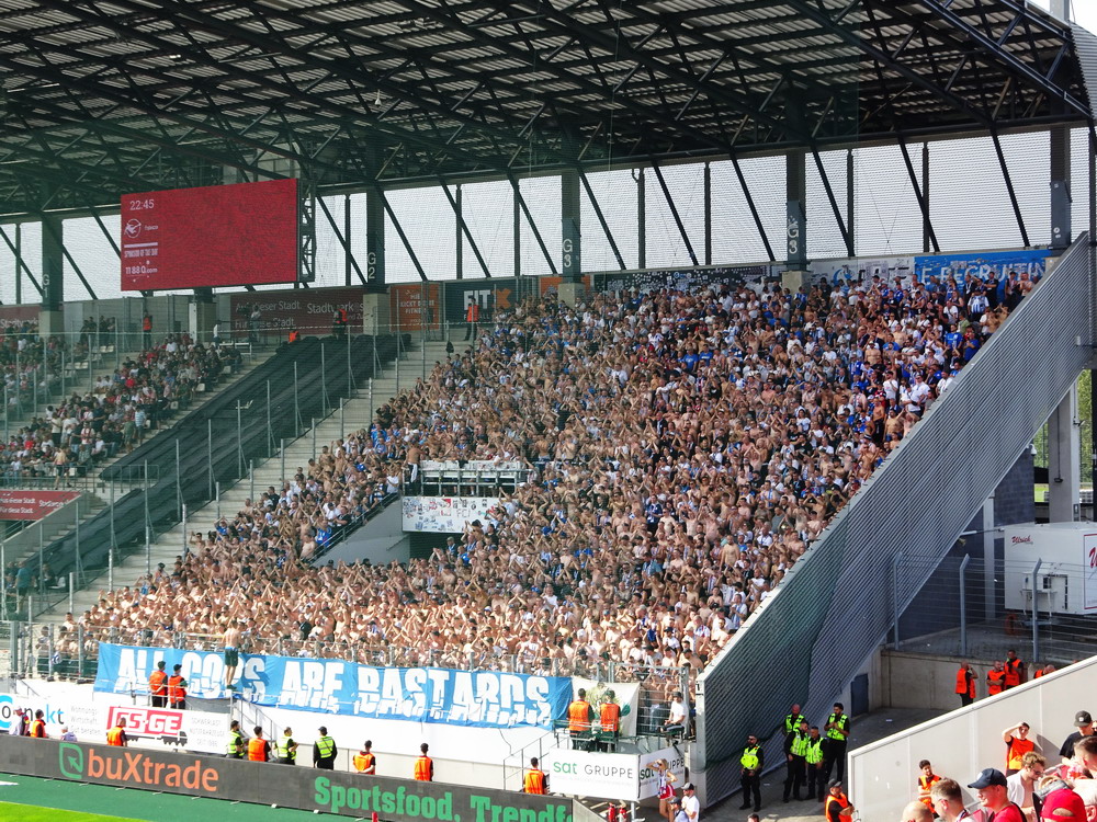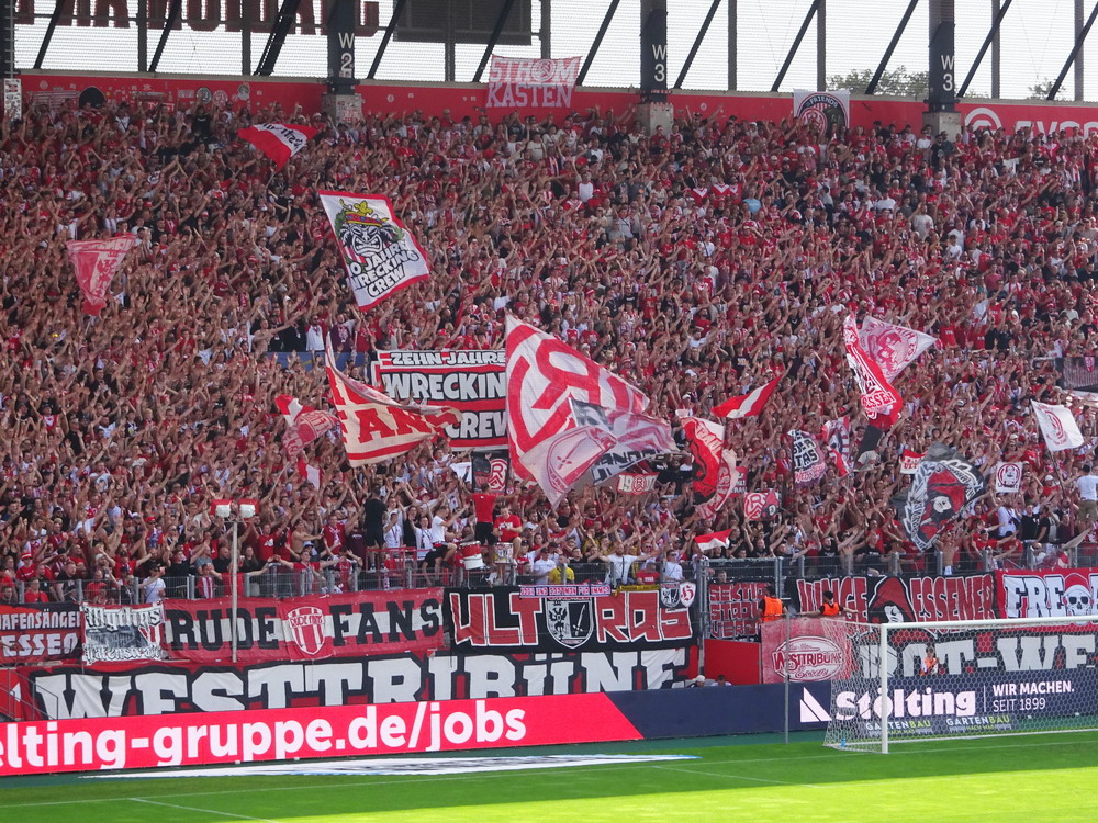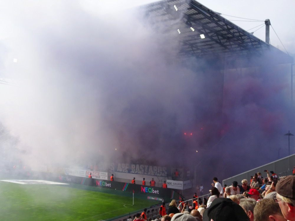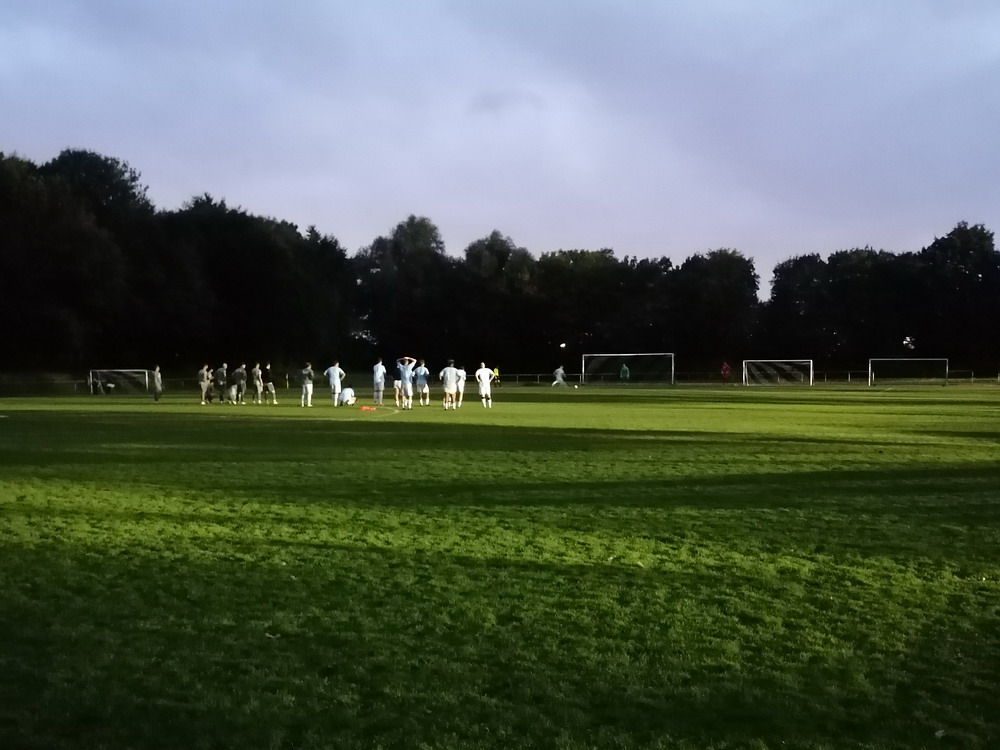 A-Ligist gegen Bezirksligist hieß es in diesem Recklinghäuser Kreispokal-Derby. Der FC 96 ist der Nachfolgeverein des ehemaligen Aushängeschildes der Stadt, dem 1.FC Recklinghausen, der es für einige Jahre in die damals drittklassige Oberliga geschafft hatte. Sowohl der 1.FC als auch der FC 96 blicken auf eine bewegte Vereinsgeschichte. Auch der noch recht junge FC 96 hat schon eine Insolvenz hinter sich wie der Vorgänger, der daran erstickte und aufgelöst wurde. Eine für ein Kreispokalspiel unter der Woche beachtliche Zuschauerzahl fand sich im ‚August-Bönte-Stadion‘ ein. Das Spiel sollte eigentlich bereits in der Vorwoche stattfinden, aufgrund des schlechten Wetters mit bescheidenen Lichtverhältnissen entschied man sich für eine Verlegung, da unbedingt auf Rasen gespielt werden sollte, an diesem aber keine Lichtmasten installiert sind. Dass es auch heute eng damit werden würde, die Partie bei guten Sichtverhältnissen zu beenden, war absehbar. Es kam wie es kommen musste. Die Gastgeber schlugen sich akustisch unterstützt von einem halbstarken Trio tapfer, ein Klassenerhalt war selten erkennbar und nach mehreren vergebenen Konterchancen, trafen die Schwarz-Weißen zehn Minuten vor Schluss zur Führung. Der Ausgleich in der Nachspielzeit bei bereits stark eingeschränktem Durchblick bedeutete eine Zugabe. Im westfälischen Verband gibt es in den Pokalwettbewerben keine Verlängerung mehr, es geht direkt in den Penalty Shoot-out. Um die Lichtverhältnisse zu verbessern, wurde die LED-Flutlichtanlage des Nebenplatzes eingeschaltet. Dumm nur, dass dichte Baumkronen dem Lichtschein den Weg versperrten, so dass der Rasenplatz nur in Ausschnitten erhellt wurde. Ob das der Grund war, dass zwei Schützen der Gastgeber versagten, lässt sich nicht belegen. Während die weiter entfernt stehenden Zuschauer noch rätselten, ob der eine oder andere Elfmeter nun sein Ziel fand oder nicht, zog der Favorit im Halbdunkel von Röllinghausen noch glücklich in die nächste Runde ein.