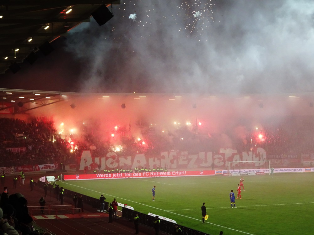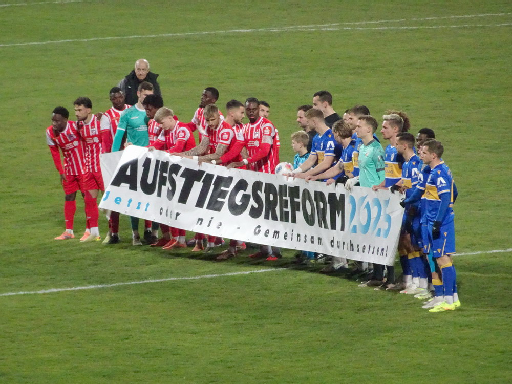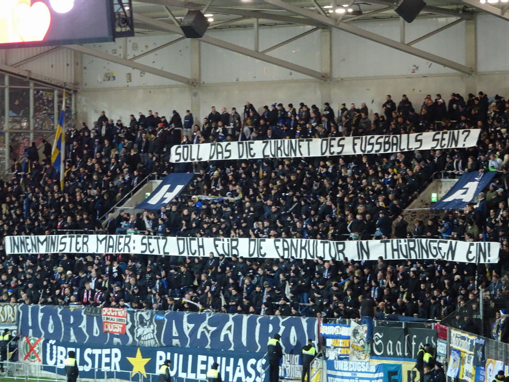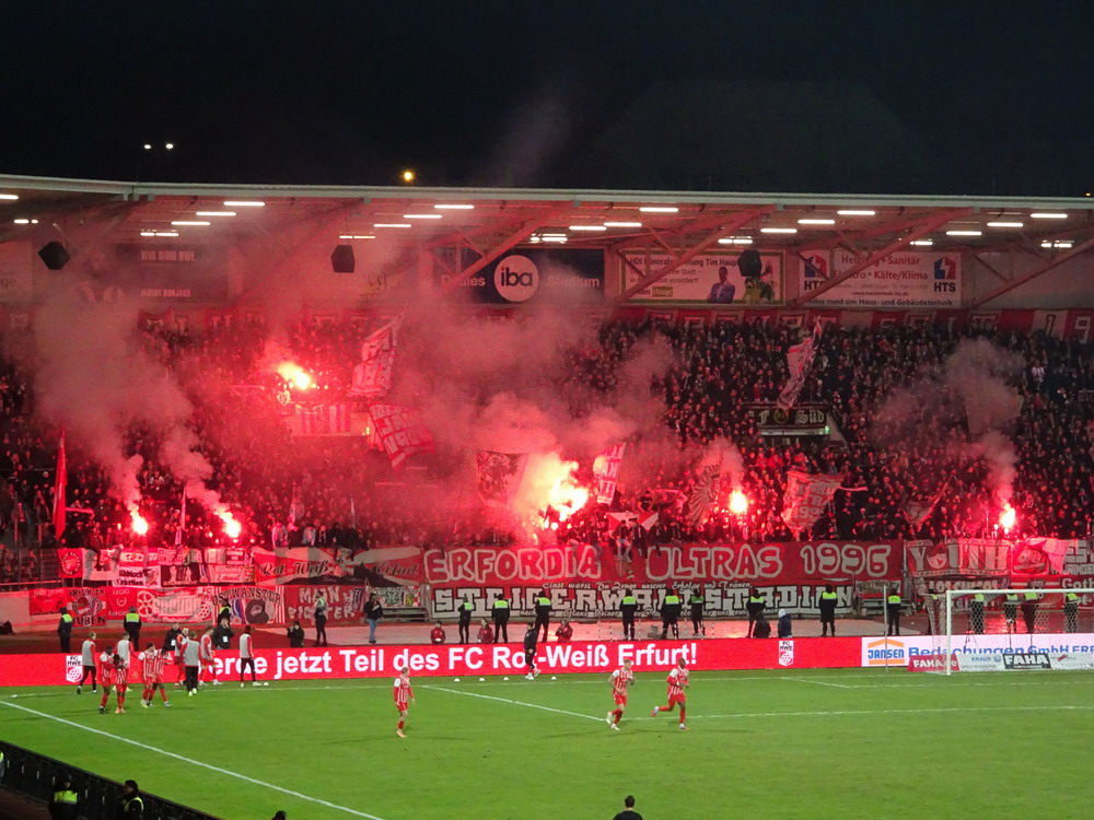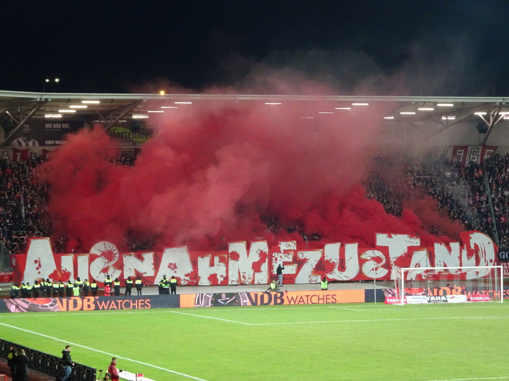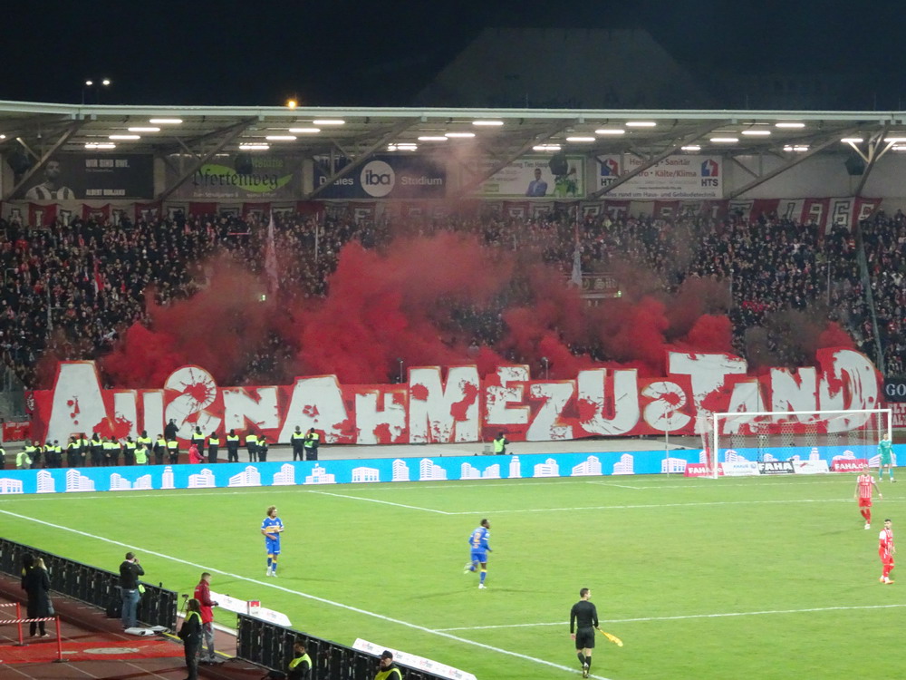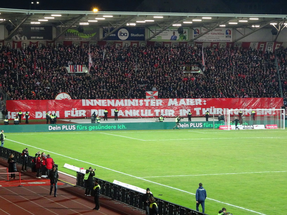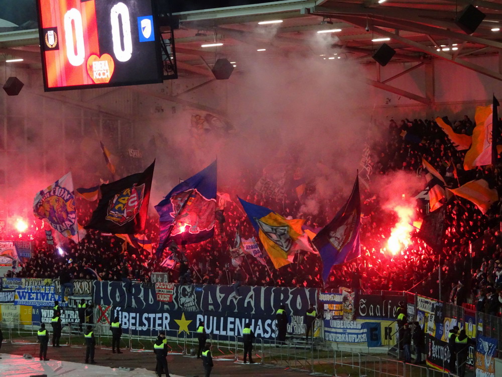 Aus Dunajska Streda waren knapp 50 Leute angereist, von denen etwa die Hälfte um Stimmung bemüht war. Der Großteil der Einwohner von Dunajska Streda ist ungarischer Abstammung, woraus diese auch beim Fußball keinen Hehl machen und sich damit vom Rest der Liga absondern. Offiziell heißt der Verein Dunajskostredský Atletický Club, während die Anhänger des Clubs lieber das ungarische Dunaszerdahelyi Atlétikai Club verwenden. Auf Seiten der Gastgeber sammelten sich zwei Hände voll Leute hinter dem Tor, prügelten auf zwei Trommeln ein und gaben ab und an mal was Eintöniges von sich. Das Stadion zeigte ursprünglich das typische Gesicht der Spielstätten sozialistisch geprägter Staaten mit Laufbahn, einer gedeckten Haupttribüne und Stehrängen in den übrigen Bereichen. 2017 wurde mit dem Umbau zu einem reinen Fußballstadion begonnen, lediglich die Haupttribüne blieb vom alten Stadion übrig. Das Ergebnis ist ein recht schicker Komplex, der mehr Besucher verdient hätte. Da die alte Tribüne aktuell nicht für die Nutzung freigegeben ist, respektive nicht benötigt wird, wurde das Bauwerk leider mit großen Werbebannern komplett entstellt, so dass man es kaum noch als Tribüne identifizieren kann.