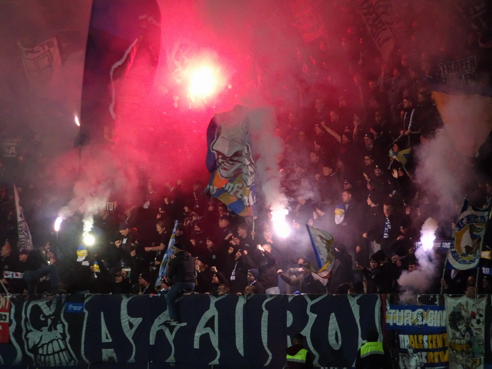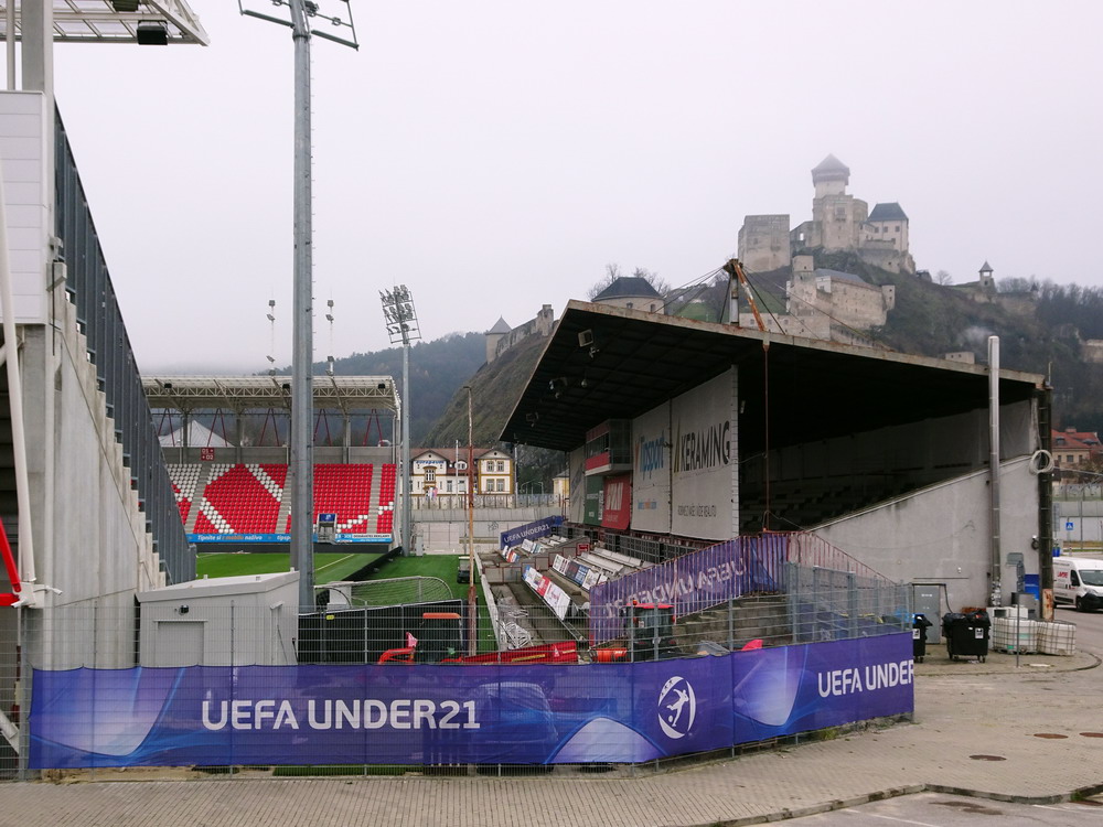So richtig erholsam war die Nacht nicht. Um halb sieben schellte der Wecker, eine Stunde danach saß ich im Regionalexpress nach Nürnberg. Eine Leberkässemmel und einen Cappuccino später bestieg ich den ICE 21 nach Wien, Ankunft dort mit 25 Minuten Verspätung. Damit hätte ich den Anschluss nach Bratislava verpasst, wenn dieser nicht auch verspätet gewesen wäre. Die Abfahrt dieses Zuges wurde dann aber im Fünf-Minuten-Takt immer weiter verschoben, bis es schließlich mit 47 Minuten Verspätung losging. Am Startbahnhof dieser Linie wohlbemerkt. Läuft also auch nicht optimal bei der ÖBB, da hätte man fast schon die nächste Beule der stündlichen Verbindung nehmen können. Um diese Zeitspanne verschob sich nun auch die Weiterfahrt von Bratislava nach Trencin, das Tagesprojekt war aber nicht gefährdet, da von vornherein genügend Puffer berücksichtigt worden war. Leider blieb dann nur nicht mehr viel Zeit vor dem Spiel, so dass ich lediglich die Klamotten in die Unterkunft bringen konnte. Ich hatte hin und her überlegt, was ich am Samstag veranstalte. Viele brauchbare Optionen gab es nicht, so dass ich mich irgendwann für den Trip nach Trenčín entschied. Die Spiele der höchsten slowakischen Liga sind oft nicht gut besucht, Zuschauerzahlen um und unter 1.000 Köpfe sind keine Seltenheit. Die Asociacia Sportov Trencin weiß dieses nur zu genau, spielt sie doch selbst meist vor kleiner Kulisse, so auch erwartungsgemäß heute.