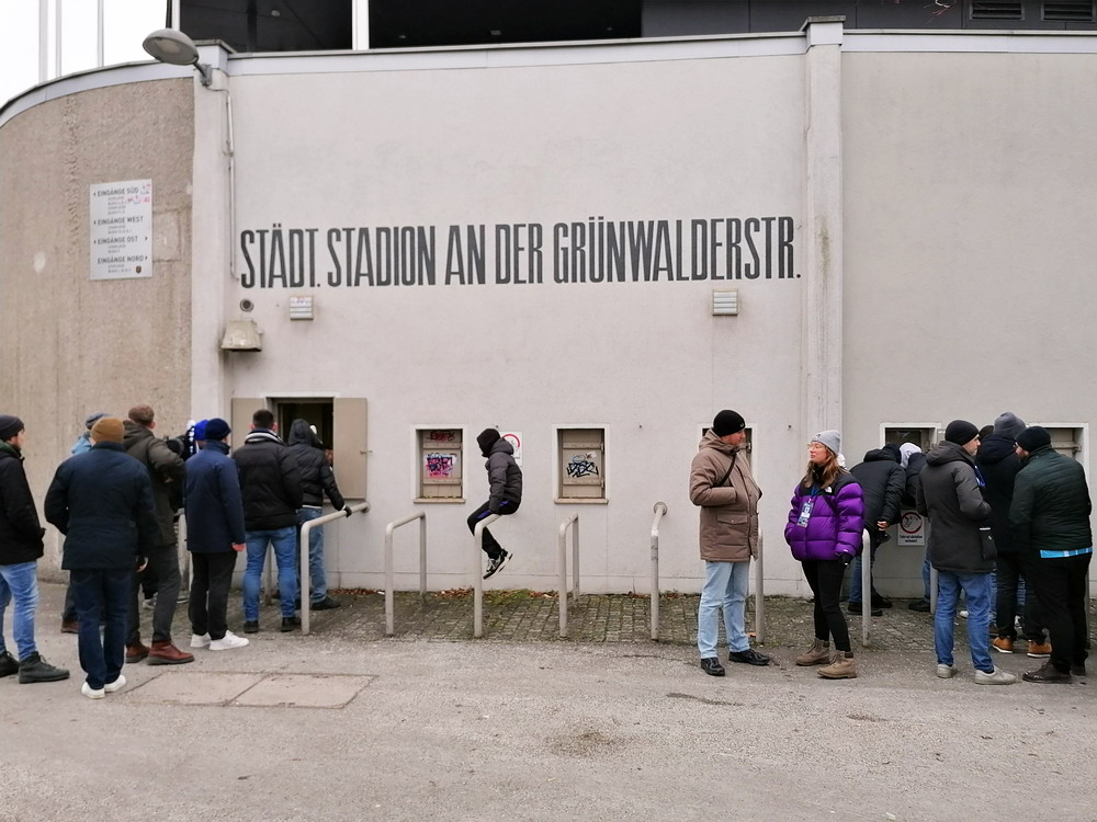Zu fünft entschieden wir uns, mit der Bahn nach München zu reisen. Eigentlich mag ich das Auswärtsspiel in München gar nicht mehr so und hätte wohl verzichtet, wenn wir nicht die Gruppenfahrt hinbekommen hätten. Das Stadion, so kultig wie es ist, und die flache ungedeckte Gästekurve sind einfach nicht attraktiv. Die Stimmung ist auch immer Schrott, eben wegen den baulichen Gegebenheiten, aber auch weil dieser Kick beim RWE-Anhang völlig überschätzt ist und sich viele ‚ungeübte‘ Auswärtsfahrer im Away-Sektor einfinden. Dass es dazu noch in der kalten Jahreszeit nach ‚Minga‘ ging, hätte eigentlich eine Absage an die Tour zur Folge haben müssen. Die Abreise wurde dann auch noch komplizierter als gewünscht. Da aktuell die Bahnstrecke zwischen Essen und Duisburg aufgrund eines Brücken-Neubaus gesperrt ist, sollte die Fahrt in der unaussprechlichen Stadt nördlich von Essen beginnen. Zum Glück fiel Teilnehmern der Reisegruppe auf, dass dieser Halt vom täglich verkehrenden ICE 525 in den vergangenen Tagen nicht angefahren wurde. Eigentlich völlig nachvollziehbar, was will man auch in Arbeitslosenkirchen, da hatte ich ausnahmsweise mal volles Verständnis für die Bahn. Wir entschieden wir uns dann, erst in Düsseldorf zuzusteigen. Die Hinfahrt verlief bis auf einen im Weg stehenden, liegengebliebenen Güterzug reibungslos, so dass wir mit erträglichen 20 Minuten Verspätung eintrafen. Nach einer Mittagsmahlzeit in einem bahnhofsnahen Brauhaus fuhren wir mit der U-Bahn rauf auf Giesings Höhen. Die Löwen gingen stark ersatzgeschwächt in die Partie und hatten elf Ausfälle zu beklagen. Der glorreiche RWE musste dagegen ‚nur‘ die Sechser-Achse Gjasula/Moustier ersetzen. Die 15.000 im ausverkauften Sechz’ger Stadion, darunter 1.500 Rot-Weisse, bekamen dann bei Temperaturen um den Gefrierpunkt wenig Erwärmendes zu sehen.