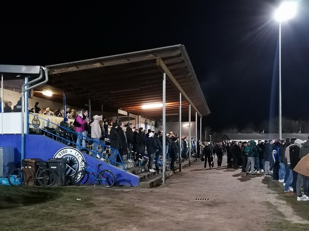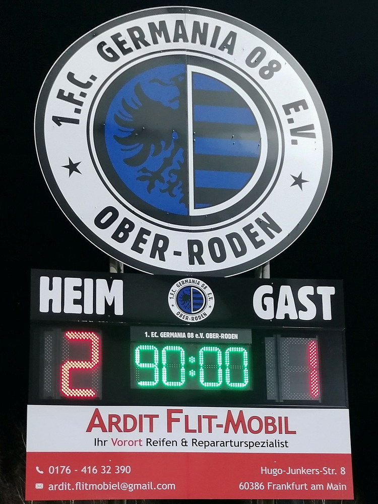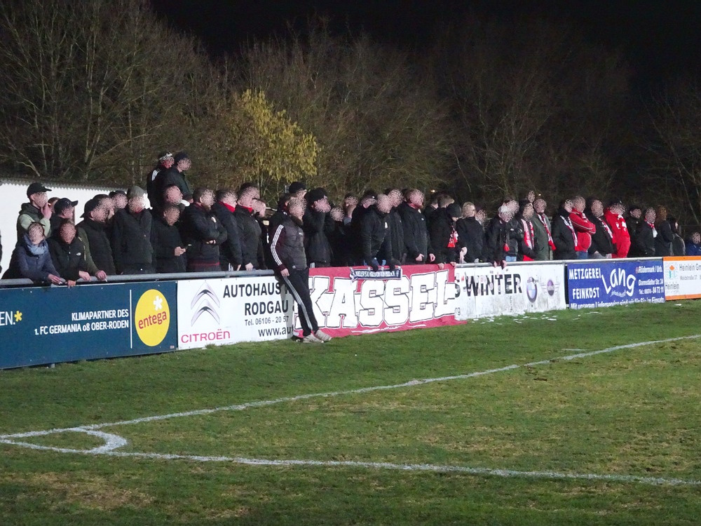 Im Viertelfinale des hessischen Landespokals empfing Verbandsligist Germania Ober-Roden den ehemaligen Zweitligisten Hessen Kassel. Die Gäste wurden von etwa 100-120 Anhängern begleitet, davon waren etwa die Hälfte Angehörige der aktiven Szene. Ebenerdig hinter dem Stankett unter freiem Himmel ist es schwierig einen vernünftigen Support aufzubauen, daher gab es einige ‚leere‘ Phasen. Für die Gastgeber hatten sich ungefähr dieselbe Anzahl an Köpfen für die sporadische Unterstützung zusammengefunden, der Altersdurchschnitt ließ darauf schließen, dass es sich eher um Spieler von Jugend-Teams handelte. Diese waren aber rotzig genug, den KSV-Anhängern, die von zwei Leuten der befreundeten Kieler Störche begleitet wurden, einige Schlachtrufe unter der Gürtellinie zuzurufen, worauf diese aber nicht eingingen. Die favorisierten Nordhessen taten sich schwer bei den Südhessen. Zwar bestimmten sie das Spiel im ersten Durchgang und erzielten kurz vor dem Seitenwechsel auch den nicht unverdienten Führungstreffer, weitere Torchancen waren aber Mangelware, da die Gastgeber defensiv konzentriert arbeiteten. Nach dem Seitenwechsel war es ein anderes Spiel. Die Germania war mutiger und glich nach einem Konter zunächst kurz nach Wiederanpfiff aus, um wenige Minuten danach sogar in Führung zu gehen. Der KSV hatte fortan Mühe die Kontrolle zu behalten und biss sich an tapfer kämpfenden Germaniern die Zähne aus. In der Schlussphase wurde es hektisch. Die hinter dem Germania-Tor stehenden Gäste-Supporter waren mit dem Verhalten des Torwarts nicht einverstanden und standen plötzlich mit mehreren Leuten auf dem Platz, aber die Lage beruhigte sich schnell. Der Regionalligisten verkrampfte zusehends und kurz darauf war die Pokal-Überraschung perfekt.