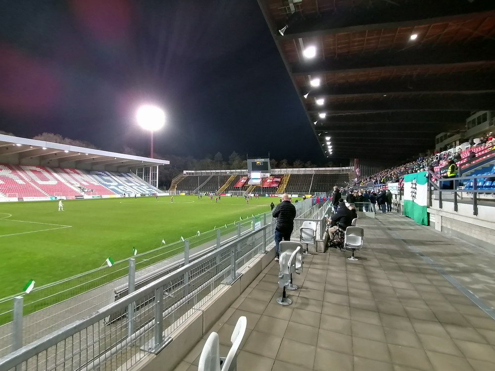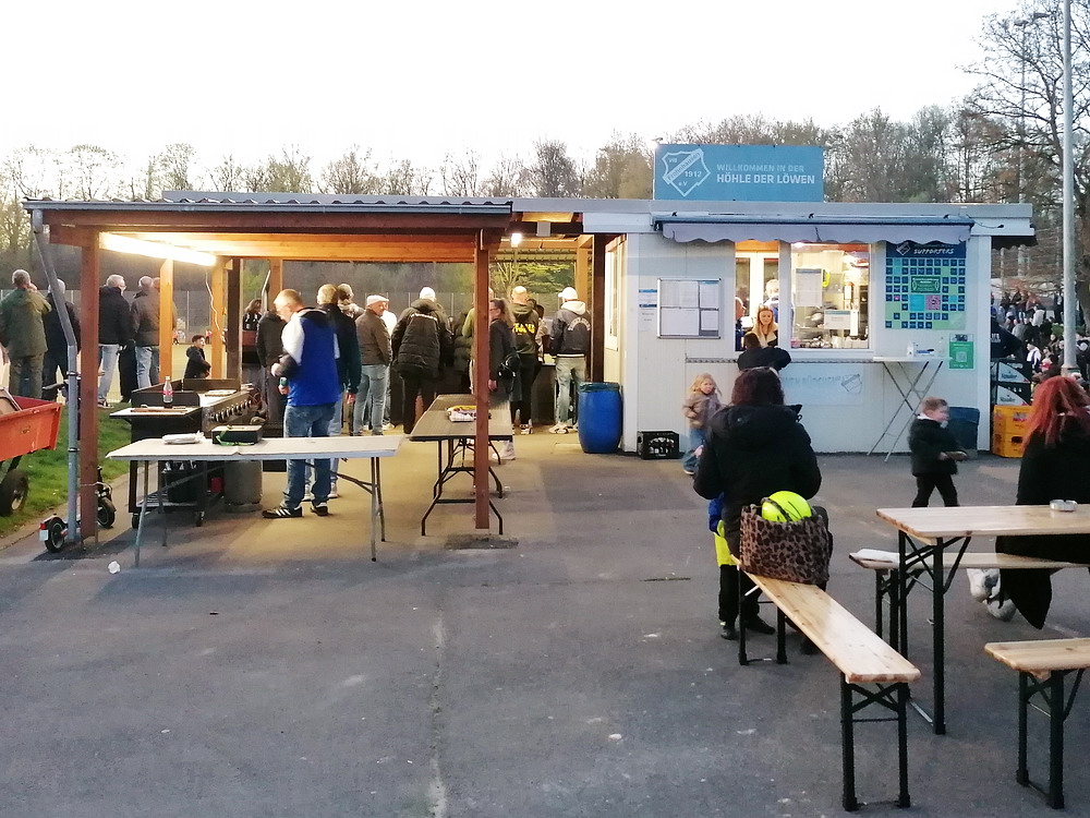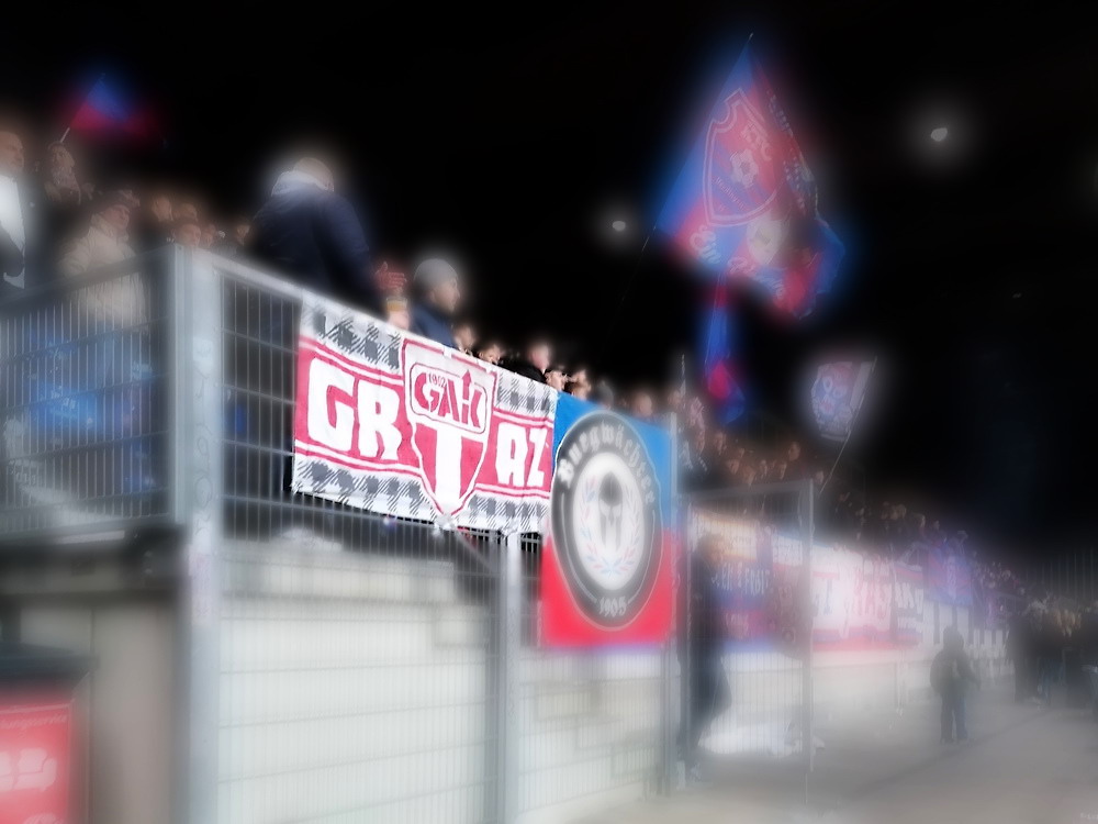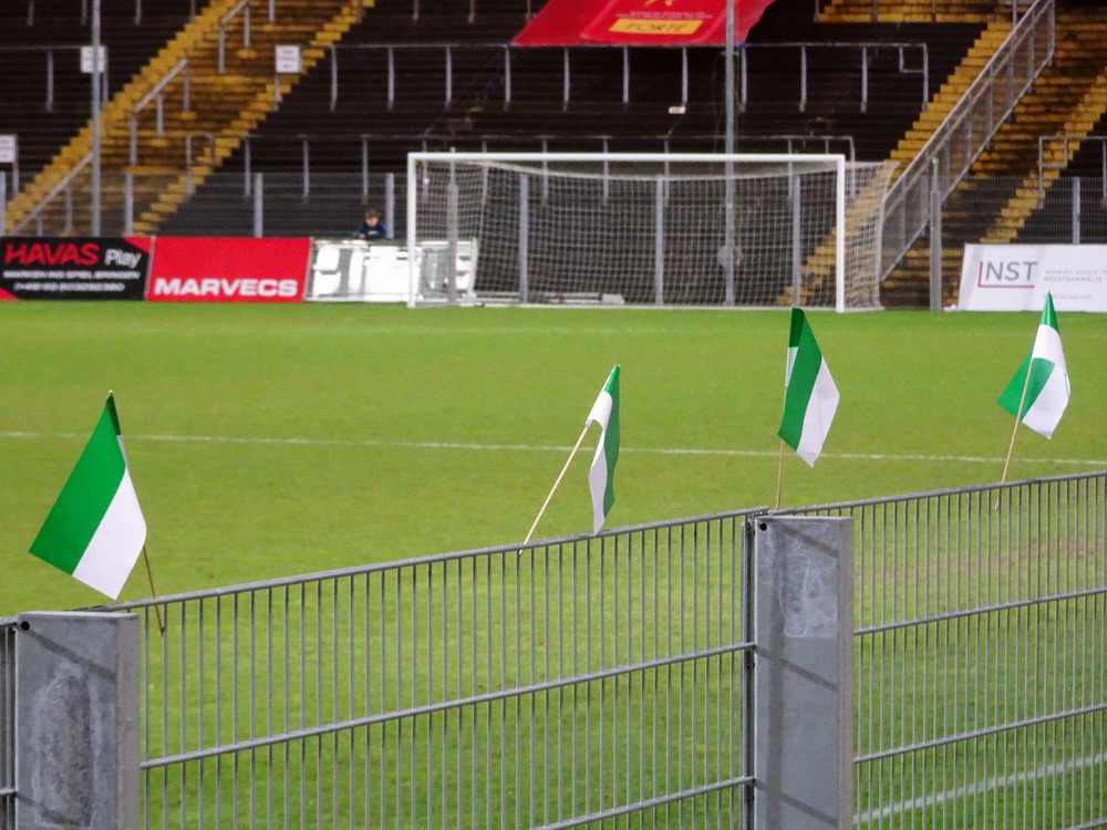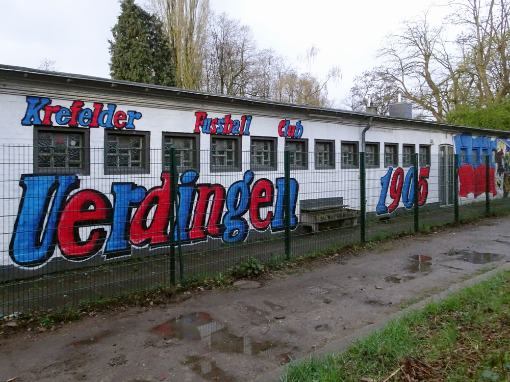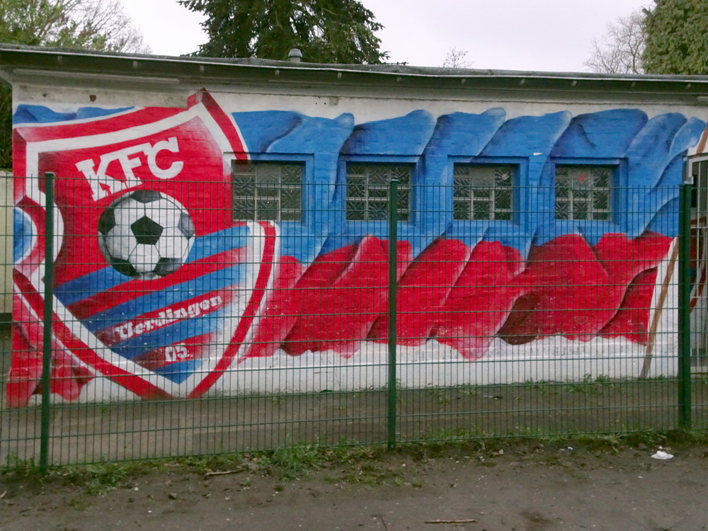 Zum zweiten Mal innerhalb weniger Tage kam ich also in den ‚Genuss‘ eines KFC-Spiels. So wird man Allesfahrer! Aus Essen-Frintrop waren ob des besonderen Gegners und Spielortes einige Leute mehr angereist, als sich sonst zu den Auswärtsspielen aufraffen. Die üblichen Verdächtigen stimmten gelegentlich etwas beseelt vom Gerstensaft auch mal einen Gesang an. Gegen den Uerdinger Mob kamen sie natürlich nicht an, denn dieser spulte sein Programm unterstützt von ein paar Freunden vom Grazer AK souverän ab, für die Oberliga ist das schon absolut überdurchschnittlich. So richtig hatte sich noch keiner sortiert und schon lagen die Hausherren in Führung. Da konnte man schon Schlimmeres befürchten, aber dazu kam es nicht. Zwar machte der KFC gegen den Underdog das Spiel und ließ diesen auch gar nicht zur Entfaltung kommen, richtig gefährlich wurden sie in der Box aber selten. Und wenn die Gastgeber zum Abschluss kamen, stand Adler-Schnapper Nils Reiners im Weg, der einen absoluten Sahnetag erwischt hatte. So blieben die Gäste im Spiel ohne wirklich im Spiel zu sein. Zu spät legten die Raubvögel dann auch den völlig unnötigen Respekt ab und gingen in den letzten zehn Minuten auf Beutejagd. Leider erfolglos, auch wenn die Uerdinger Deckung in einigen Situationen schwer ins Schwimmen geriet. Unter dem Strich steht aber ein völlig verdienter Heimsieg. Die fehlenden Punkte für den Klassenerhalt müssen die Adler gegen andere Gegner sammeln.