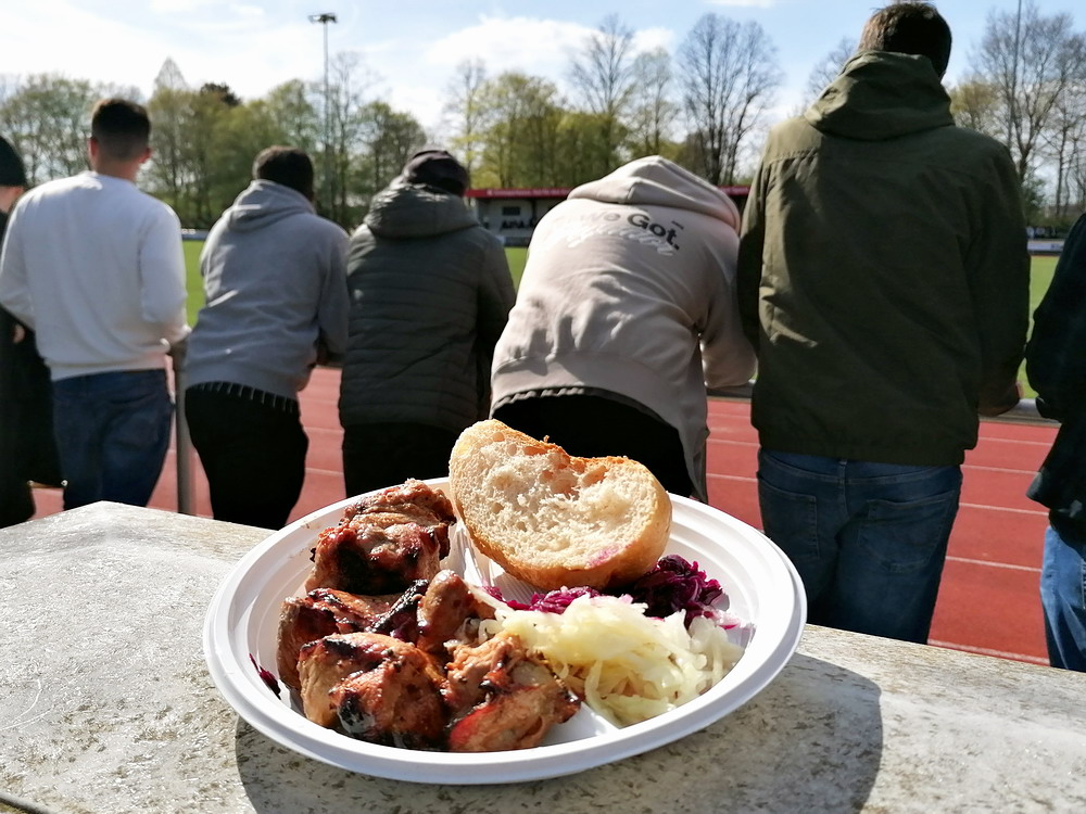 Der FC Dynamo Erkelenz heißt nicht zufällig so, denn es ist ein ukrainisch geprägter Verein. Besonders positiv wirkt sich das auf das Catering aus, angeboten wurden fette Schaschlik-Spieße vom Holzkohlegrill – lecker! Nicht so ein Leckerbissen war der sportliche Part der Veranstaltung, obwohl die Voraussetzungen gut waren. Die Gastgeber wollen in die Bezirksliga und rauschen gerade im Eiltempo durch die Kreisliga A. 20 Siege aus 20 Spielen sprechen eine klare Sprache. Gegen den Landesligist aus dem Schatten des NATO-Stützpunktes Geilenkirchen war dann auch kein großer Klassenunterschied erkennbar, leider aber nur auf bescheidenem Niveau. 90 Minuten lang gab es keine hochkarätige Torchance zu bestaunen. Drei Minuten Nachspielzeit zeigte der Referee an und in dieser nach einem Foulspiel im Strafraum zugunsten von Dynamo auf den Punkt. Die Gastgeber nutzten die Chance, zum Sieg reichte das aber noch nicht, da die Germania im Gegenzug noch ausglich. Fußball ist manchmal schon bescheuert. Dynamo gingen die Kräfte aber nicht aus und der zweite Treffer in der zweiten Hälfte der Verlängerung bedeutete dann doch noch den nicht unverdienten Final-Einzug.